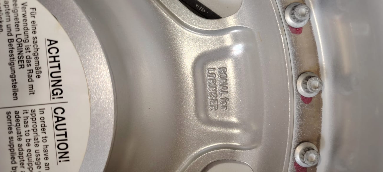All four wheels measures 8" wide with an offset of +44. The wheels were manufactured by Ronal for Lorinser which can be seen on the back of each wheel. Close up photos of the back of the wheels are viewable in the gallery and the reverse bolted design can be seen as well.