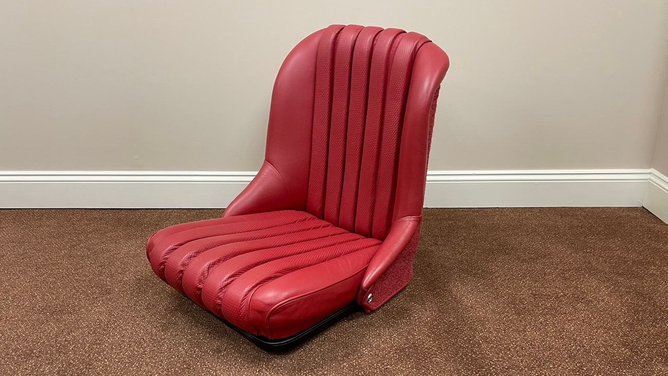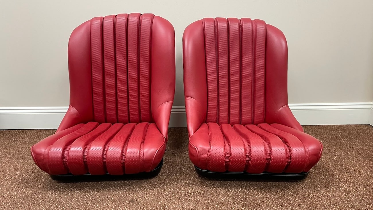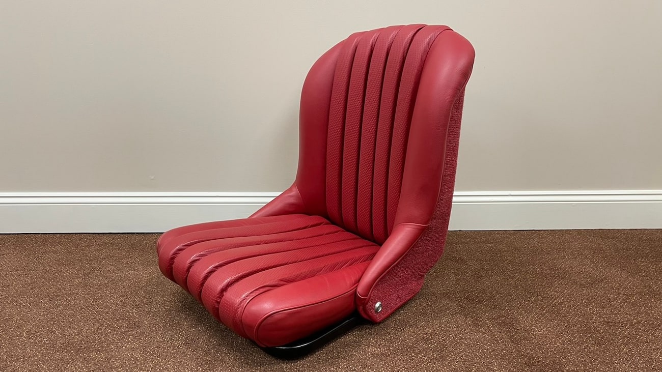 This set of 300SL Roadster seats were restored by Mercedes-Benz Classic Center and are now being offered out of Lodi, New Jersey by the current owner. Covered in Red Leather, these 300SL Roadster seats were removed from a 300SL Roadster that has since undergone a conversion from a stock, road going 300SL to a race spec tribute of Paul O’Shea’s 1957 Mercedes-Benz 300SLS. This is a complete front set of seats including new leather skins, painted seat springs, frame, reupholstered cloth backing, new ventilation rivets, and new hardware.