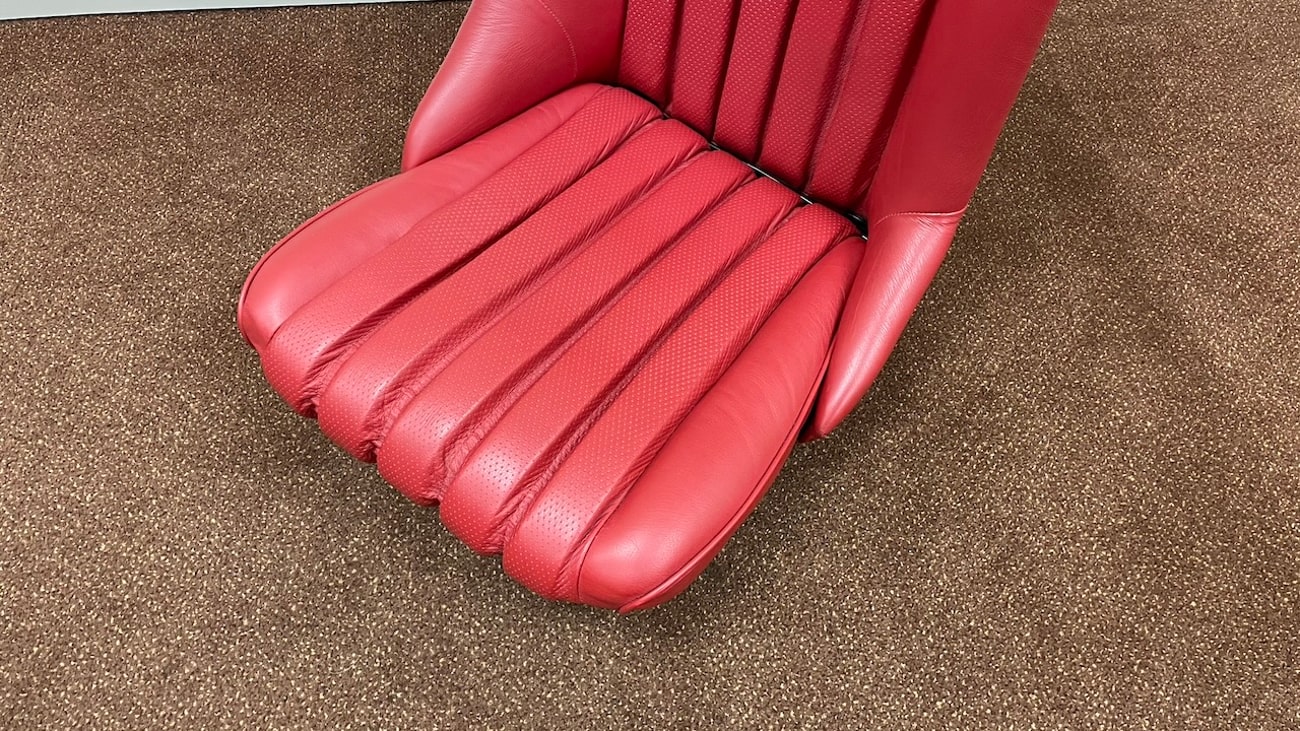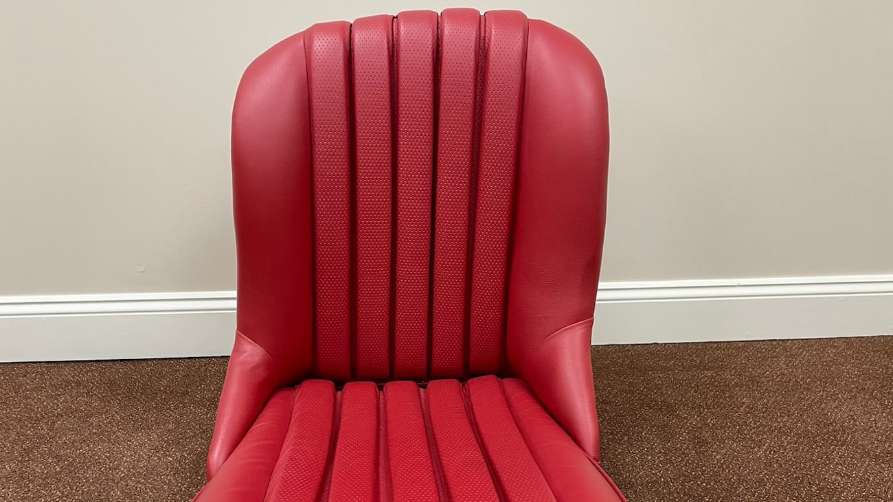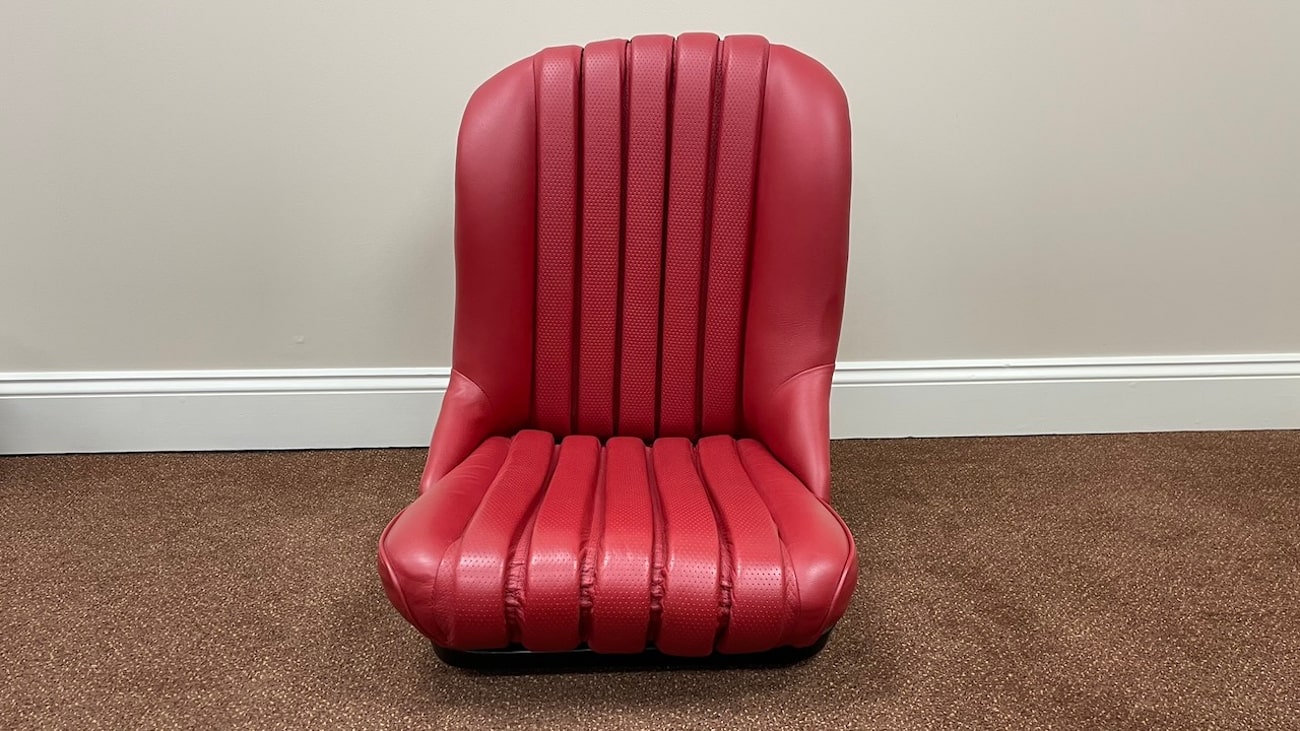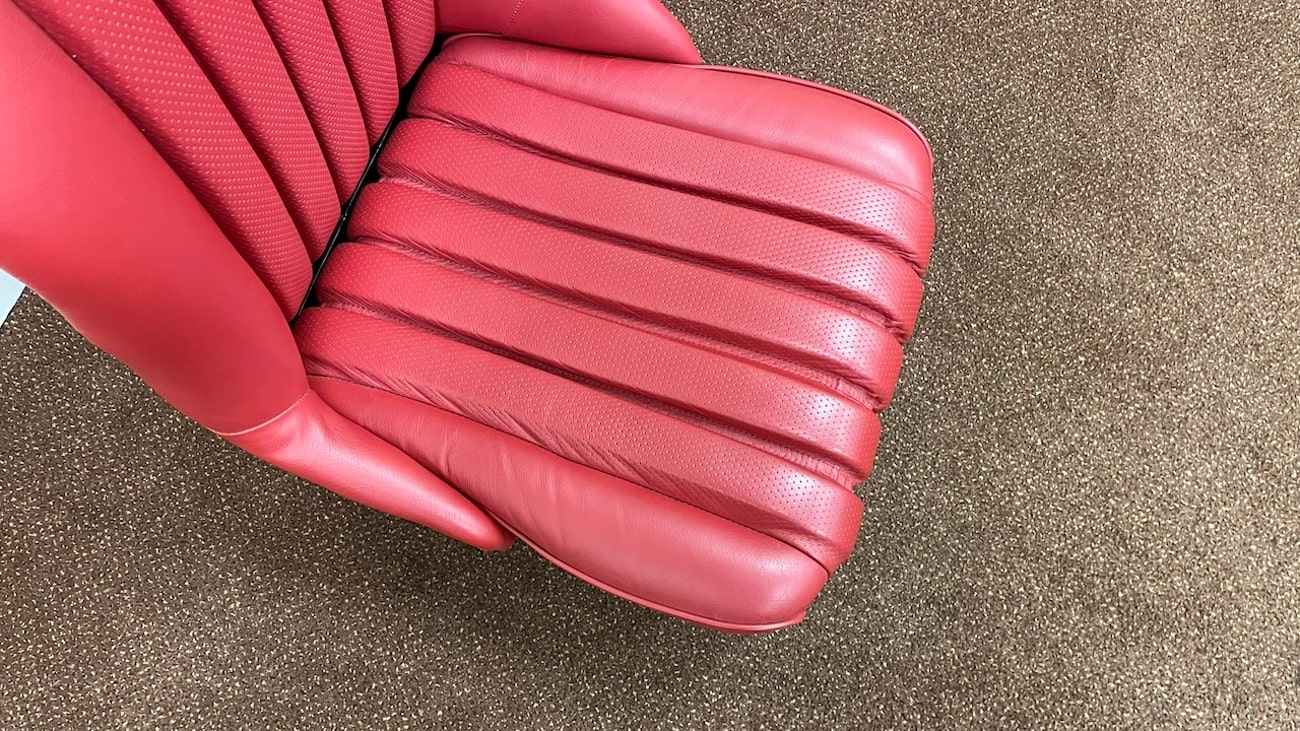 The Red Leather shows as perforated in the center for ventilation and fine grain on the bolsters. Mercedes-Benz Classic Center rebuilt these seats that were originally for a road going 300SL Roadster before being built as a Paul O’Shea 300SLS tribute car which now has sport bucket seats.