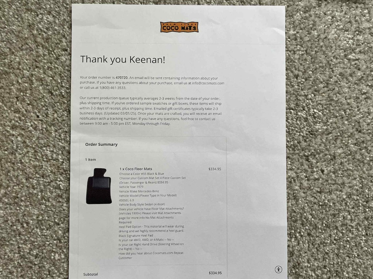 This W116 450SEL 6.9 now shows just under 103k miles and is offered on behalf of the current owner with recent suspension services, new Michelin tires, Coco-Mats, spare parts, recent service records, and a clean Georgia title.