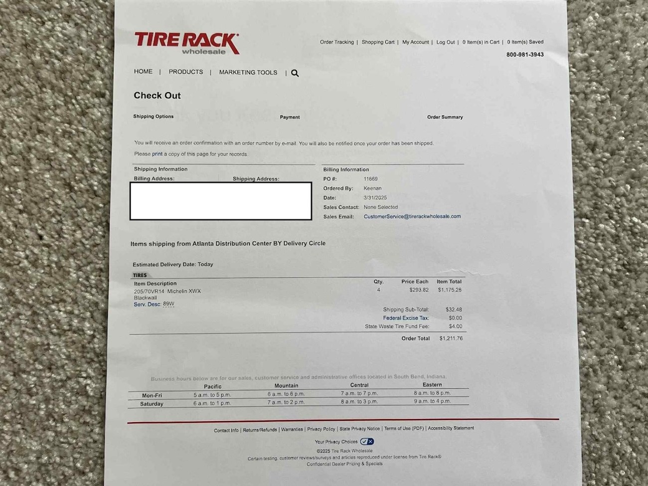 14” Fuchs manufactured light-alloy Bundt wheels are mounted with 205/70 Michelin XWX tires that show 2024 date codes which were mounted in the summer of 2025 and have a few hundred miles logged. The car was equipped at the factory with a hydropneumatic self-leveling suspension in addition to four-wheel disc brakes with ventilated front rotors. Four rebuilt struts were installed by a 6.9 specialty shop. Pictures from the seller show new brake calipers for the front and rear have been installed at some point recently and brake pads and rotors show virtually no wear. Rear rotors were installed under the current ownership along with front brake lines, driver side emergency brake cable, and an ATE DOT4 fluid flush.