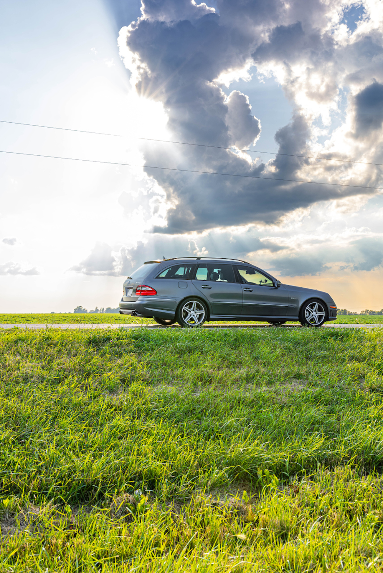 The road to Chicago through Indiana was like driving a Tomy Turnin’ Turbo toy from the ‘80s – endlessly straight roads with not a lot of steering. Fast cars of the Midwest in the ‘80s were Camaros and Corvettes. Fast cars of the Midwest today are still Camaros and Corvettes. We imagined us in the E63 being the Westmont crew breaking in 6.0 engines south of the city, terrorizing the successful farmers in their new C4s that barely broke the 150 MPH mark with hot rodded family sedans. Breaking off the interstate and rushing towards the cornfields, we pressed towards the city on unmarked two lane country roads. Corn standing 10 feet tall on either side magnified the sensation of speed like running down a hotel hallway as a kid. Hot summer clouds formed like mesas in the sky. Sentinel marble white windmills rooted themselves into the farmland and metronomically churned the humid air. We surprised a few muscle cars who mistook us as a 20 year old E-Class and couldn’t possibly understand the concept of our electronically limited 186-mph station wagon. The hand built M156 engine has incredibly long legs and reigns king in regions like this. I’ve always said these engines pull like a LS7 that went to private school. Why this engine exists in a station wagon is why I love the brand and is the true production successor to Jonathan Hodgman’s 1 of 1 AMG Hammer wagon, which was on a truck, racing us towards the Windy City.
