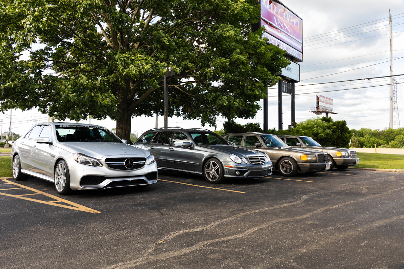 Atlanta to Chicago is an eleven hour drive and nearly 800 miles. It’s a mix of Appalachian foot hills that slowly blends into the vast flatness of the Midwest where the roads are straight and the sky is big. We loaded up my girlfriend’s 2007 Mercedes-Benz E63 AMG wagon with supplies for the weekend and bolted to Nashville as the first stop. It was 100 degrees even as the sun settled behind the treeline. One of the hottest recorded weeks for late June. A phalanx of hyperion cotton candy clouds stood guard behind the stiletto pack skyline of Nashville as we sat on the tailgate of the S211 and ate Jenni’s ice cream on the East End and watched the molten disc of sun squelch its acidic heat beyond the city and hills to the west. While we didn’t own a pre-merger AMG, the S211 AMG was accepted to the 233 West event with open arms. Like pre-merger cars, these E63 wagons, all 153 produced between ‘07 and ‘09, had to be custom ordered by paying customers through dealerships. It’s one of the few post-merger AMGs that replicate the rarity and exclusivity of the per-merger cars. There were not a lot of people who wanted or had the means to buy a 507 horsepower station wagon, especially as the Recession loomed. It was a grotesque display of excess and participated in a dyadic relationship with pre-merger AMGs.