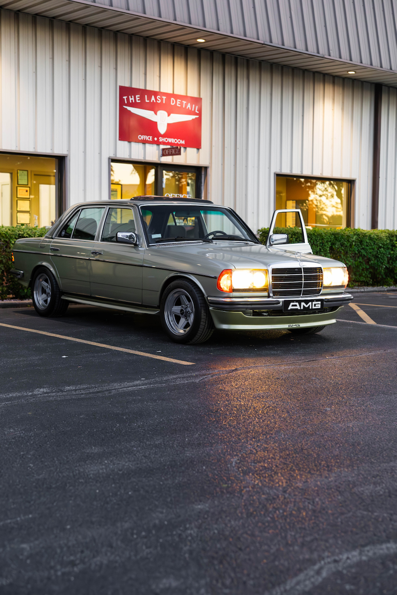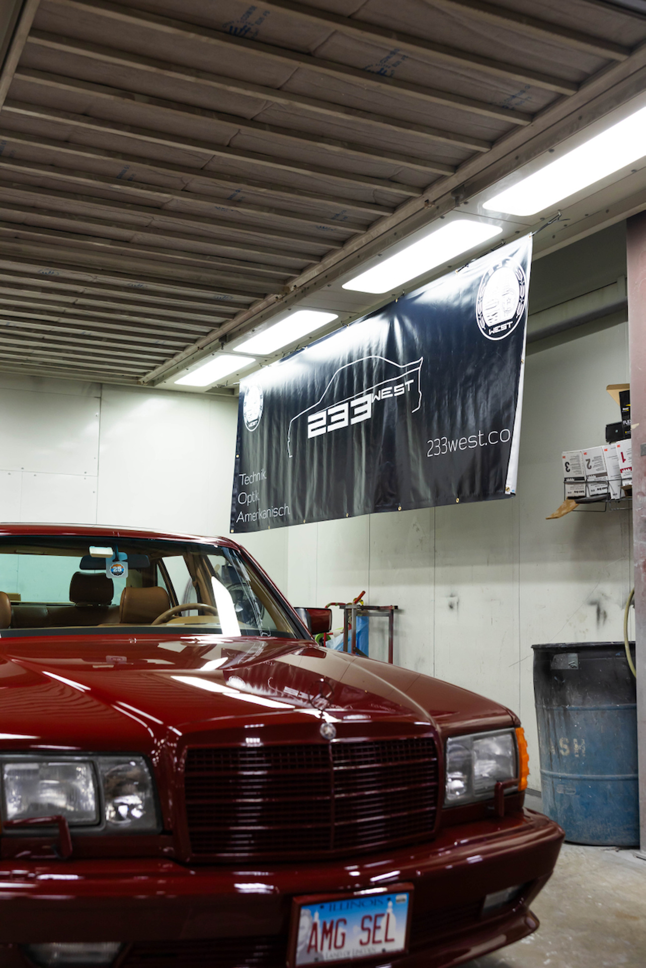 The Final Detail is a huge facility. Packards and Rolls-Royce were tucked away in corners, pre-merger AMGs were stuffed in the hallways and rolled onto lifts, and I spotted a widebody C126 in a paintbooth getting a new outfit of 737 sprayed onto its box metal fenders. Richard Buxbaum’s W126 sat perpendicular to Blakley Leonard’s Japanese 560SEC AMG Widebody and his Thistle Green over Olive Green cloth ‘84 280E I fought for on The MB Market in a bidding war – but lost. Jeff Wong’s W210 E60 AMG was another spectacular car complete with a 6.0-liter M119 engine and no sunroof. It immediately turned my brain into soup as he graciously showed me around it. A line of pre-merge AMGs were staged up like traffic inside the complex, most complete with Recaros, M38 or Italvolante steering wheels, genuine body kits, HWA wheels, and hot engines. I didn’t know where to start.
