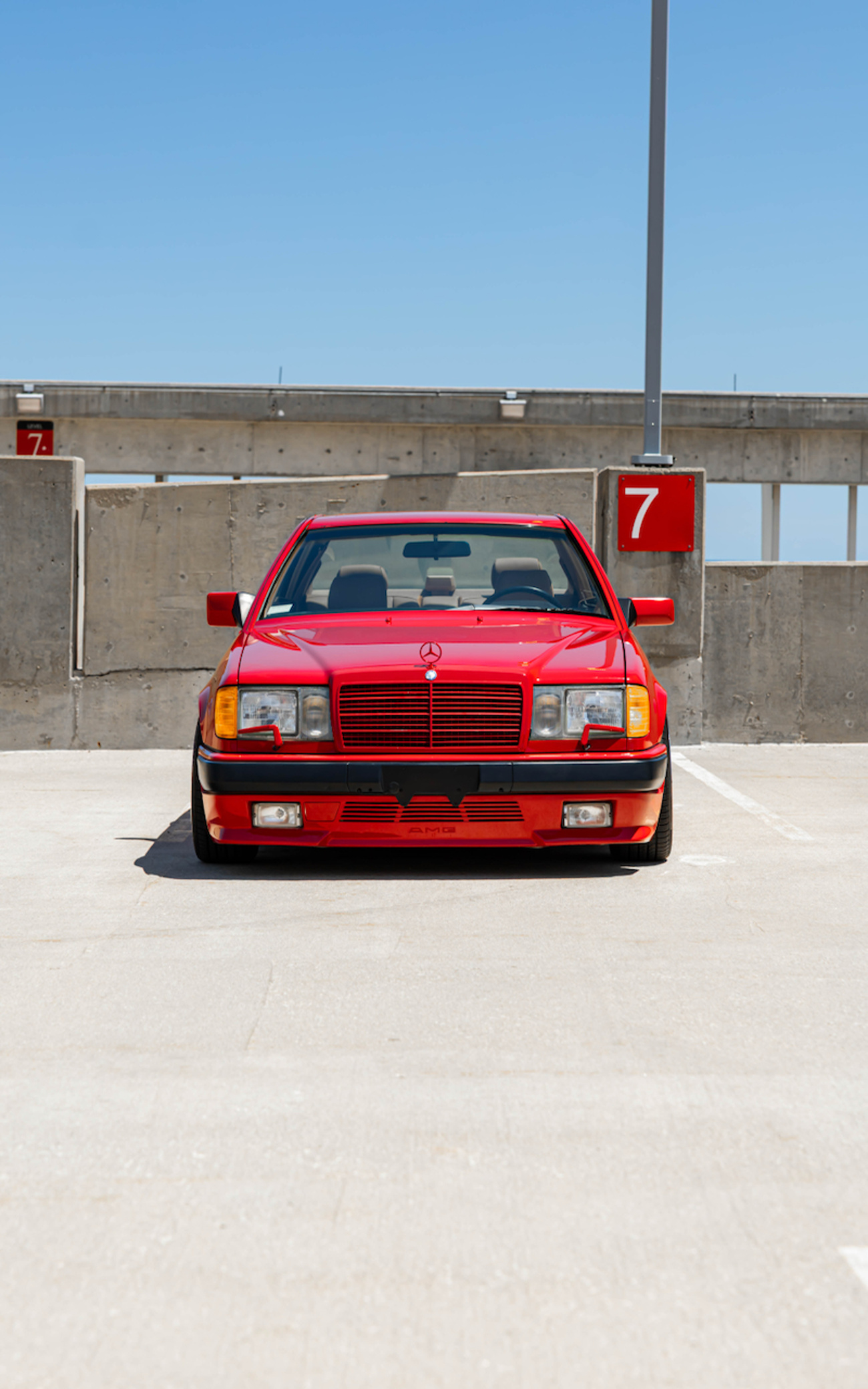 We found ourselves at the roof top of a parking deck overlooking a university and Lake Michigan as one of the largest congregations of pre-merger AMGs began to roll in. We corralled around the coffee and donuts to shake off last night with a shot of sugar and caffeine to the brian. Looking at the cars on the deck, we knew today would be a day to not forget. Some of the best photographers in the business were there taking their shots and shaking their heads at the absurdity of it all. A few hours later, the Signal Red 6.6 Hammer Coupe rolled off the truck paired with the Hammer wagon and the Hammer coupe from Blue Ridge MB. They were unloading in the middle of the street for all to see. It’s amazing to watch people not in the know drive past the Hammers and not give them a second look. Guys in new 911s and BMW M cars didn’t pay us any attention, but a younger enthusiast in a beat up Z3 lost his gourd as he drove past. We’re all in the know and understand the absurdity of the scene, but to most they looked like gaudy ‘80s Benzes. That’s what is so great about these – they are incredibly esoteric and from the outside just look like ‘80s tuner Mercedes that most would assume are worth like $5,000. A true wolf in sheep’s clothing and is oh-so rewarding when they garner the attention they deserve when one out of a thousand people understands what they’re looking at.