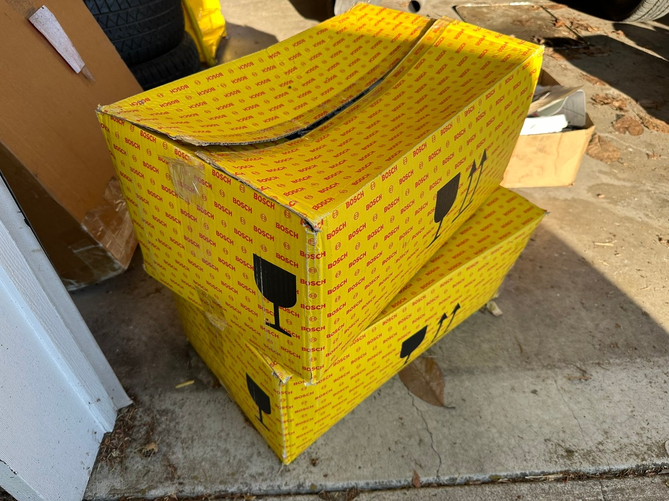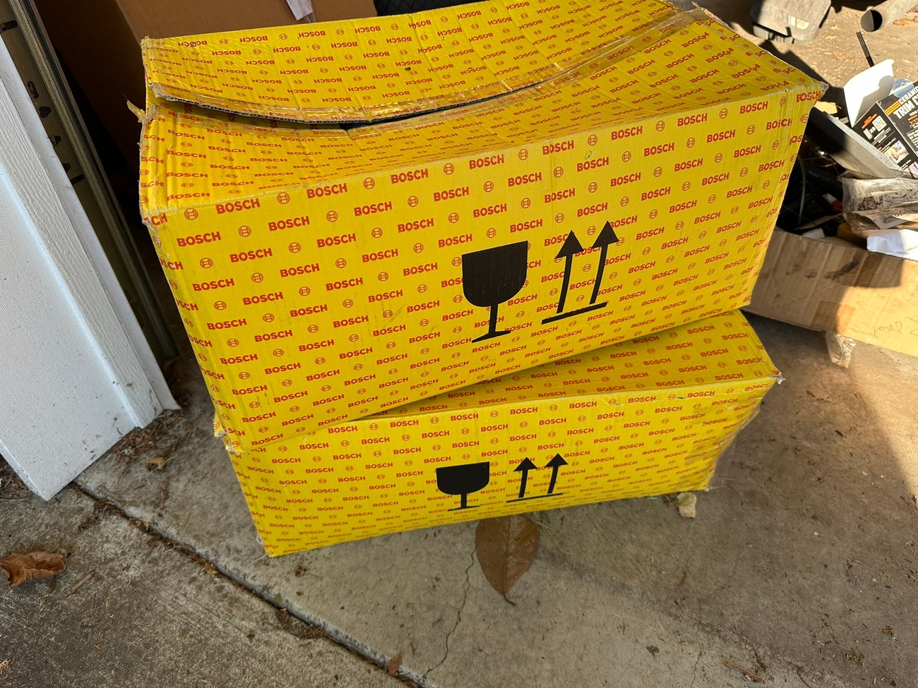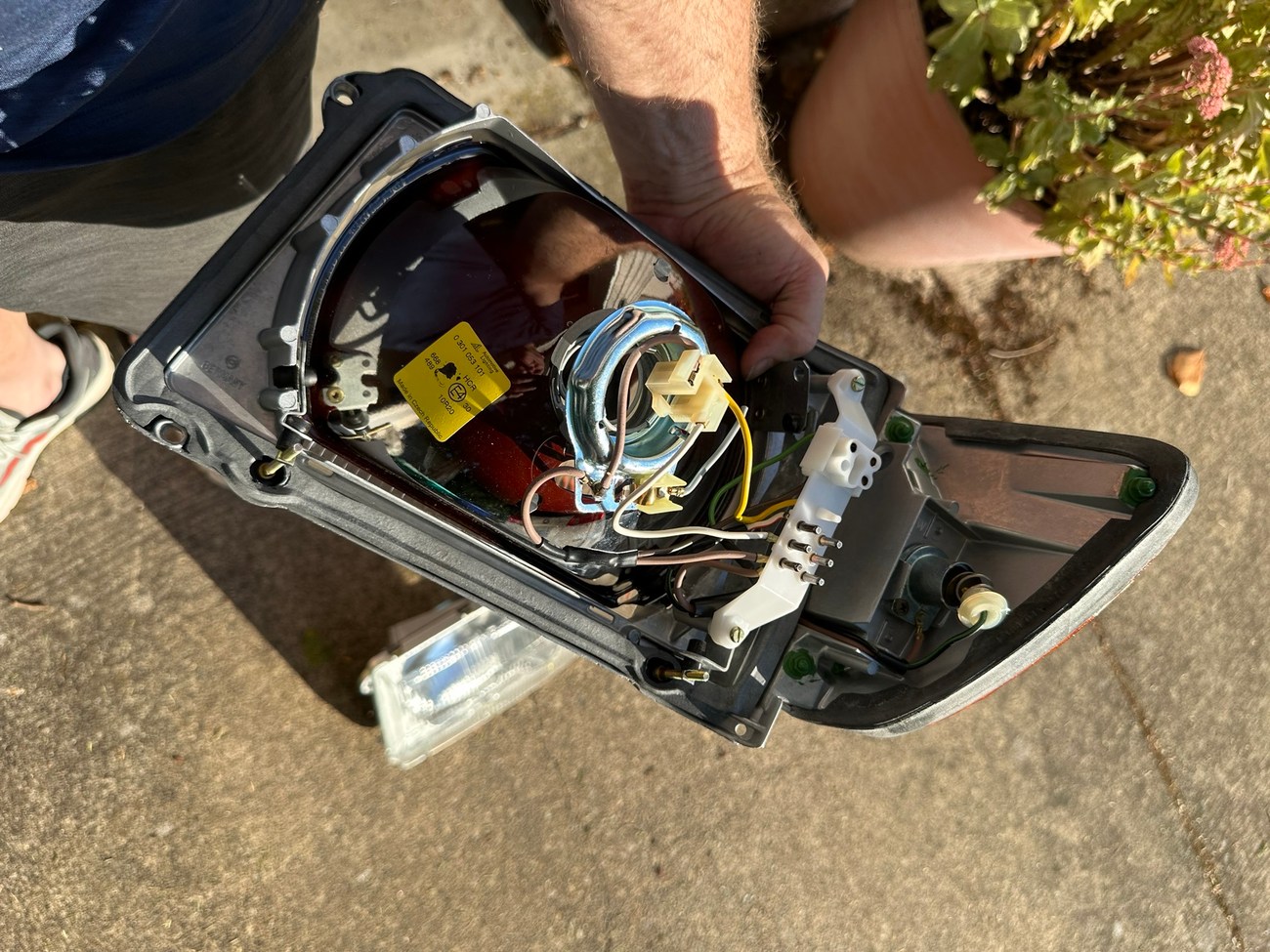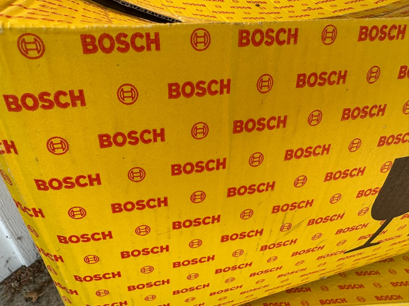The original Bosch boxes are included in the sale. The smooth glass lenses feature Bosch logos and the plastic housing is free from any cracks. Factory part numbers for the headlights are present reading 1305620-113 and 1305620-114. The OEM yellow sticker on the back of each headlight housing is present. The European corner lights feature a dark amber color and show Germany stamped on each lens.