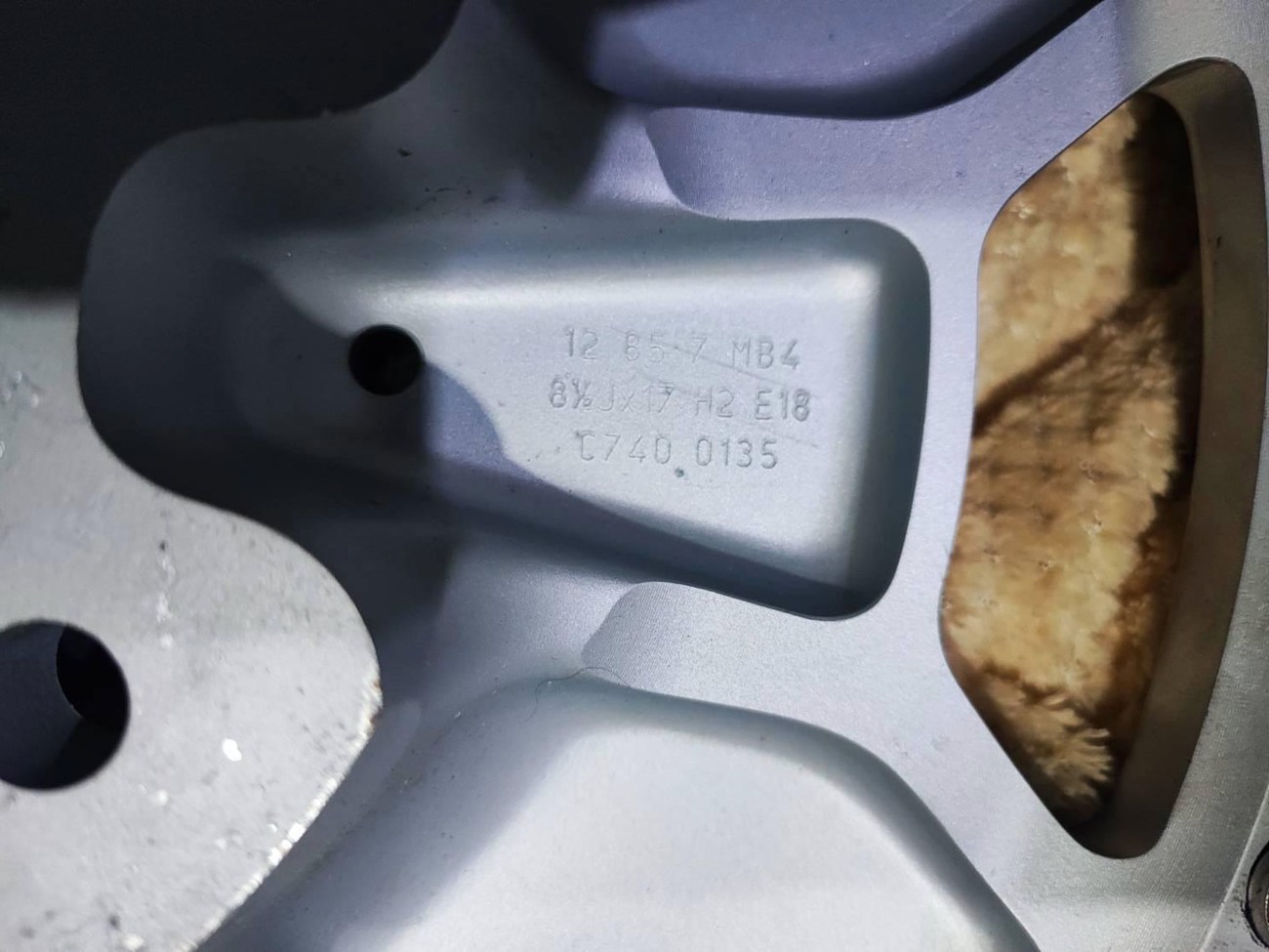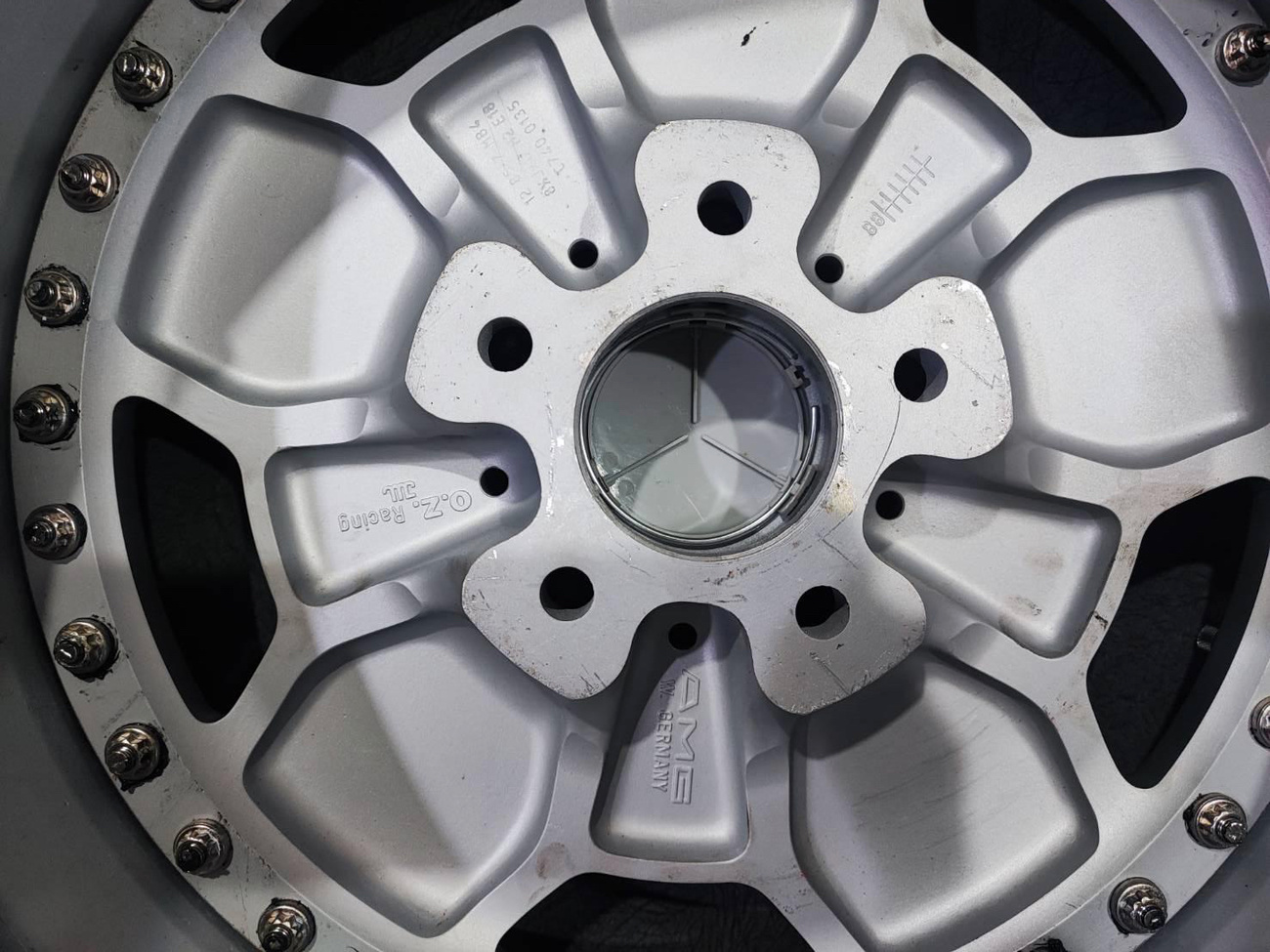 The front wheels now measure 8.5" wide with an offset of +25 and the rear one inch wider at 9.5" with an offset of +25. The wheels show AMG Germany as the place of manufacture. Close up photos of the back of the wheels are viewable in the gallery with their original OZ Racing stamps.