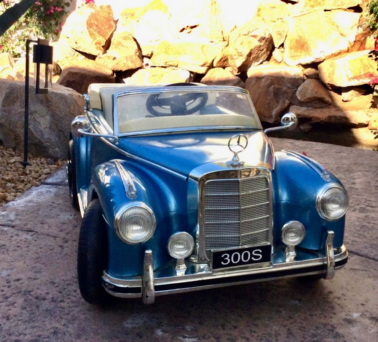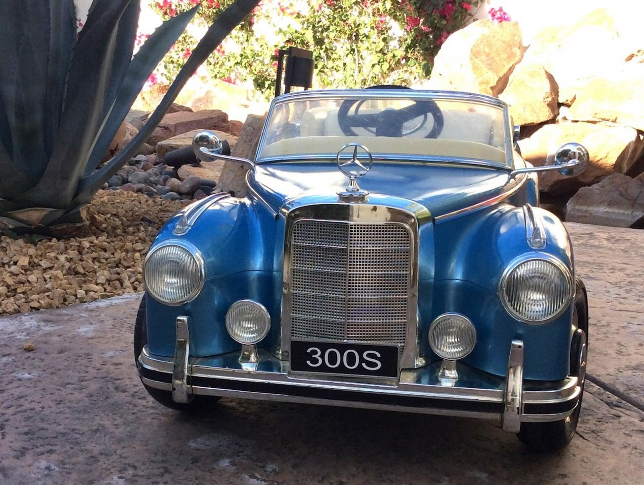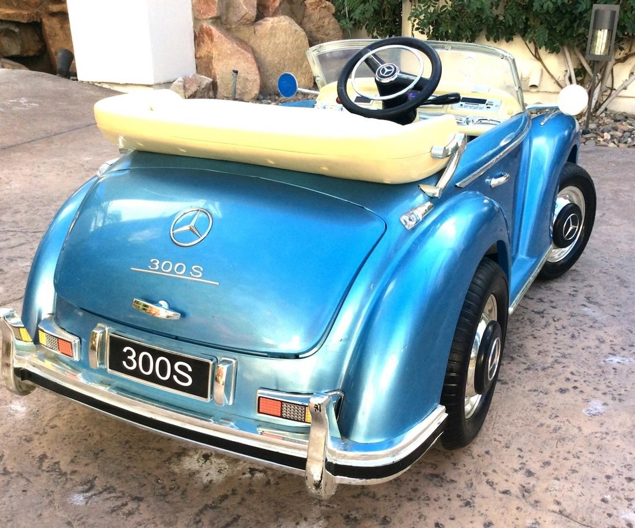 This Mercedes-Benz 300S Toy Car was licensed by Mercedes-Benz and manufactured in the ealy 2020's. These cars were originally sold in various Mercedes-Benz dealers along with authorized retailers and remain collectible as they’re out of production. This specific example is finished in Light Blue paint over a padded Ivory seat and powered by a 12v battery driving the rear wheels. Features include working lights, a digital voltage readouot, a USB port and AUX port, EVA tiresd, and a lap belt. This pedal car is offered by the current owner in Indian Wells, CA.