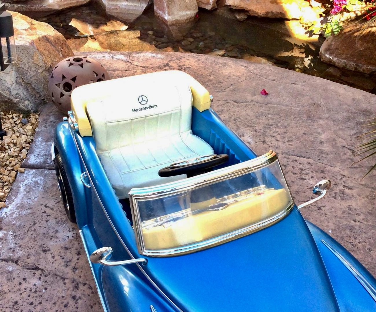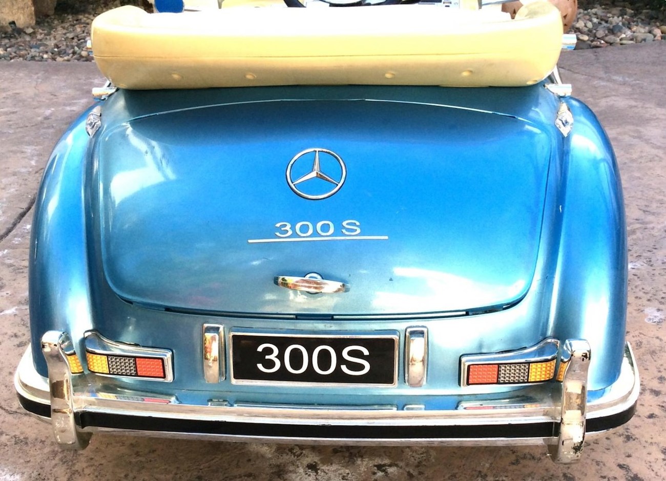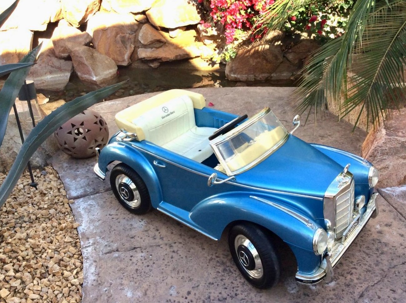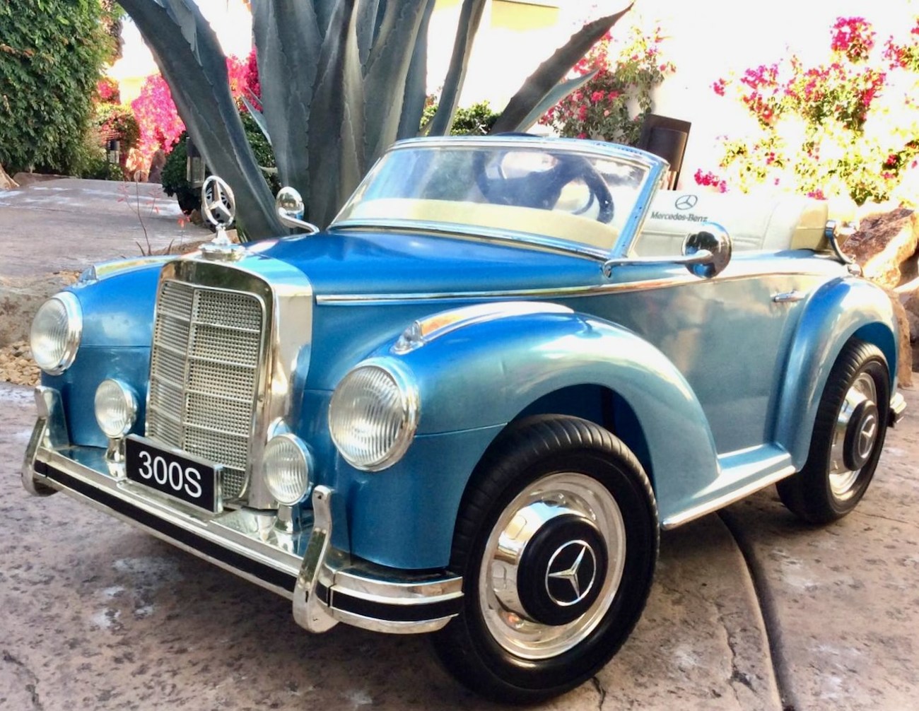 This Mercedes-Benz 300S Toy Car was licensed by Mercedes-Benz and manufactured in the ealy 2020's. These cars were originally sold in various Mercedes-Benz dealers along with authorized retailers and remain collectible as they’re out of production. This specific example is finished in Light Blue paint over a padded Ivory seat and powered by a 12v battery driving the rear wheels. Features include working lights, a digital voltage readouot, a USB port and AUX port, EVA tiresd, and a lap belt. This pedal car is offered by the current owner in Indian Wells, CA.