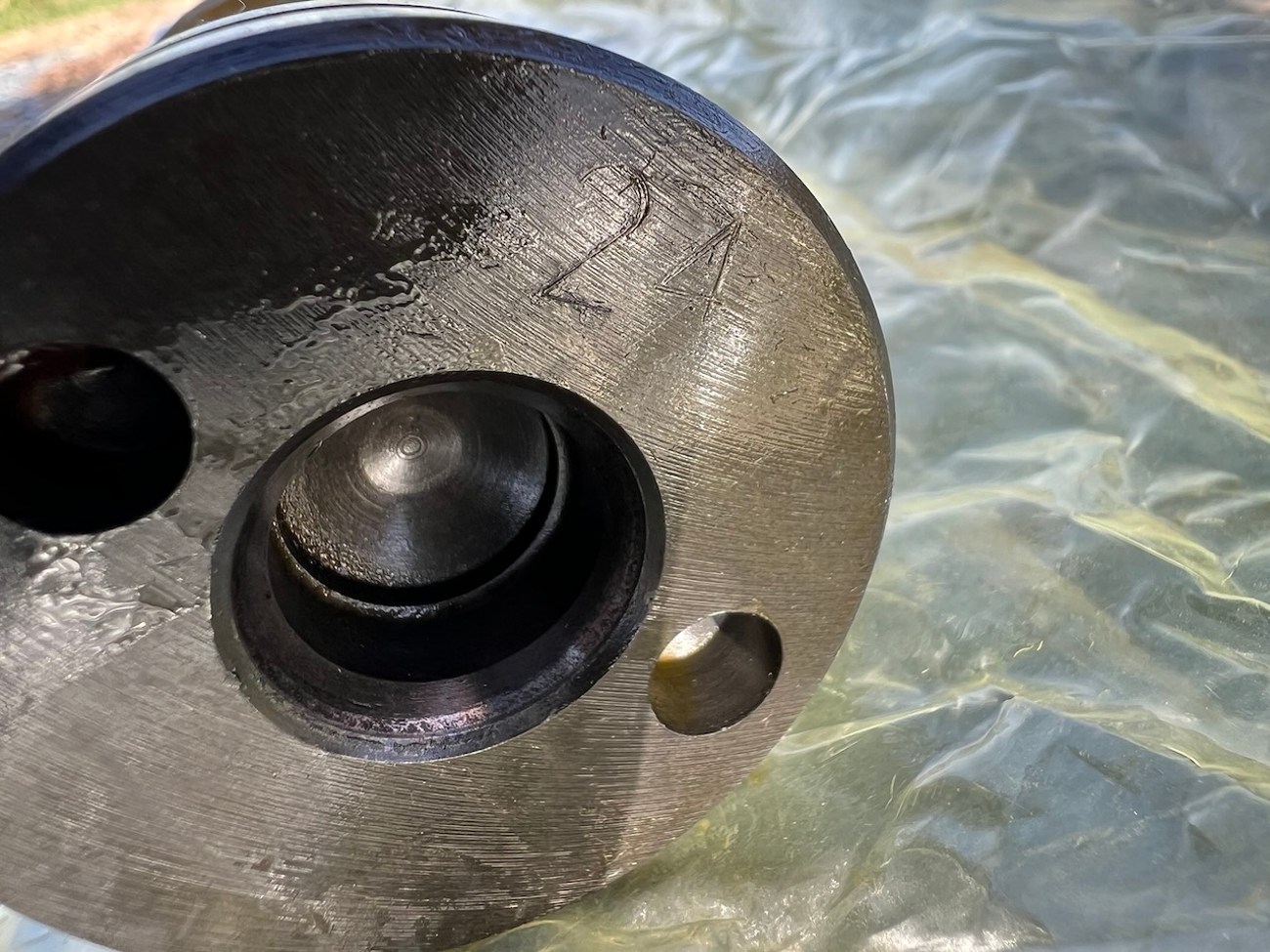 These camshafts are identified by looking for a stamped 16 or 17 on the barrel – 16 being left and 17 being right. This example shows a L and 16 stamped onto the camshaft. There were three different camshafts for non-AMG 5.5-liter M117 cars: ECE (16/17), RUF (24/25), and KAT (26/27). High output engines (ECE/RUF) both had higher compression, different pistons, auxiliary oil cooler, free flowing exhausts, and similar fuel distributors to the Euro 5.0-liter engines.
