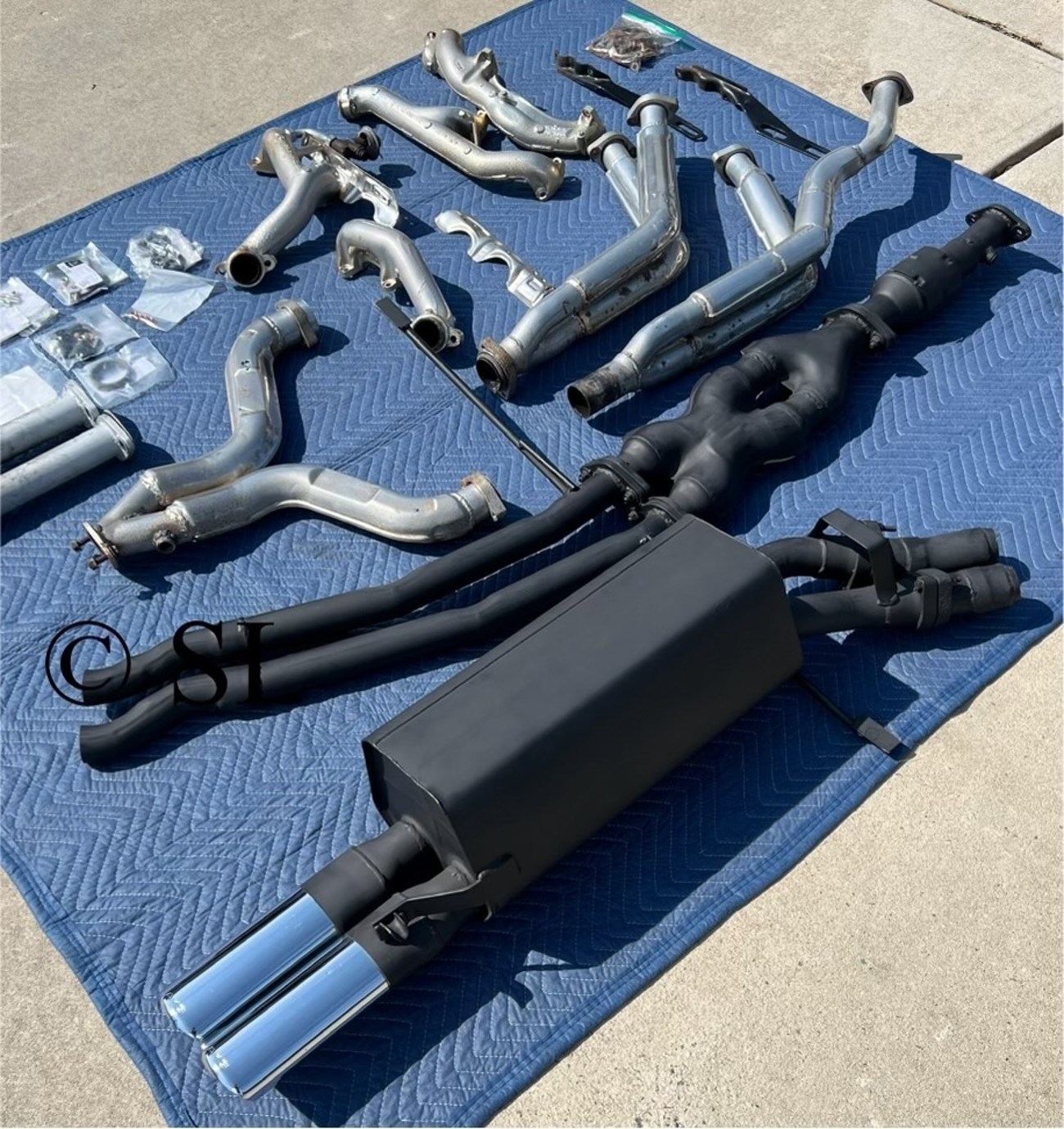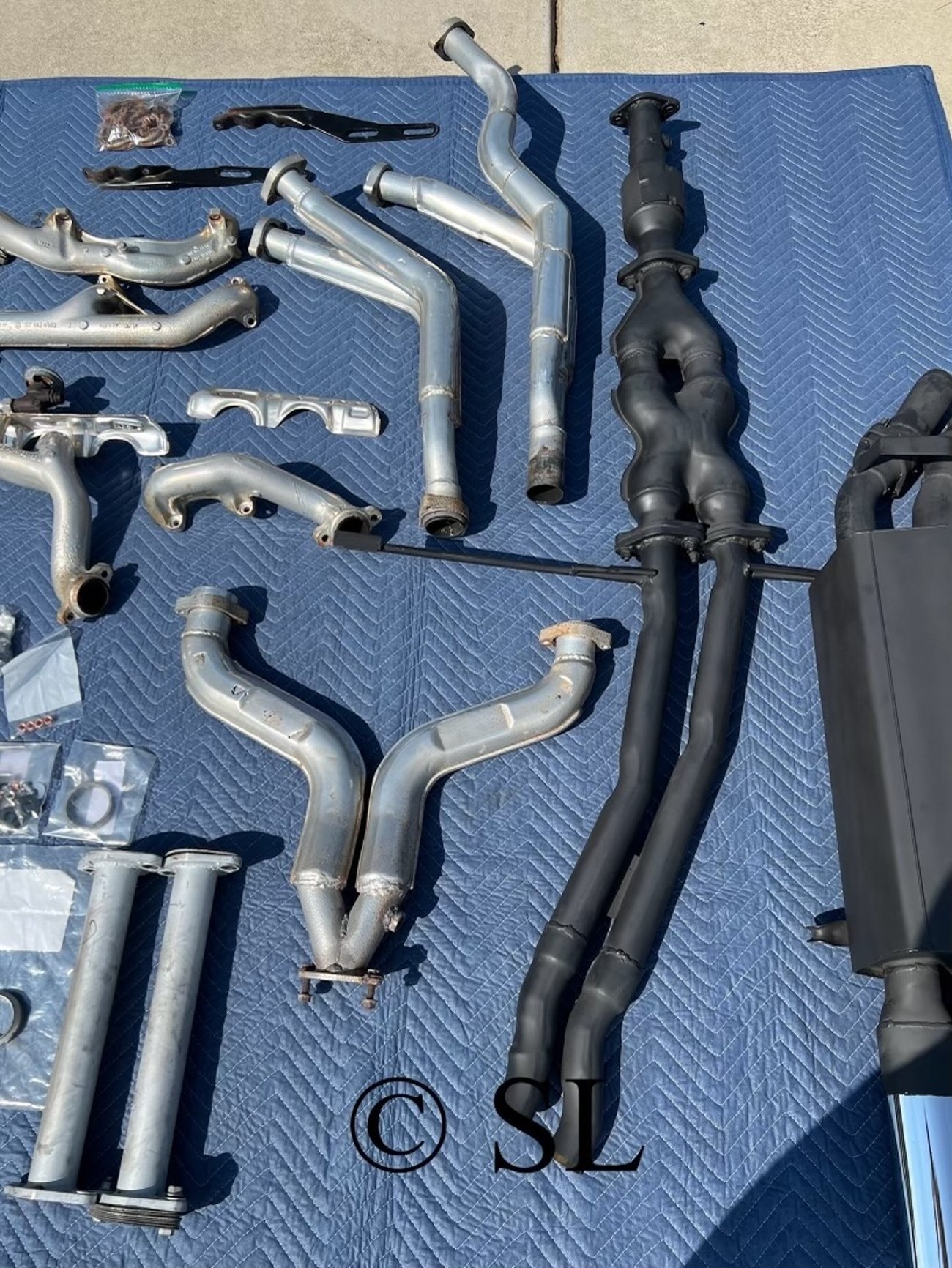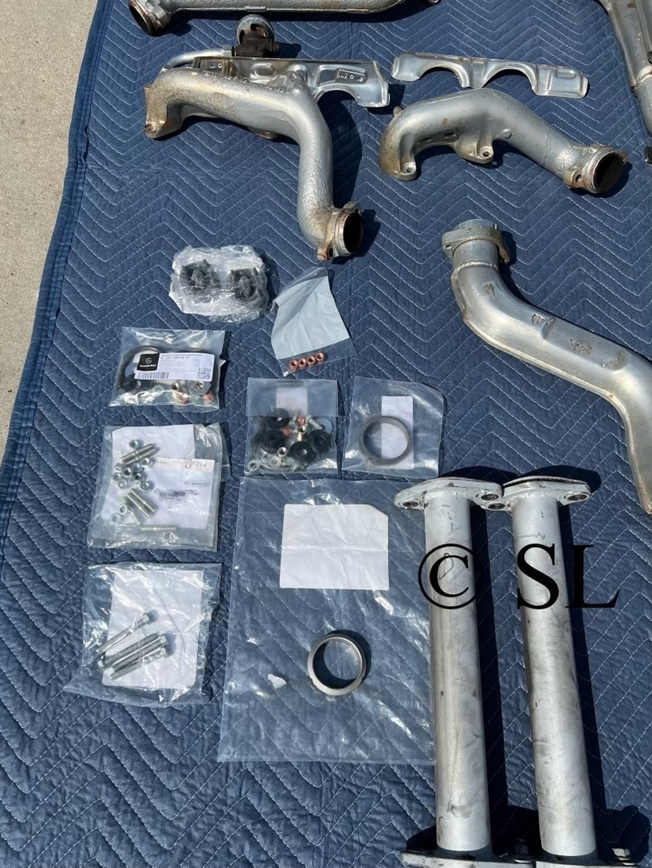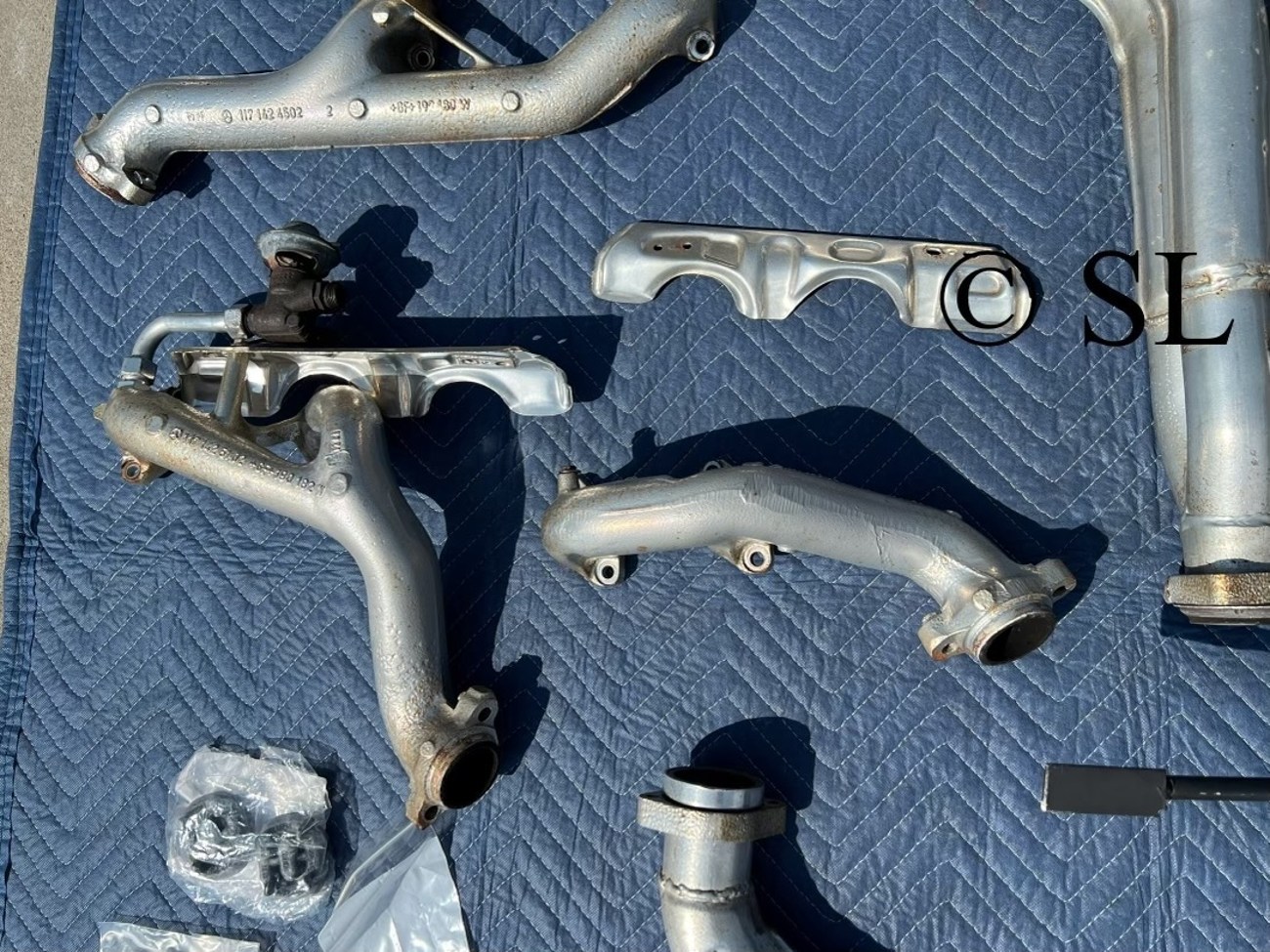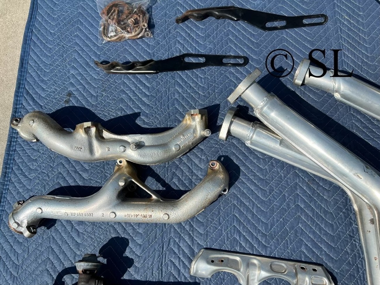 We remember trolling through the Benzworld forums in 2009 searching for Mercedes parts and there were usually pieces and parts of ECE engine cars floating around on the classifieds. Nowadays, these parts are exceedingly rare, but to find a complete system with new mounding hardware and in this kind of condition is actually a little crazy to behold. The North American 5.5-liter M117 made a measly 240-ish horsepower and a touch under 290 foot pounds of torque. They were choked out by the restrictive exhaust systems. The North American M117 was an olympic sprinter that could only breathe out of a coffee stirrer. The Euro cars in comparison are rockets with higher compression and could breathe freely using this exhaust system. This is the biggest upgrade you can make with bolt-on parts if you have a W126 if you don’t want to perform eye-wateringly expensive engine upgrades. A kit this complete will not show up anytime soon again. If you can afford it, you just need to buy it.