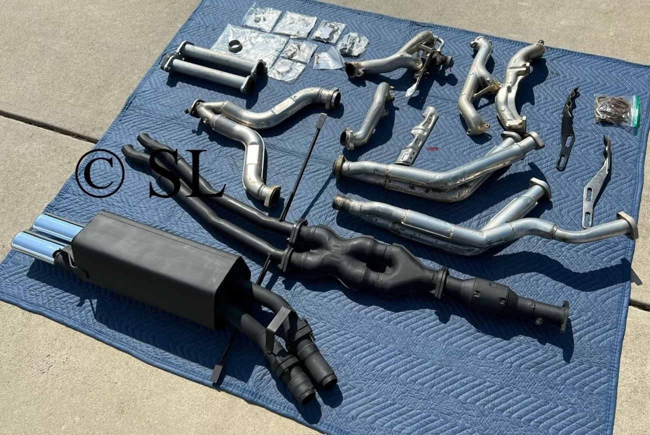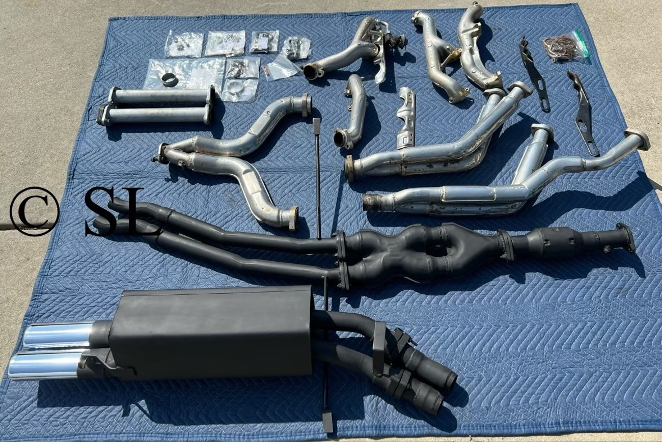 This complete Mercedes-Benz Tri-Y exhaust system was manufactured for the 1986-1991 W126 S-Class and was recently ceramic coated in preparation for the sale. This exhaust system was removed from a late model 560SEL with the high output ECE 5.5-liter M117 V8 engine and will fit a 560 W126 sedan as a complete set, but a lot of the parts will fit a coupe such as the rare Tri-Y headers. The headers consist of four separate pieces with part numbers specified below and the EGR valve and covers are also included as well as an AMG Sebring rear muffler. The seller has included the header nuts, flange seals, rubber exhaust hangers, and all the hardware to bolt this system up to a new car with the original hardware included in a Ziplock bag. This rare Mercedes-Benz M117 ECE exhaust system is being auctioned out of Charlotte, NC and the seller is able to assist with worldwide shipping needs for the buyer.