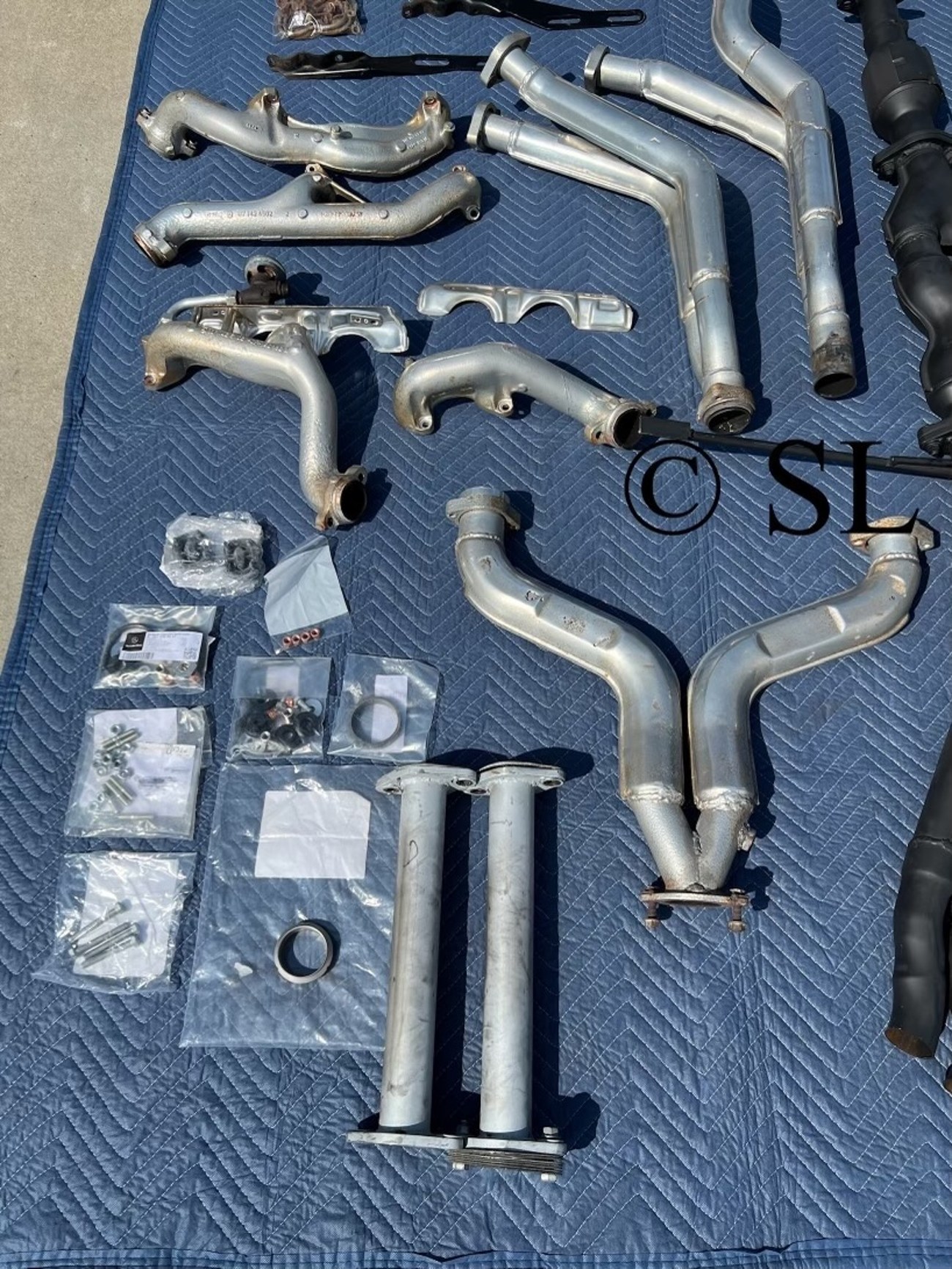 The exhaust manifolds, downpipe, and Y-pipe have been recently ceramic coated. They show in good condition with just a few imperfections. The seller has included new flange seals to ensure a seal system upon installation.