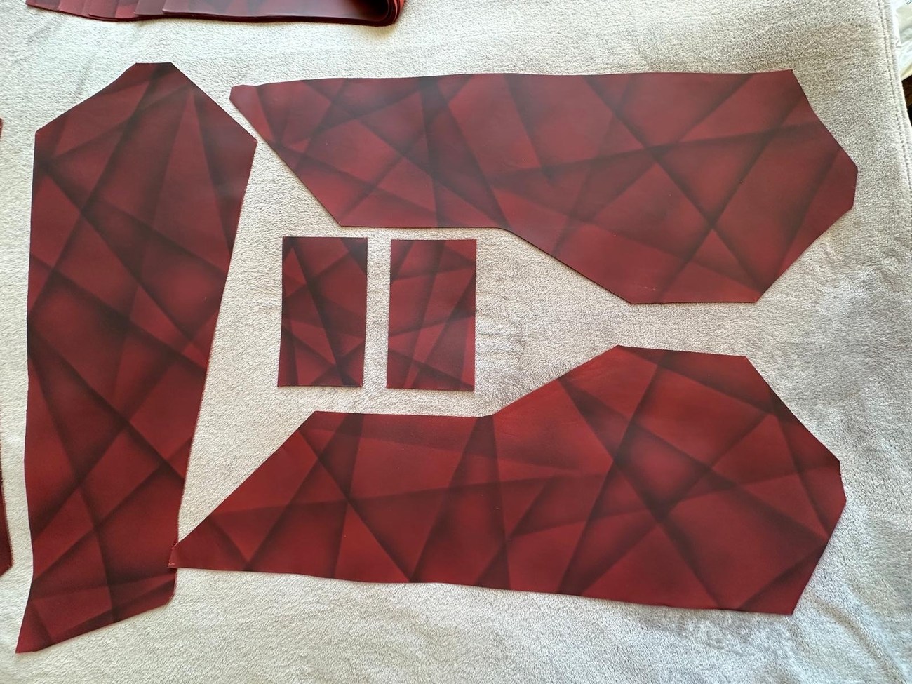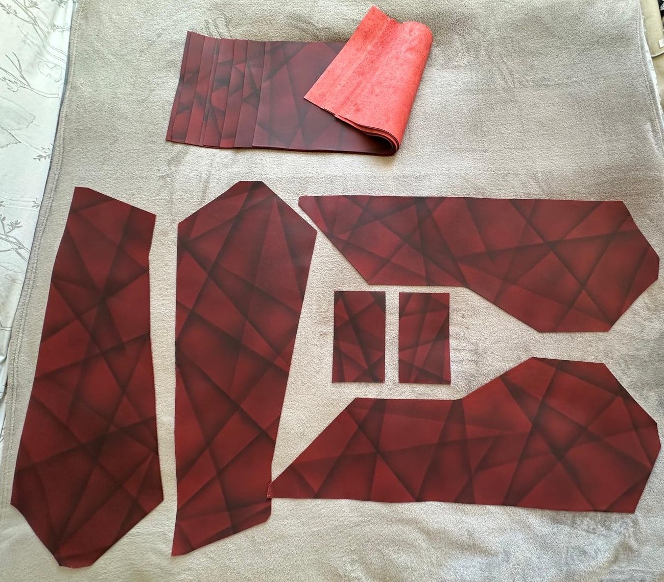 Each piece is precut to fit the interior of a W124 E500/500E. The full kit includes all neccessary pieces for the complete interior including the front and rear seats, all four door cards, the steering wheel, and gear selector.