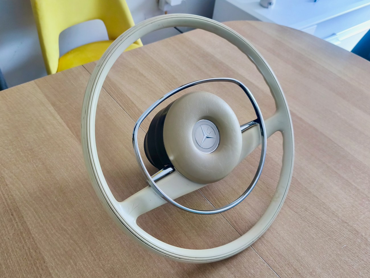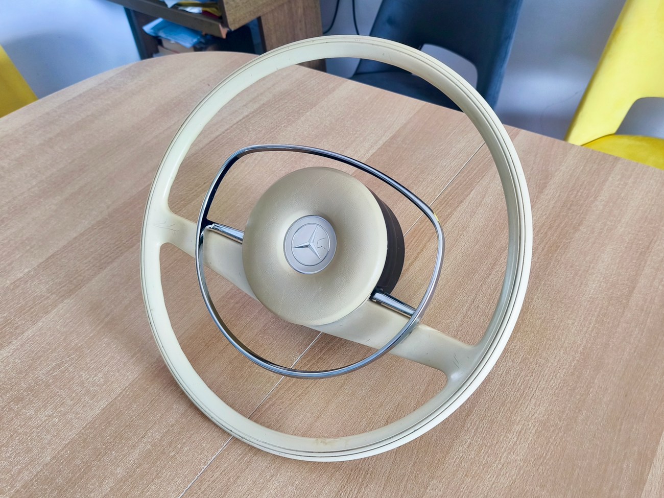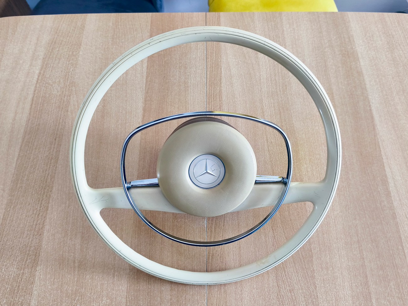 The rim is finished in Ivory and measures approximately 430mm in diameter. The seller notes typical signs of use as well as some markings from long term storage The steering wheel is made from bakelite, a type of plastic that was popular in the 1960s which was extremely durable and highly resistant to heat and chemicals. This steering wheel can fit various Mercedes-Benz models including the following chassis: