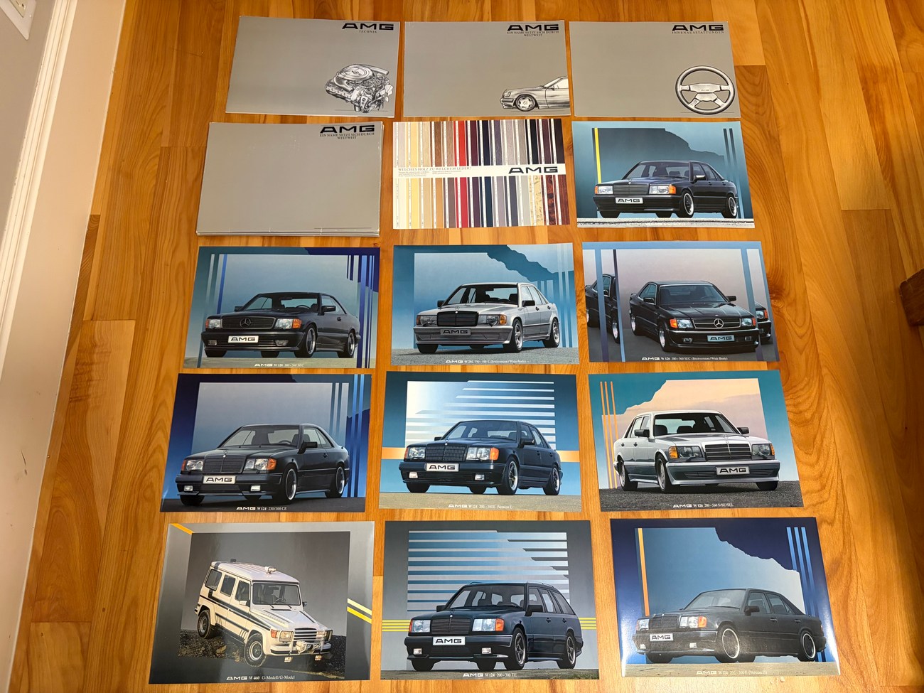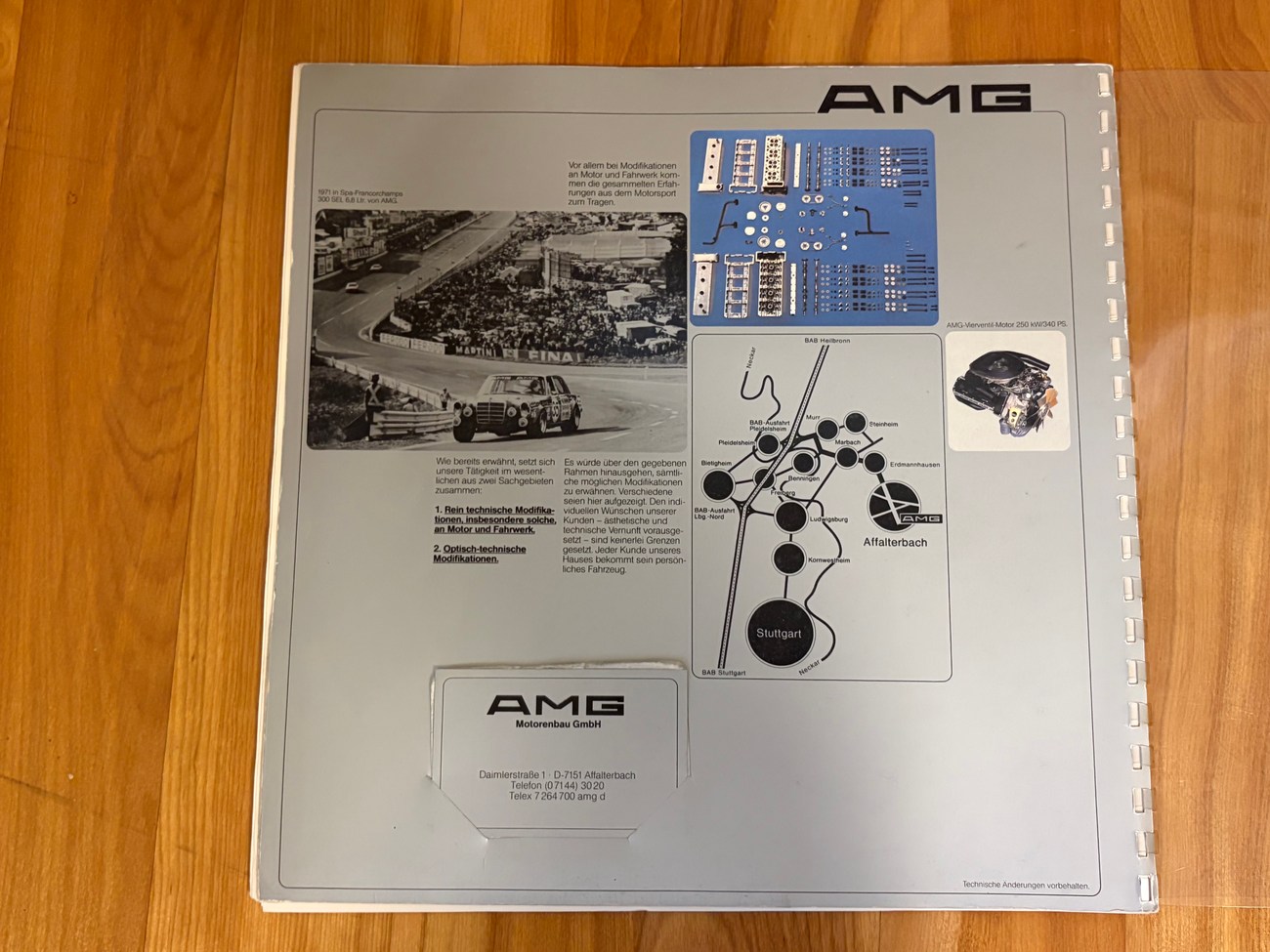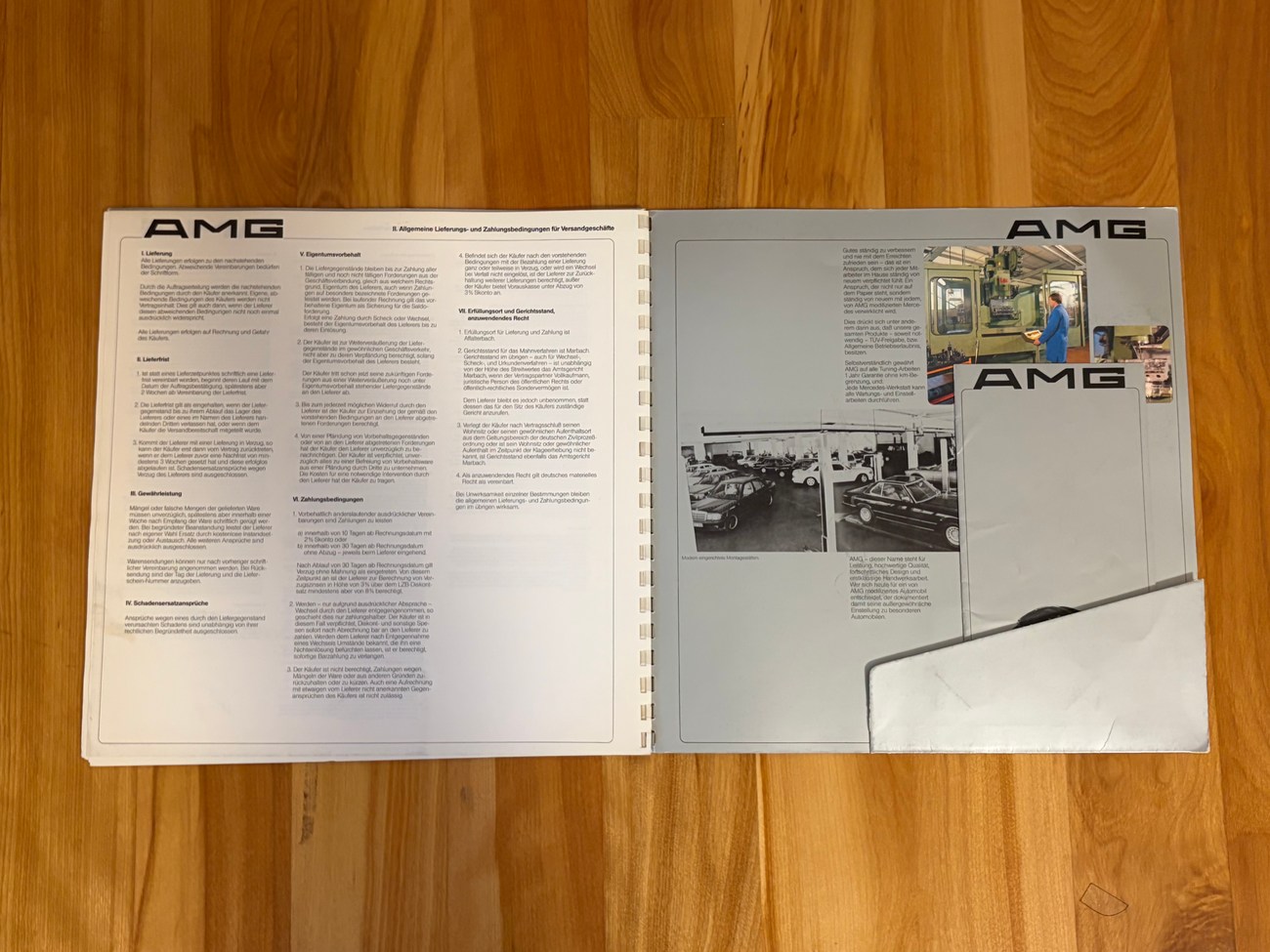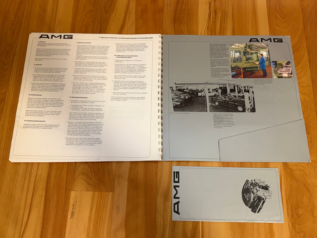 There are five books and one packet included in the overall lot. In the packet there are fifteen different sheets that the seller shows in detail. Included are the postcard style leaflets picturing the AMG models and variants from widebody W201s to W460 G-wagons that could be modified by the tuning outfit in the day. Customers could choose to modify their W460, W201, W124, C124, S124, W126, and C126.