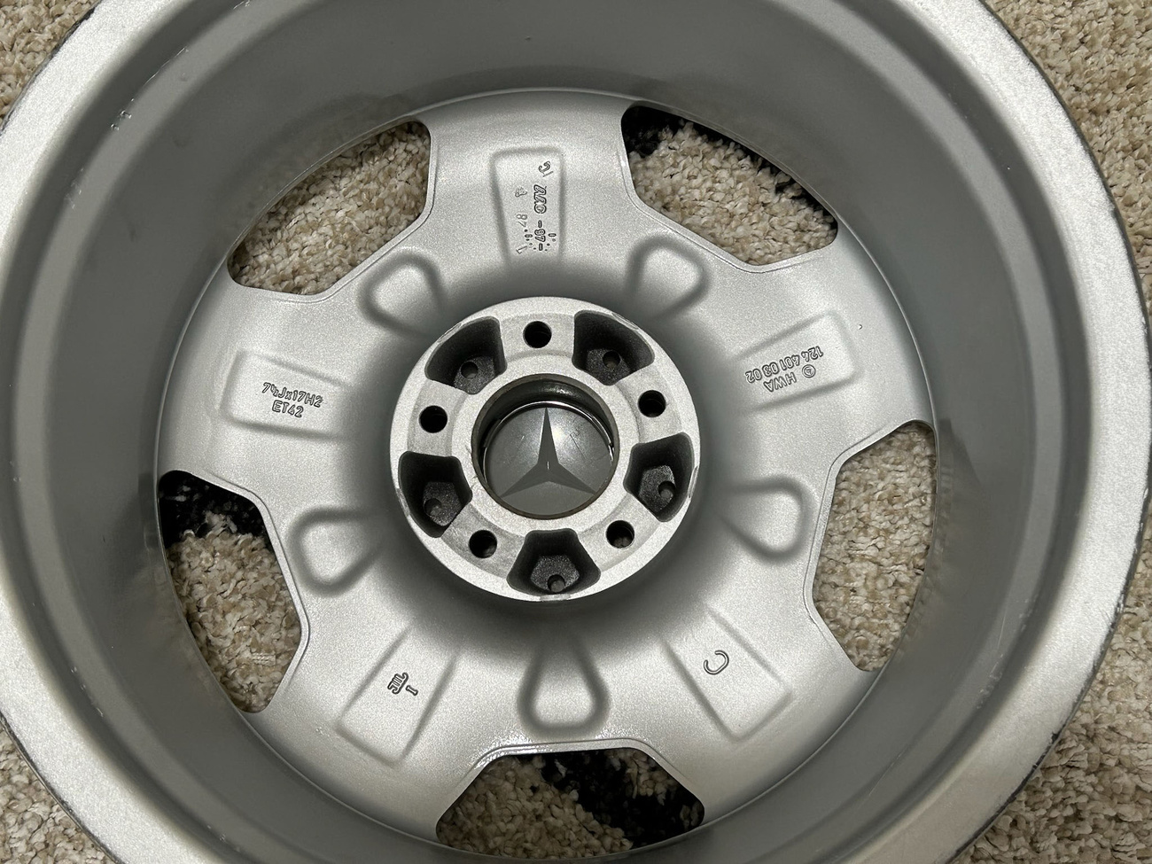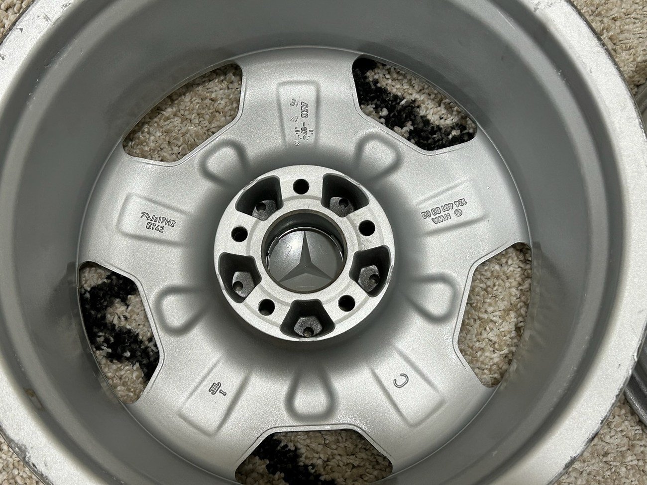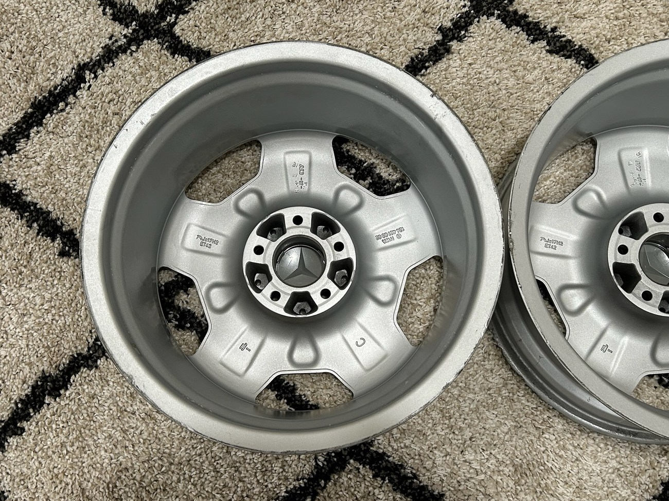 These factory Mercedes-Benz wheels are one of the rarest versions to find with HWA124 part numbers. The wheels will fit any W124 chassis vehicle including sedans, wagons, coupes, and cabriolets. The seller is willing to assist buyers with shipping options as needed at the buyer's expense.
