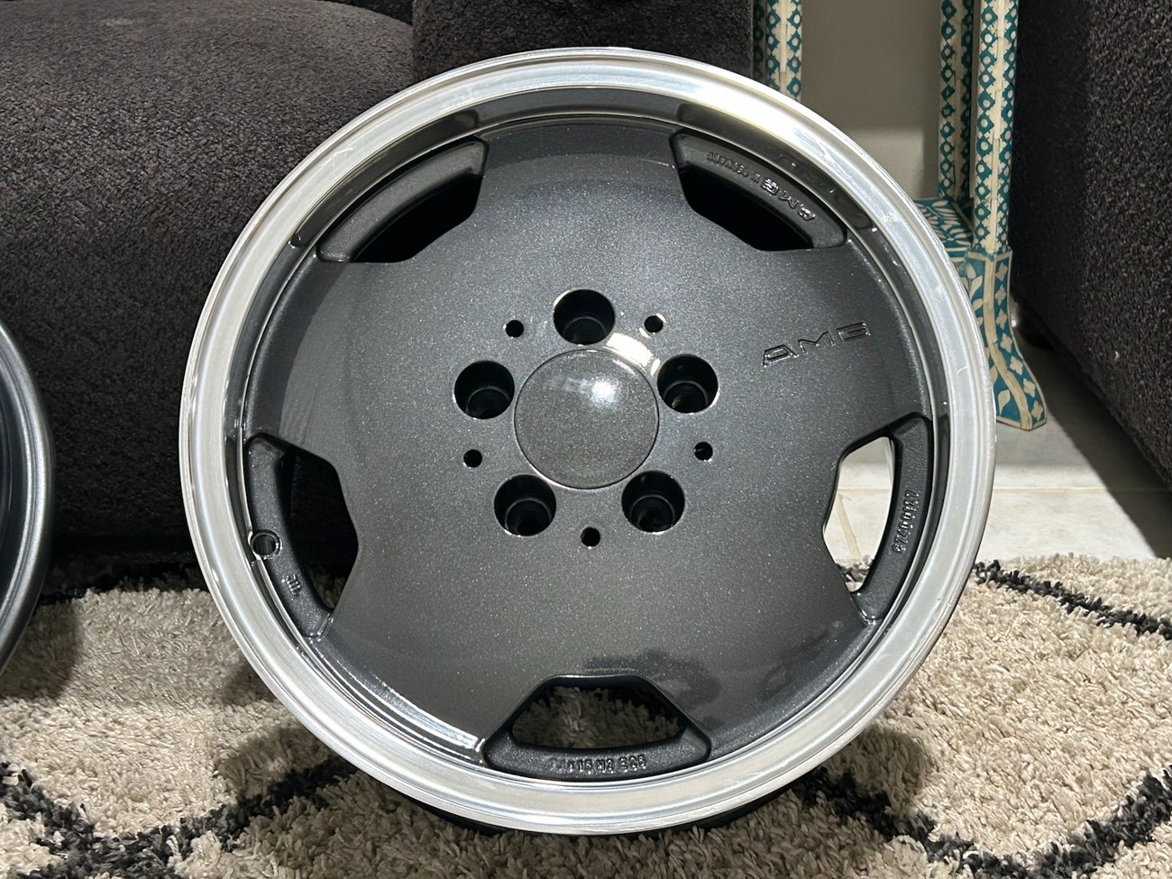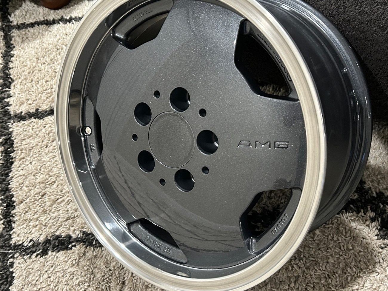 The wheels come with original AMG flat center caps which are painted to match the faces. The wheels were manufactured in W. Germany in 1988 by O.Z. exclusively for AMG.