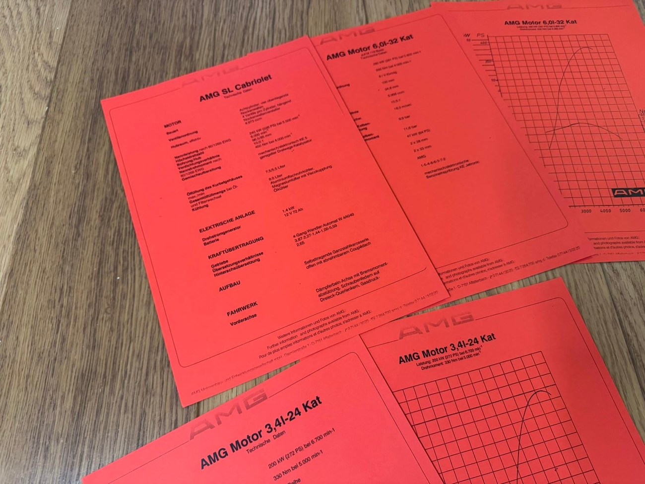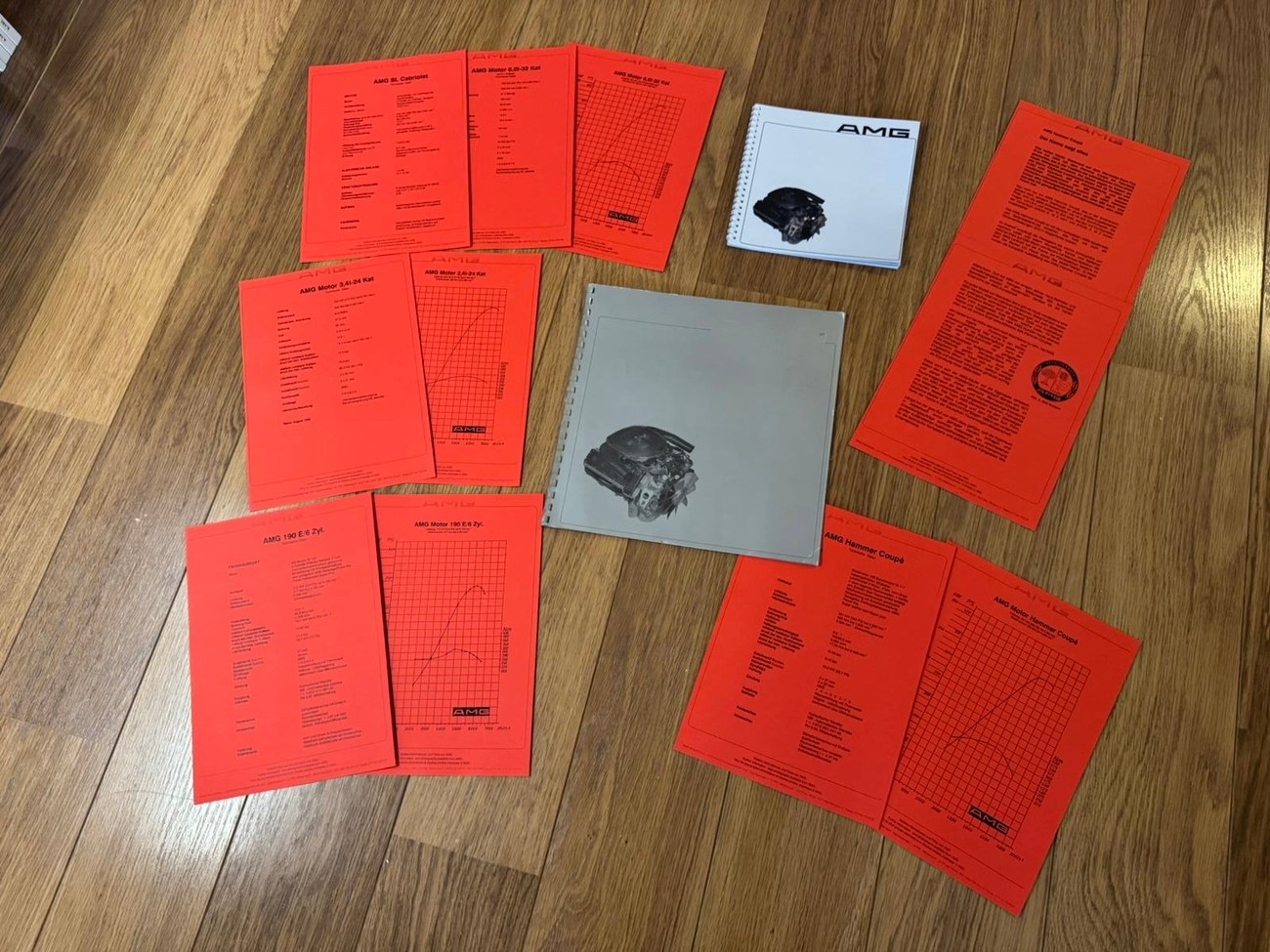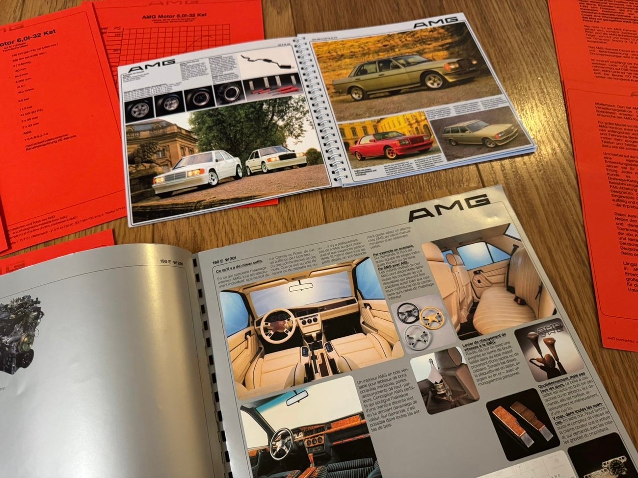 These original premerger AMG Germany brochures and tech sheets feature a number of AMG-specific engine specifications including power figures, part numbers, and more. Eleven of these tech sheets are included in the sale. Additionally, two AMG Germany brochures accompany the sale, each outlining mechanical and cosmetic AMG modifications across the late 1980’s lineup from Mercedes-Benz. All of the pages are in good condition with very little wear, no water damage, and no UV damage. These rare AMG Germany brochures are located in Amsterdam and the seller offers world wide shipping.