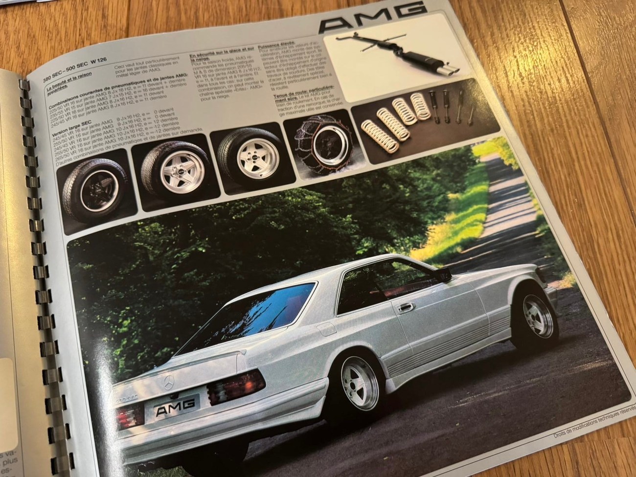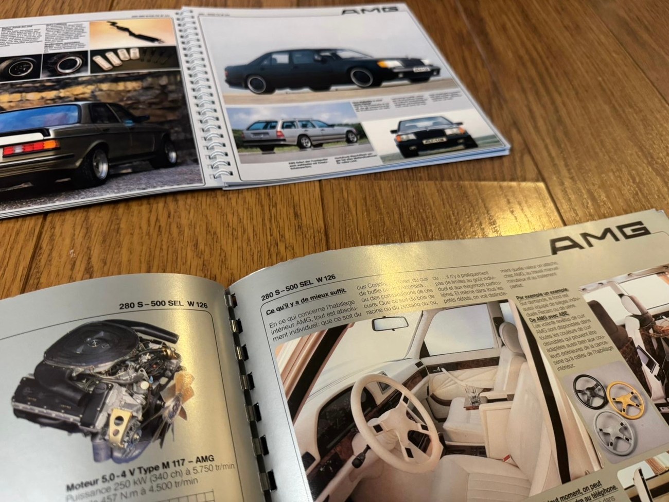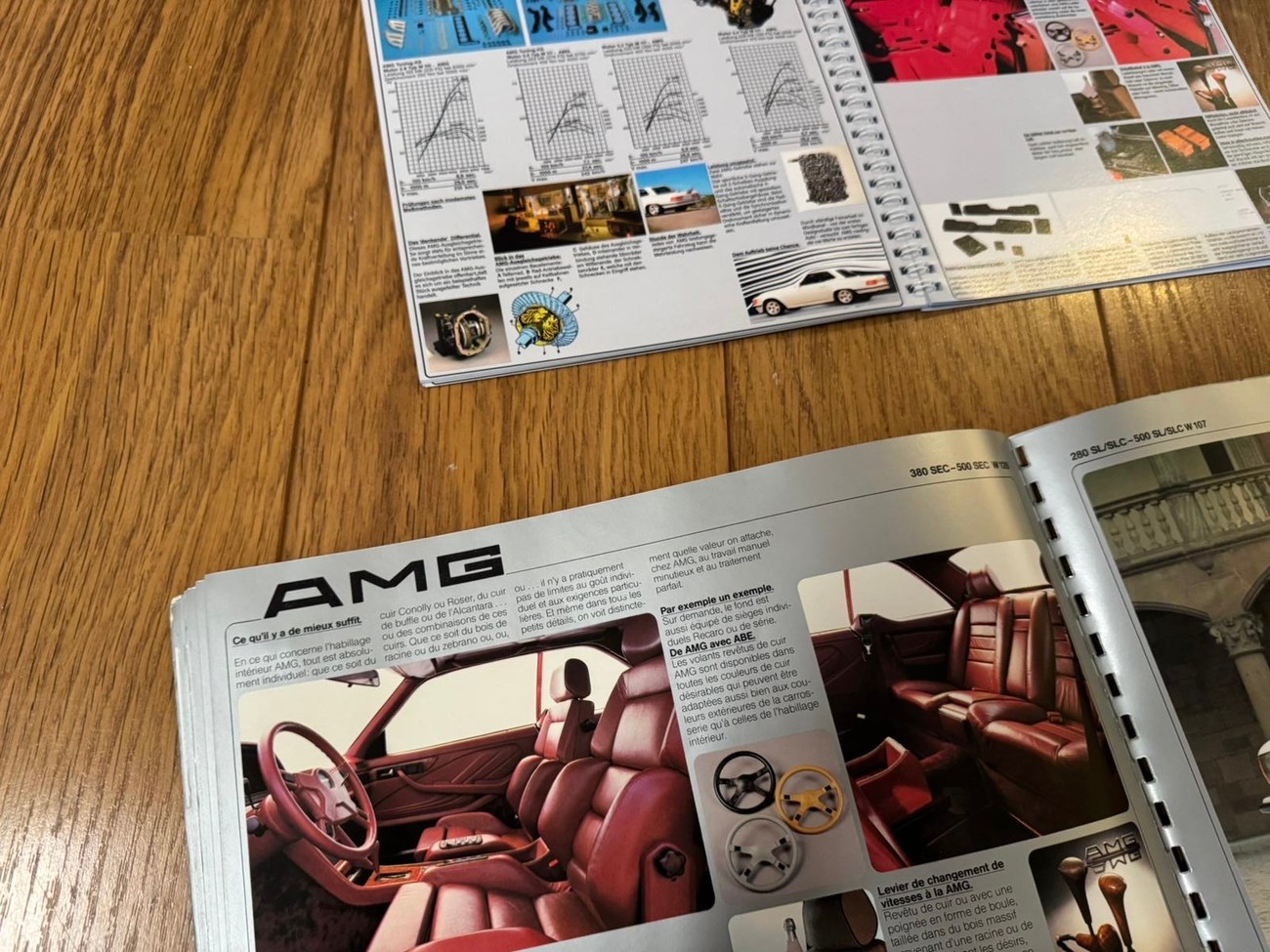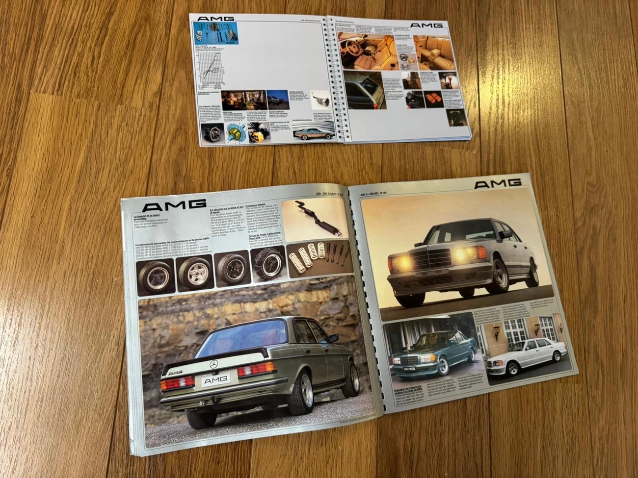 This premerger AMG brochure collection is shown in good condition. The pages show little wear and fold, there’s no foxing or signs of moisture damage, and the illustrations are sharp and clear with no delamination. This premerger AMG brochure collection is now listed by the seller in Amsterdam with world wide shipping available.