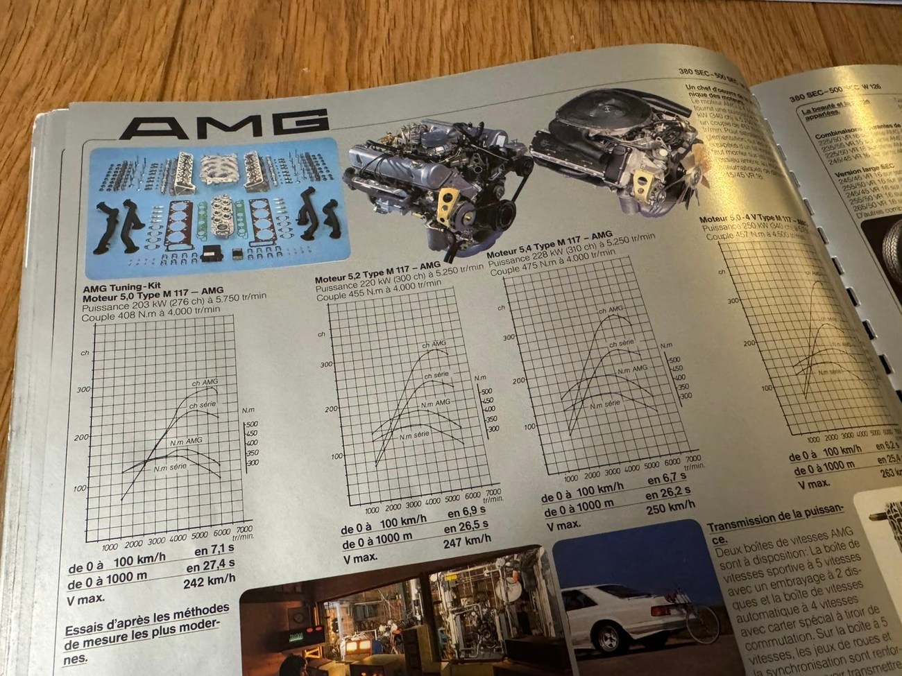 Also included is the sales information on the DOHC M117 engines seen fitted in the C/W126 S-Class and the W/C124 AMG “Hammers.” This has performance statistics included with each engine variant.