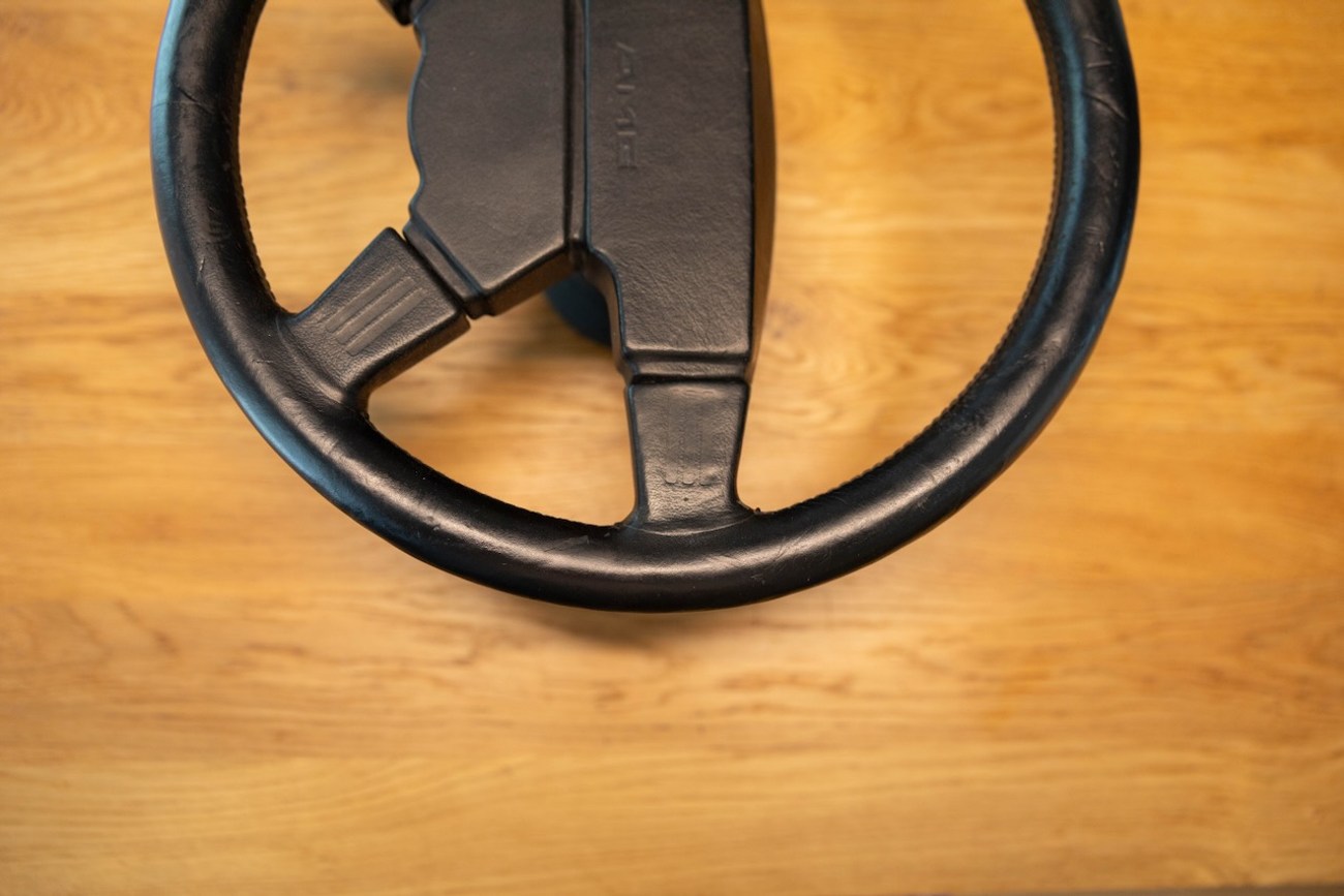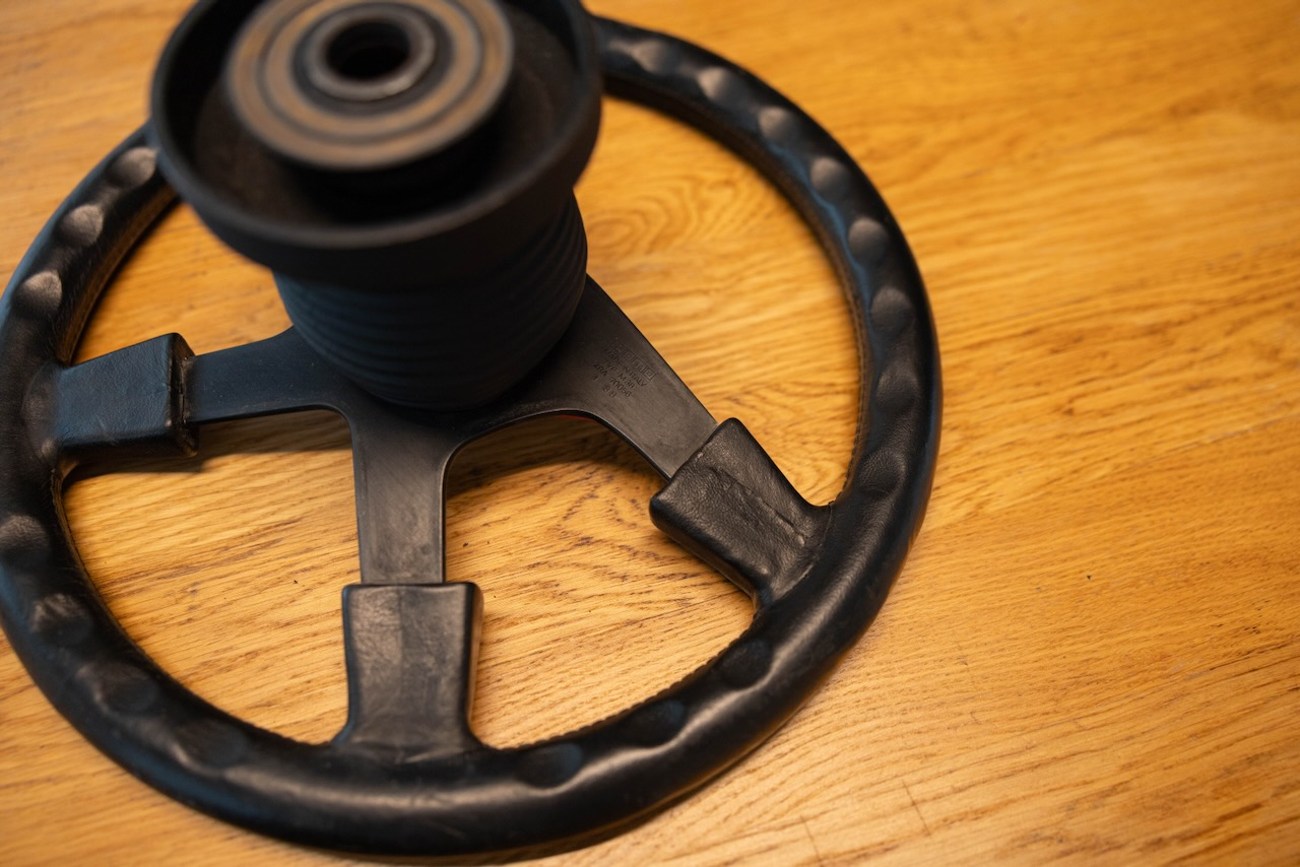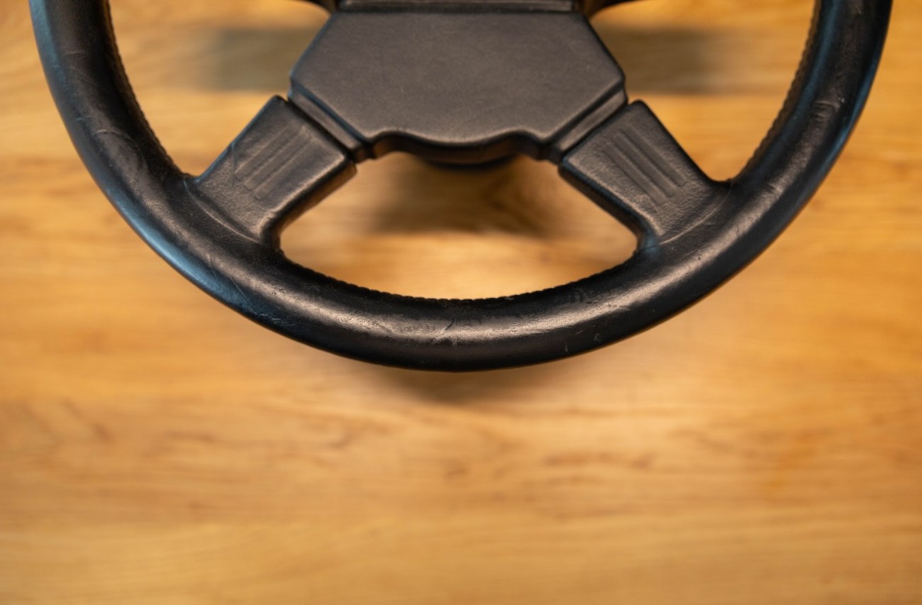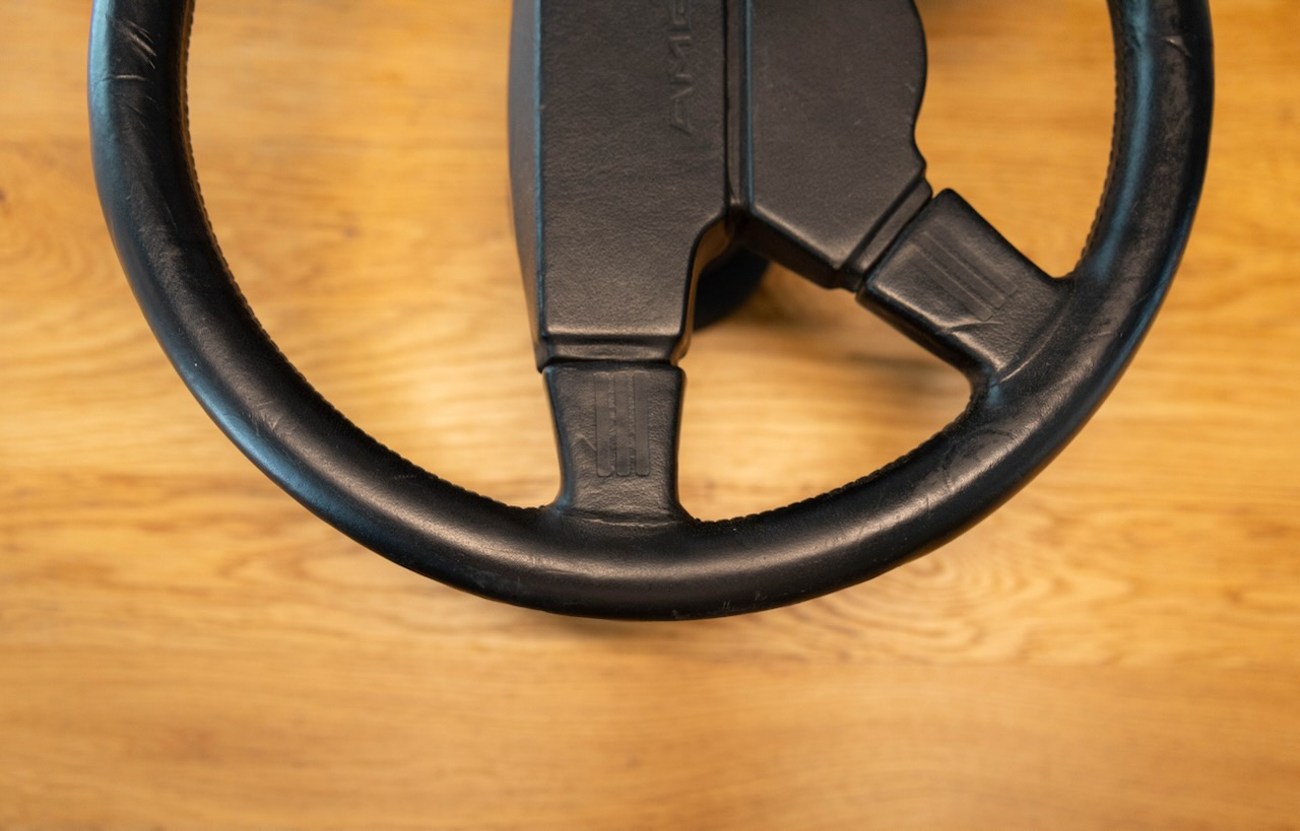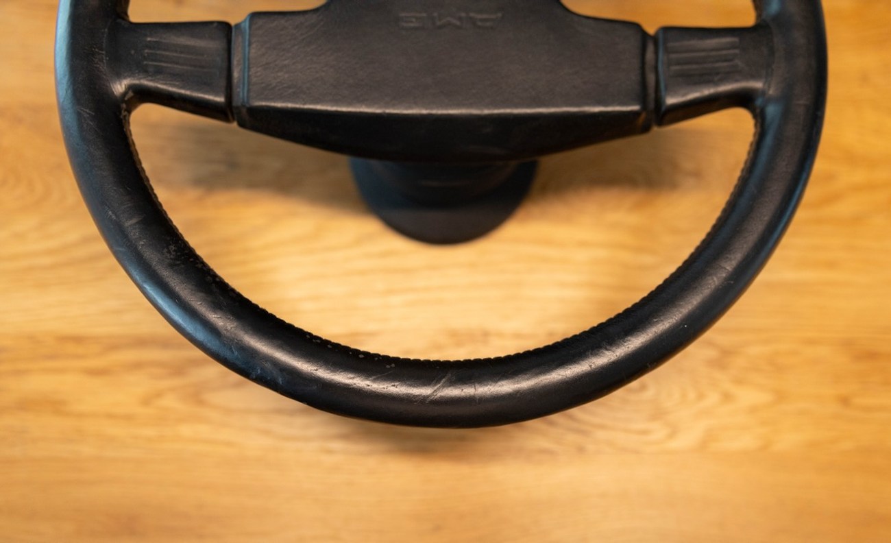 This Momo M38 Steering Wheel was exclusively built for AMG before Mercedes-Benz had stakes in the company making this a genuine pre-merger AMG accessory which was built in collaboration with the Italian company Momo. It’s finished in Black Leather and the “horn pad” is embossed with premerger "AMG" script. The center “horn pad” is removable (by peeling it off from the top down) and centered by four horn buttons. The back of the wheel shows original Momo manufacturer markings including a KBA part number. This M38 steering wheel has a hub adapter attached, meaning it’s bolt-on ready for W126, W124, W123, and R107 cars. This rare AMG steering wheel is located in Douglasville, Georgia and the seller is willing to ship worldwide with expenses paid on behalf of the buyer.