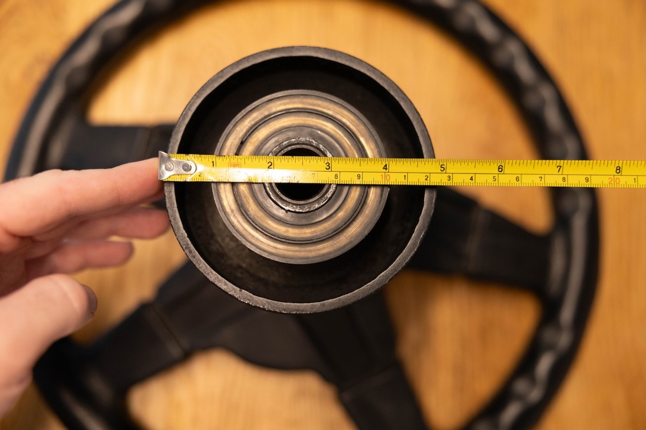 Also on the back of the steering wheel are stampings that read "EXCLUSIVELY MADE FOR AMG GERMANY” showing that this AMG/Momo collaboration was only done as an AMG accessory that could be optioned on late pre-merger cars and seen on some Hammers. The seller has provided measurements in the gallery.