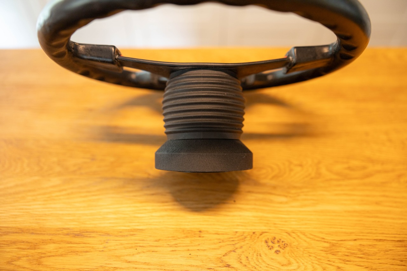 This Momo steering wheel can fit various Mercedes-Benz models. This hub adapter is good for W126, W124, W123, and R107 cars with other adapters available to fit later W201s as the blinker reset brushes are located outside of the clock spring contact area.