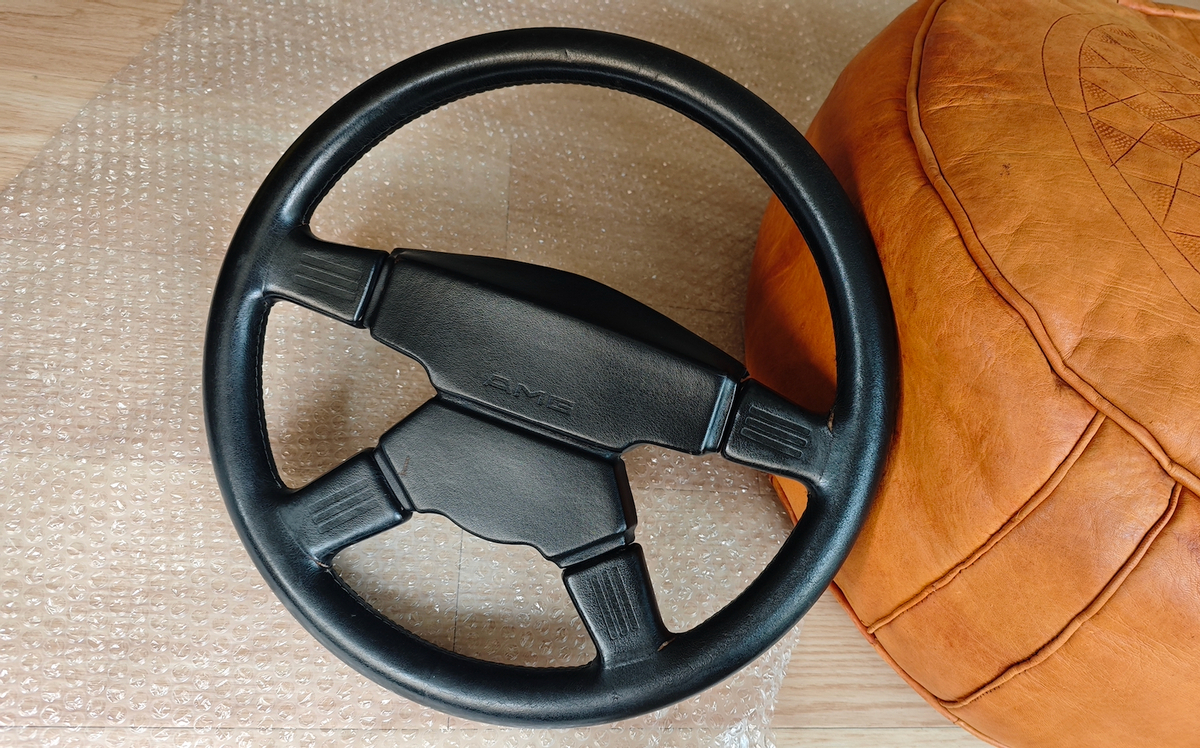 Premerger AMG modified vehicles have become highly collectible. By that same trend, so have the parts which are becoming more rare by the day, as if they weren't already difficult to find. This Momo M38 steering wheel is one of the must have parts to complete a proper premerger AMG car. While driving down the road, these cars can be easily spotted with aggressive AMG body kits and wheels, possibly blasting your favorite 80's hit with the windows down. On the interior, there were less obvious options aside from Recaro seats, extended wood, and of course, a proper AMG steering wheel. The M38 was exclusively made for AMG with the engraved premerger "AMG" script across the center horn pad. We tend to see these steering wheels from time to time after being recovered in new leather. There's something special about an original condition example like this with the original leather. No matter what old school Mercedes muscle car you've got, this steering wheel can spice up the interior in all the right ways.