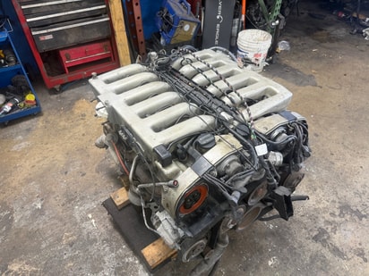 Bid for your chance to own this M120 6.0-liter V12 Engine on The MB Market. The auction includes the engine, spark plugs, spark plug wires, intake manifold, exhaust manifolds, engine mounts, serpentine belt, pulley, ancillary items such as compressor, alternator, power steering pump, etc.