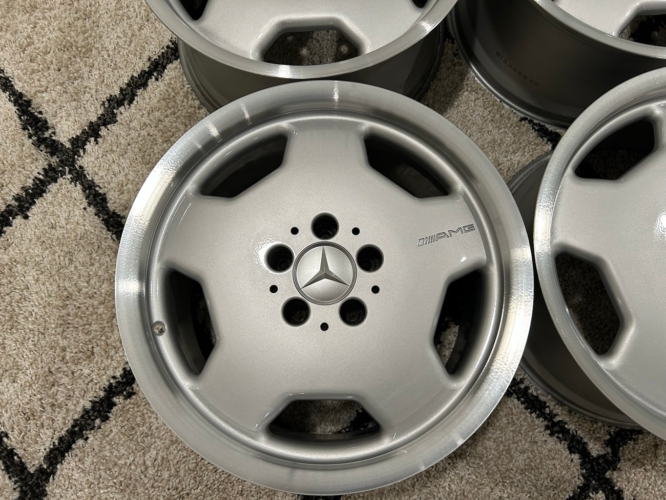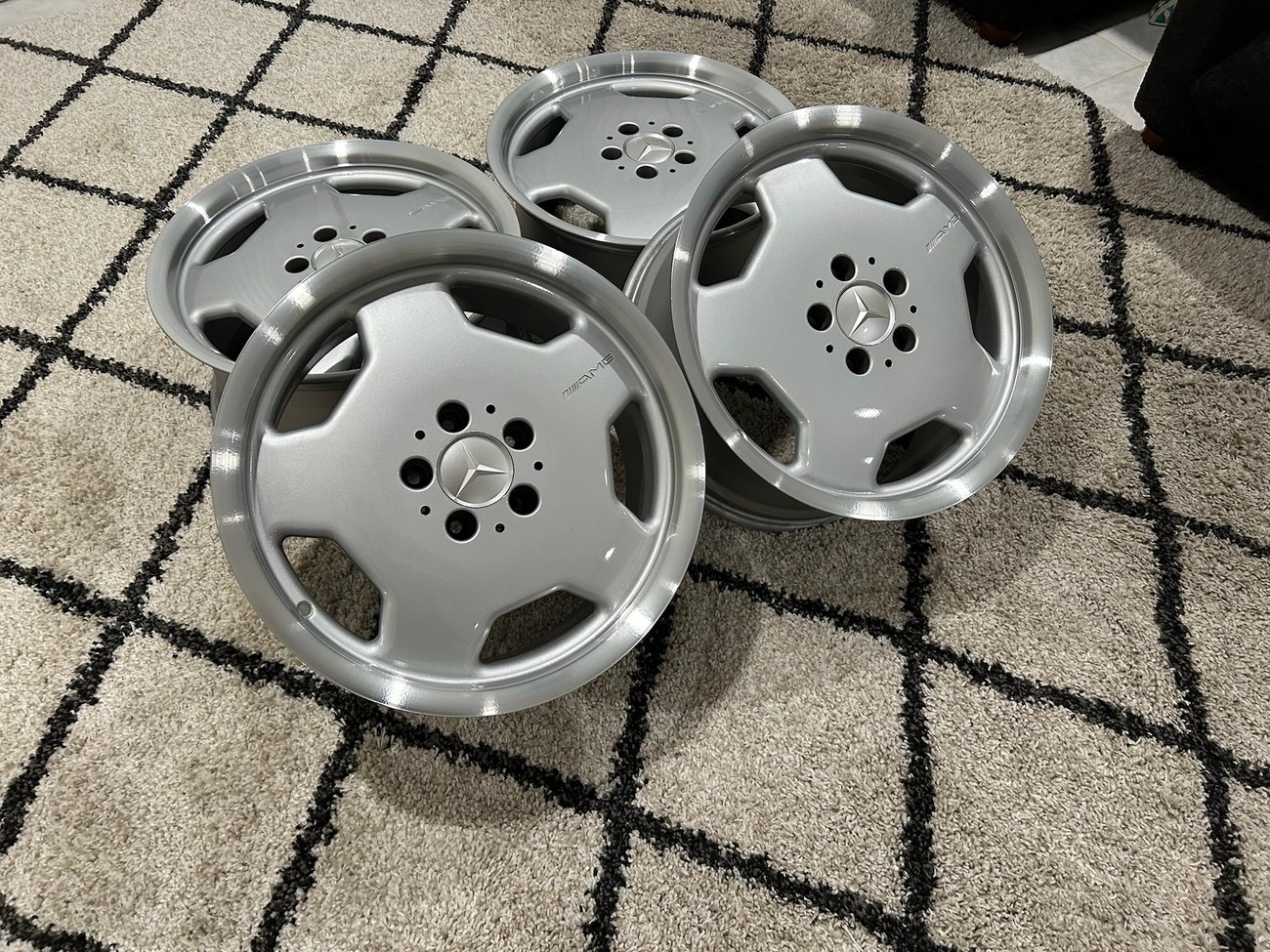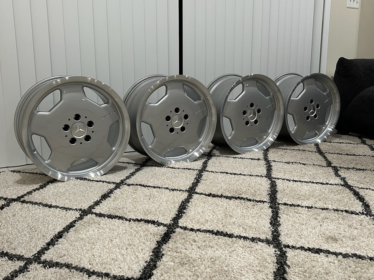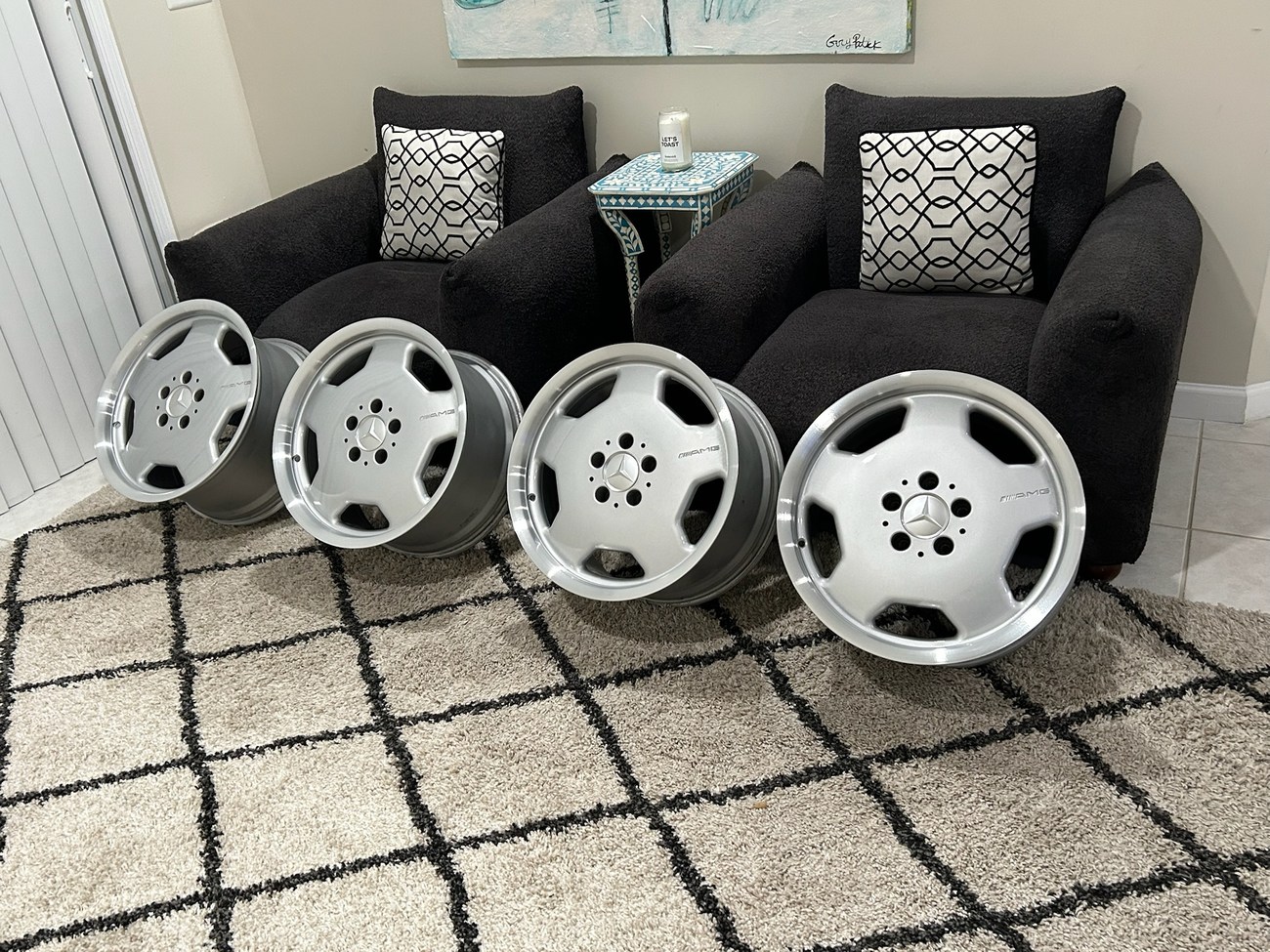 Hi everyone. I am pleased to present these 17” squared Aero II Monoblocks. These wheels are what was used in the rear for the staggered setup on the W202 C43 Amg. This is an interesting setup in terms of fitment because it now becomes the perfect match for several different models. These Monoblocks are a direct fit for the W208, W209, W211, and W124. This set can also go on the W201, W202, W203, W210, R170, and R171. For all the 500E owners out there looking to do a 17” Aero II Monoblock look, this is the best setup for that. The offset of 30 makes the wheels fit perfectly for the wide wheel arch. I am here to answer any questions and happy bidding.
