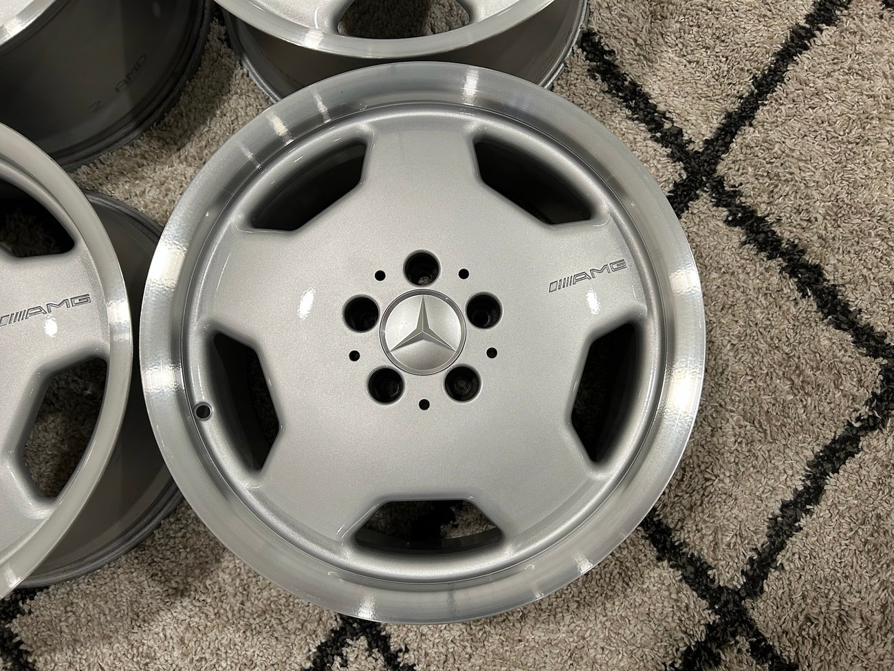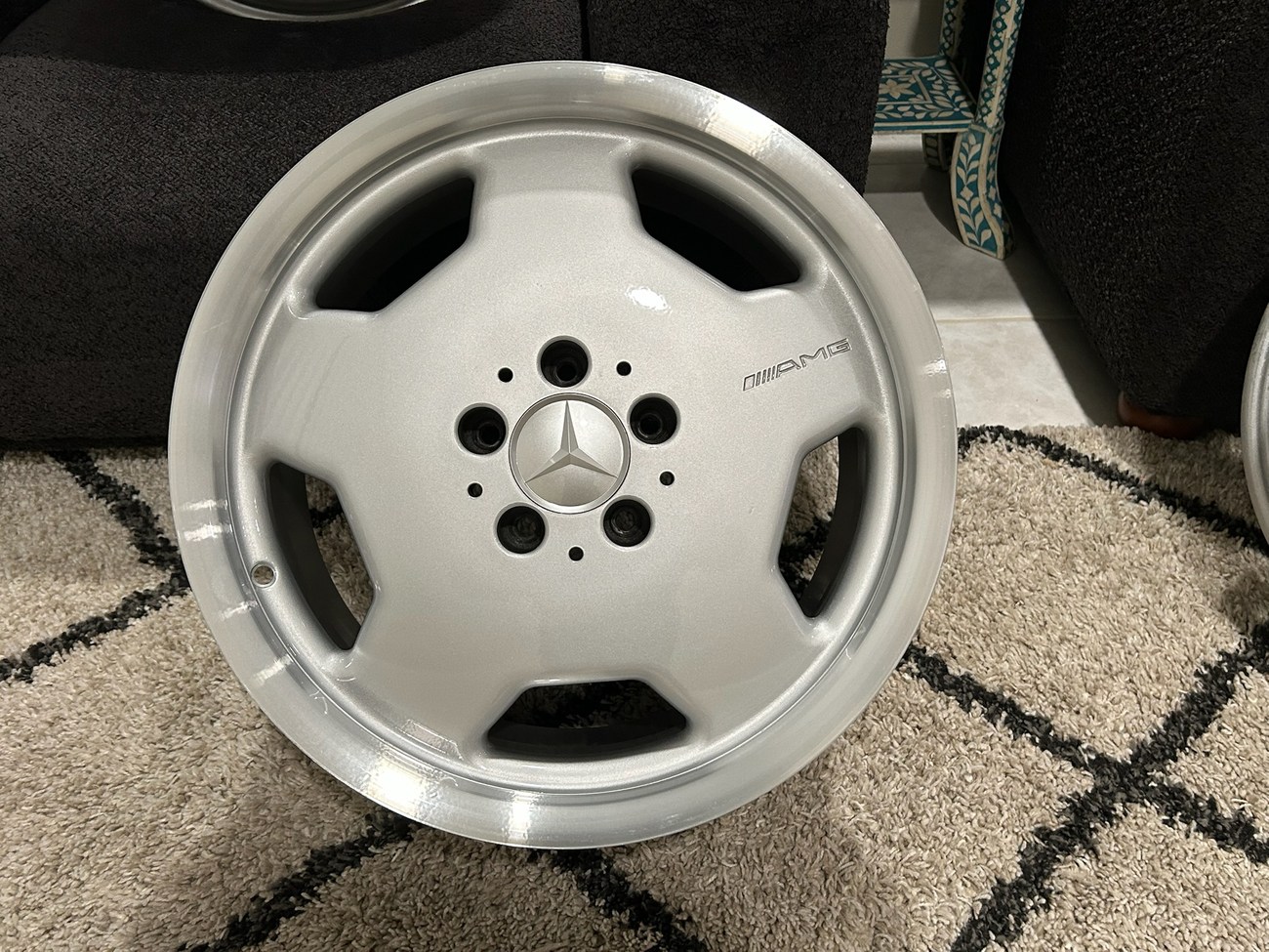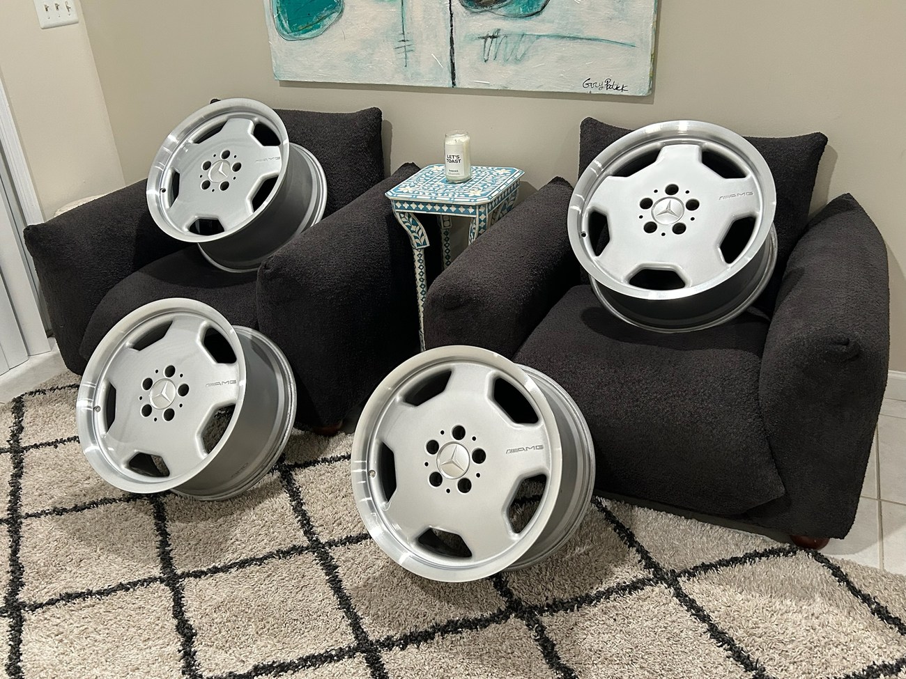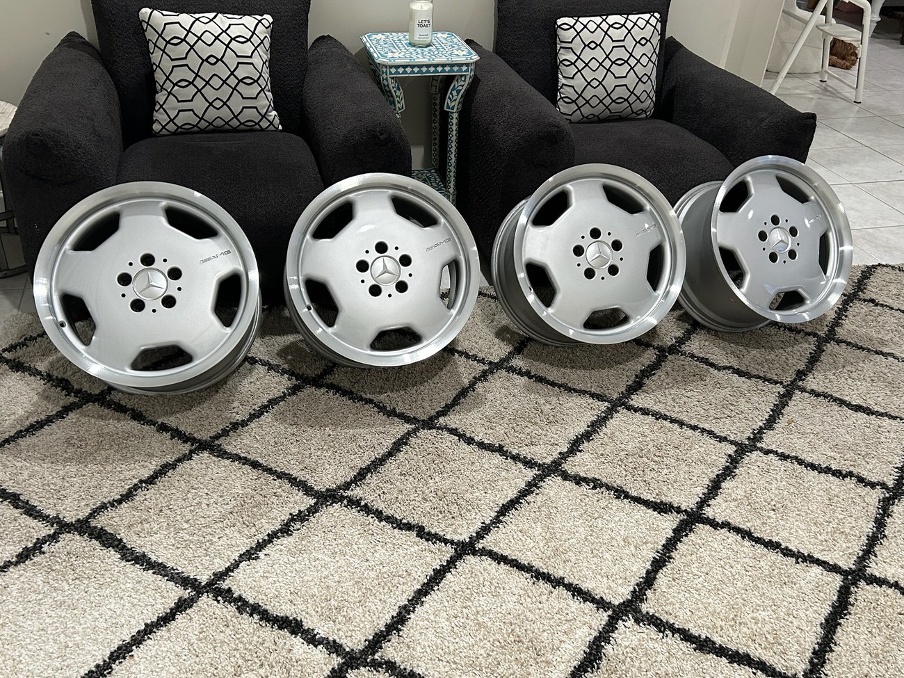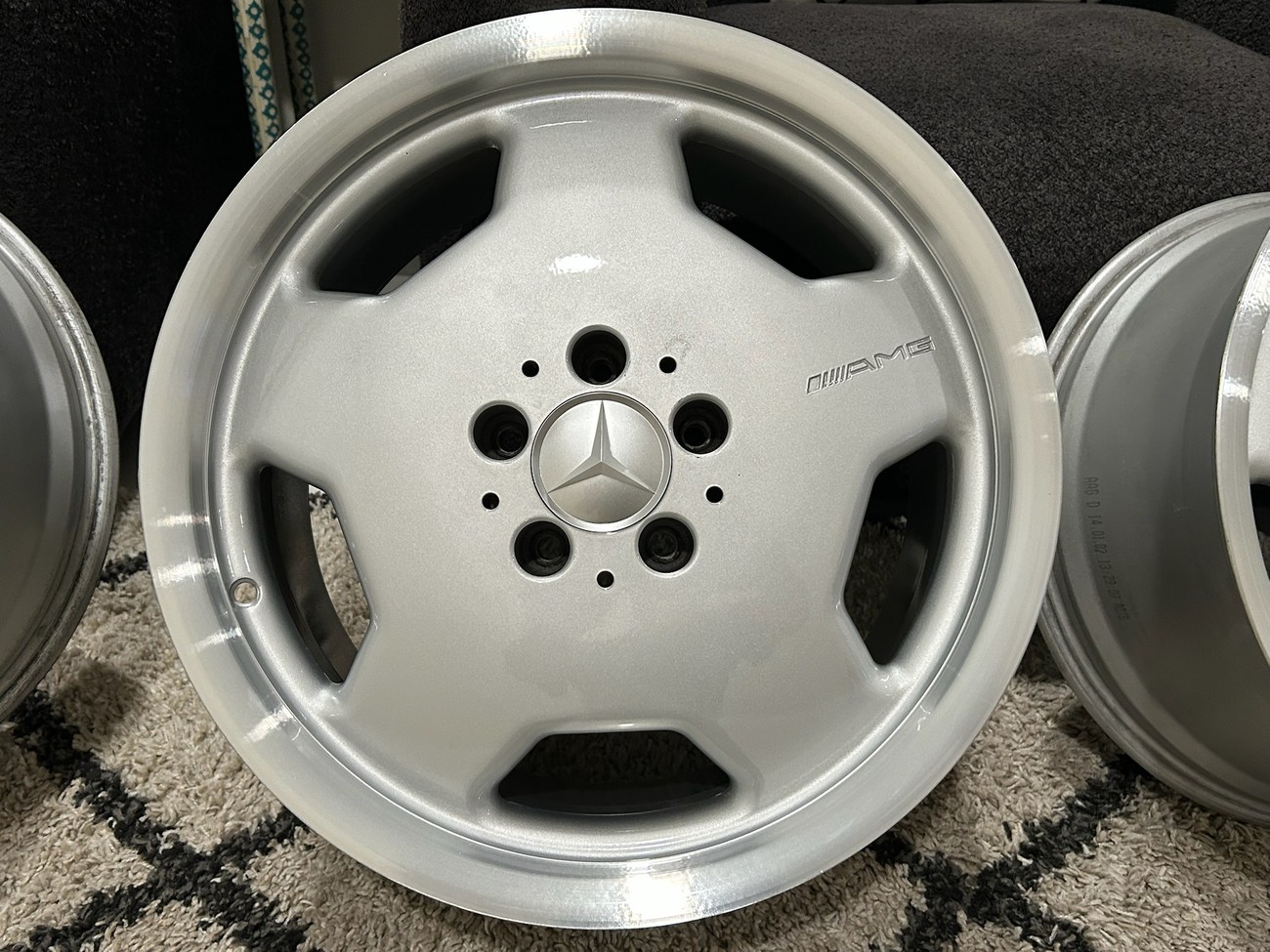 Hi everyone. I am pleased to present these 17” squared Aero II Monoblocks. These wheels are what was used in the rear for the staggered setup on the W202 C43 Amg. This is an interesting setup in terms of fitment because it now becomes the perfect match for several different models. These Monoblocks are a direct fit for the W208, W209, W211, and W124. This set can also go on the W201, W202, W203, W210, R170, and R171. For all the 500E owners out there looking to do a 17” Aero II Monoblock look, this is the best setup for that. The offset of 30 makes the wheels fit perfectly for the wide wheel arch. I am here to answer any questions and happy bidding.