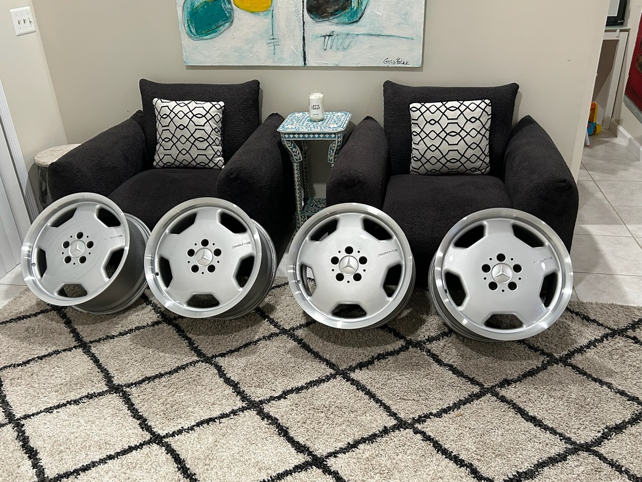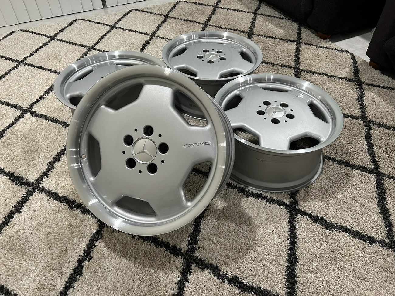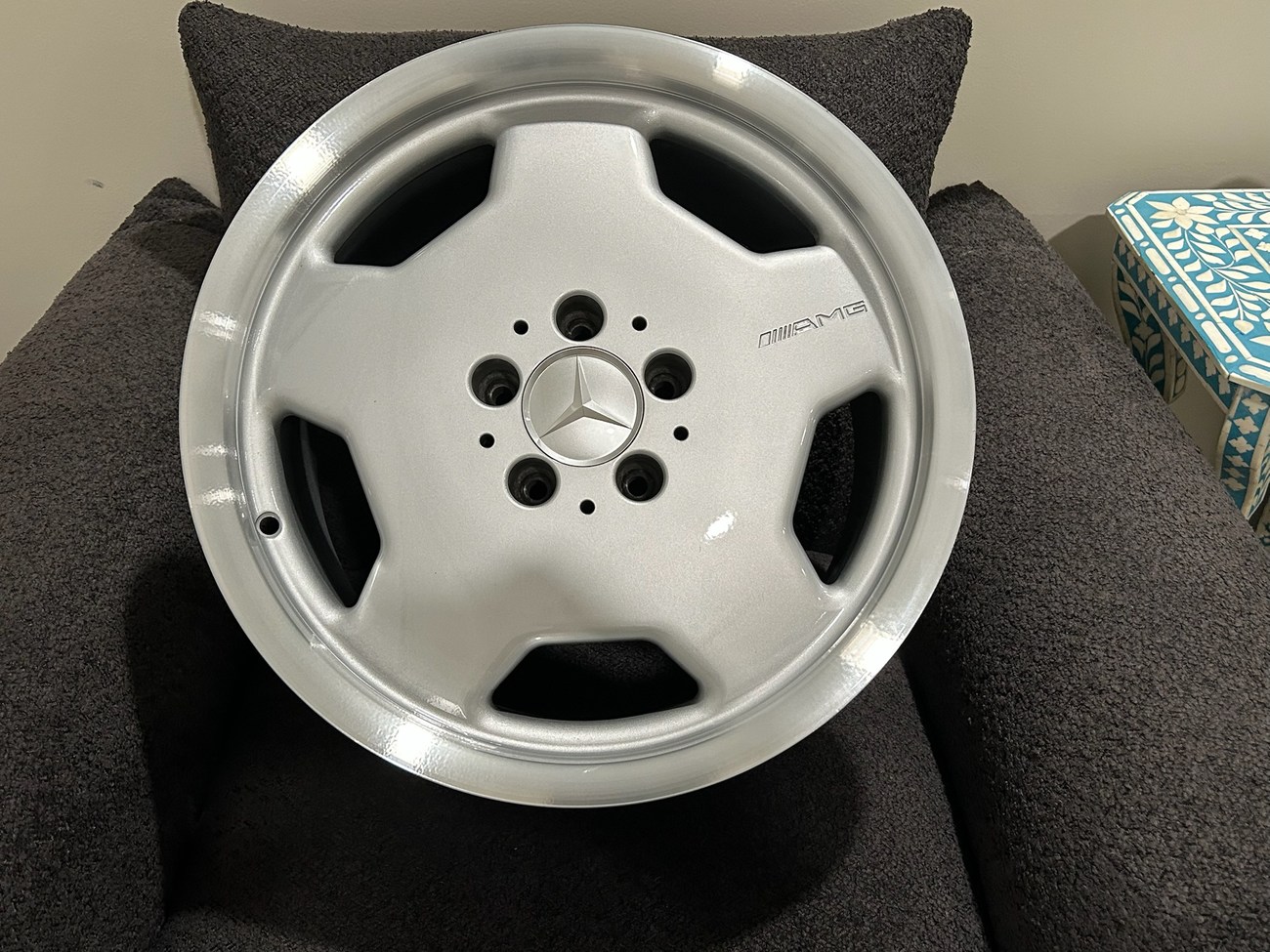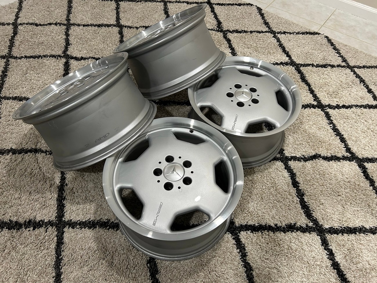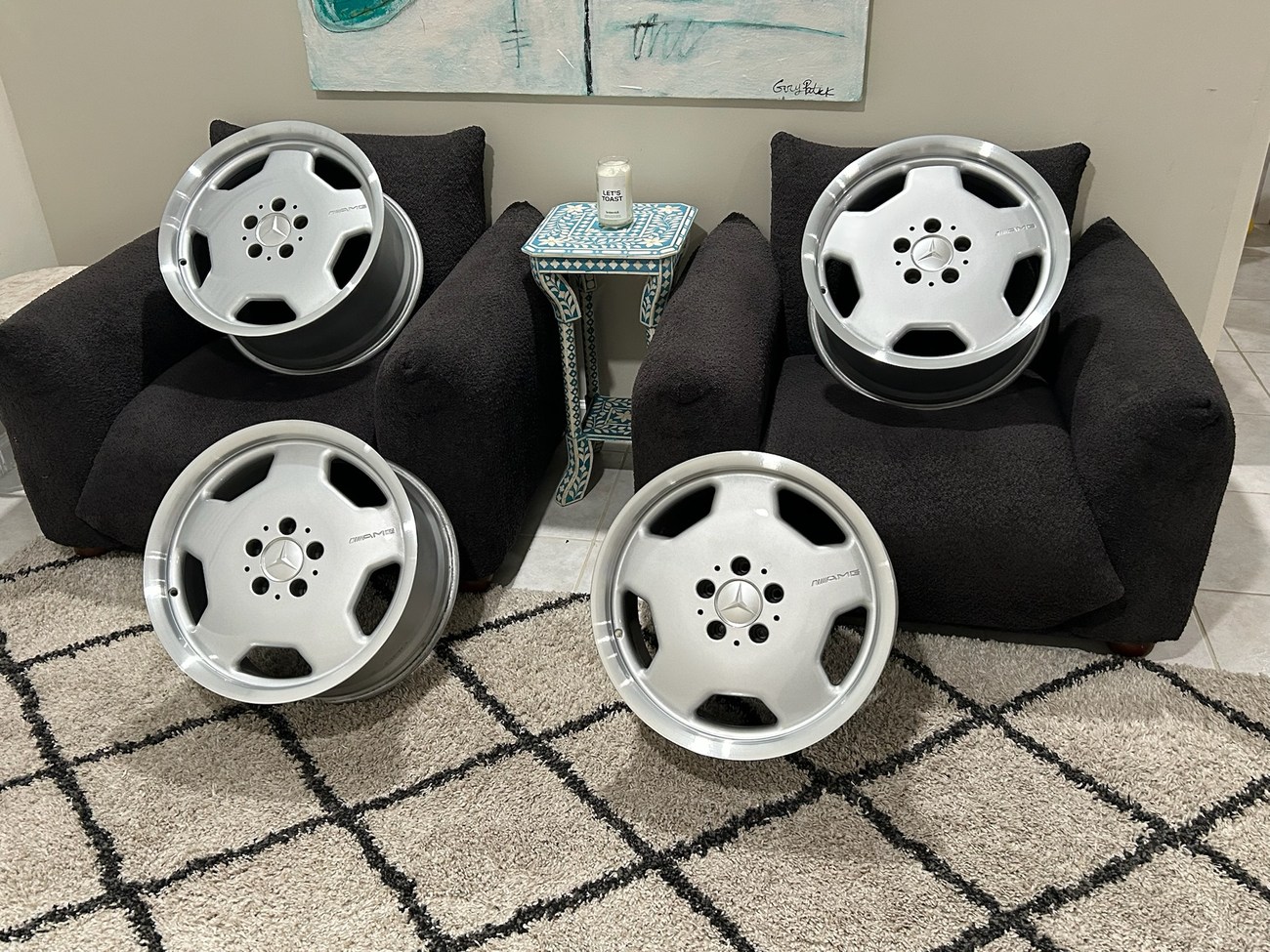 Hi everyone. I am pleased to present these 17” squared Aero II Monoblocks. These wheels are what was used in the rear for the staggered setup on the W202 C43 Amg. This is an interesting setup in terms of fitment because it now becomes the perfect match for several different models. These Monoblocks are a direct fit for the W208, W209, W211, and W124. This set can also go on the W201, W202, W203, W210, R170, and R171. For all the 500E owners out there looking to do a 17” Aero II Monoblock look, this is the best setup for that. The offset of 30 makes the wheels fit perfectly for the wide wheel arch. I am here to answer any questions and happy bidding.