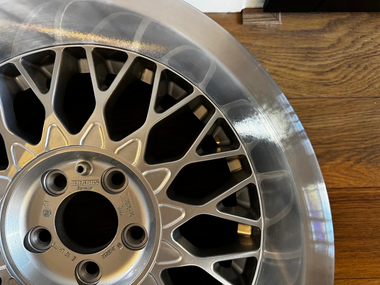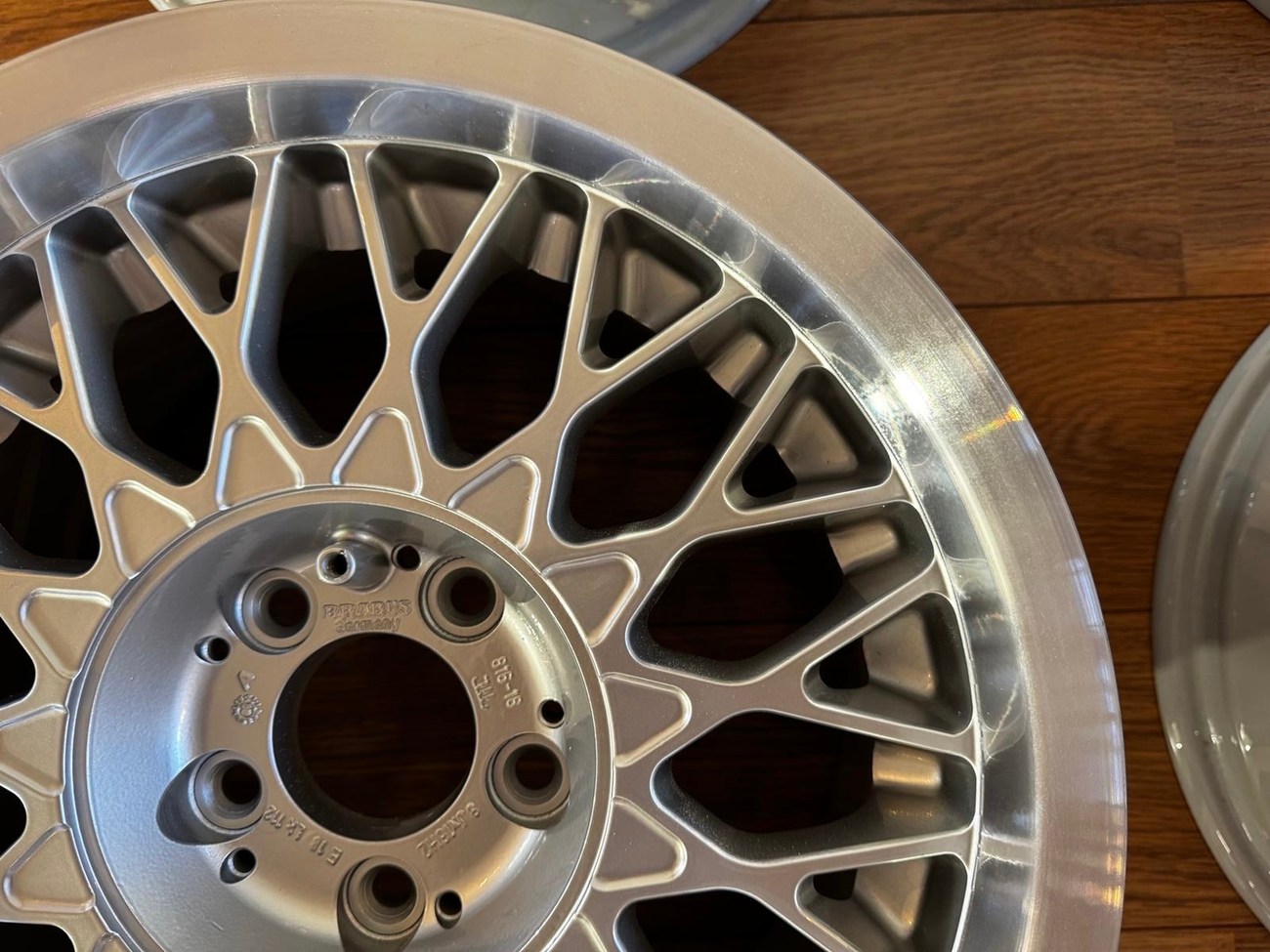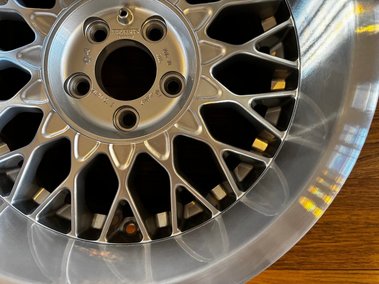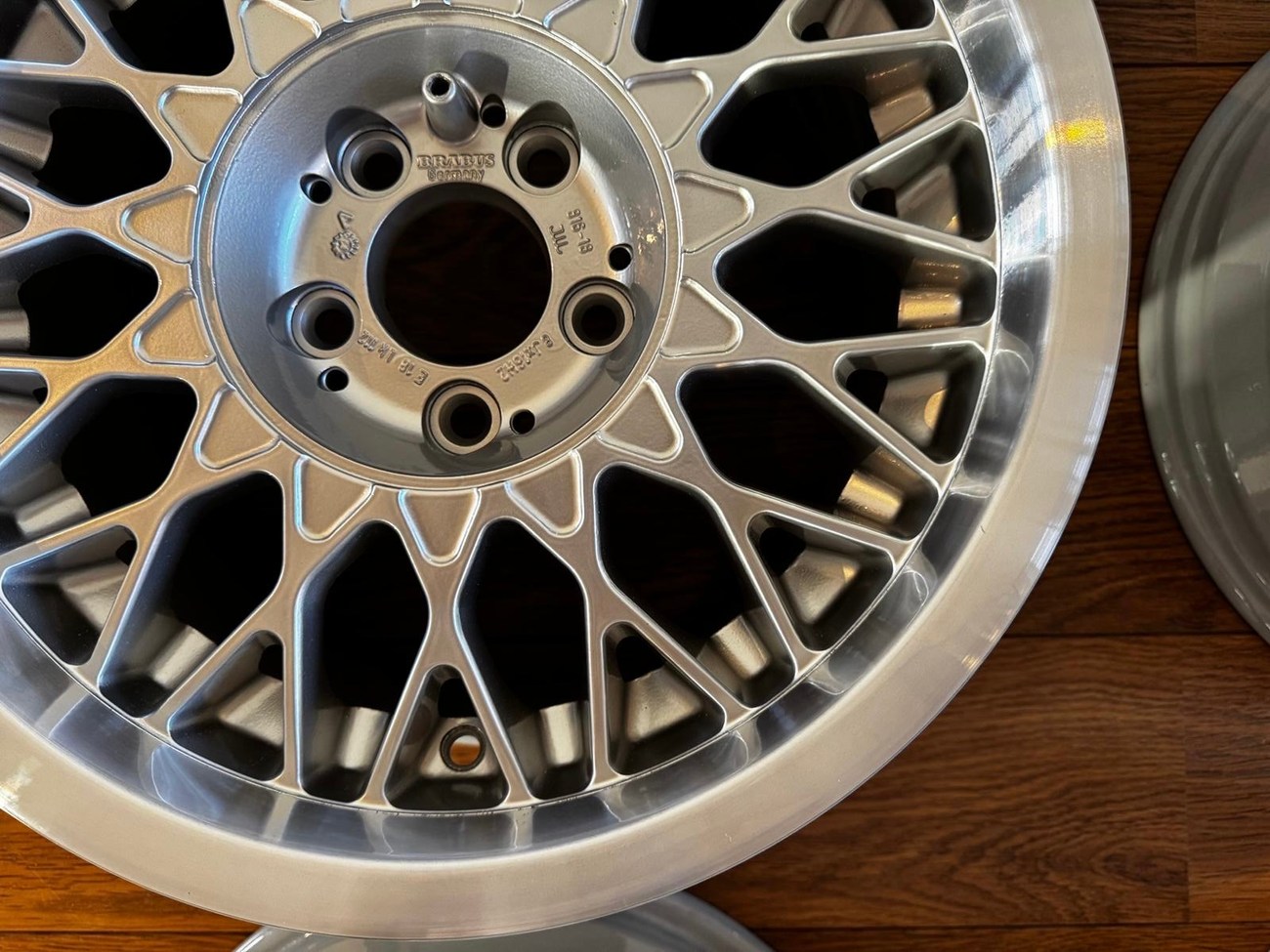 These authentic BRABUS wheels were offered as an optional upgrade on various classic Mercedes-Benz models including the W126 and C126. The faces and center caps are finished in silver with a machined lips. Up close photos of each face are provided in the gallery and no major imperfections are noted.