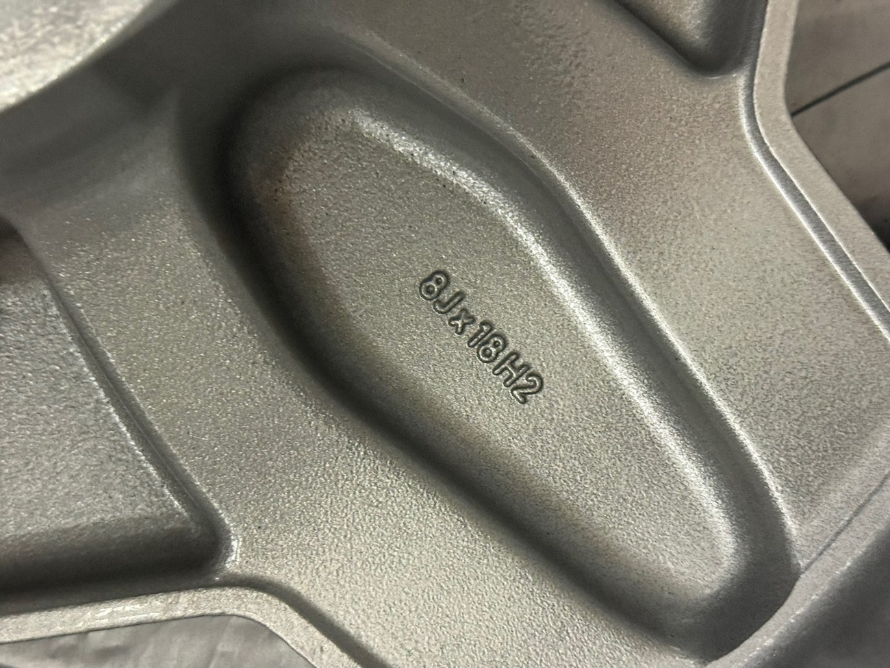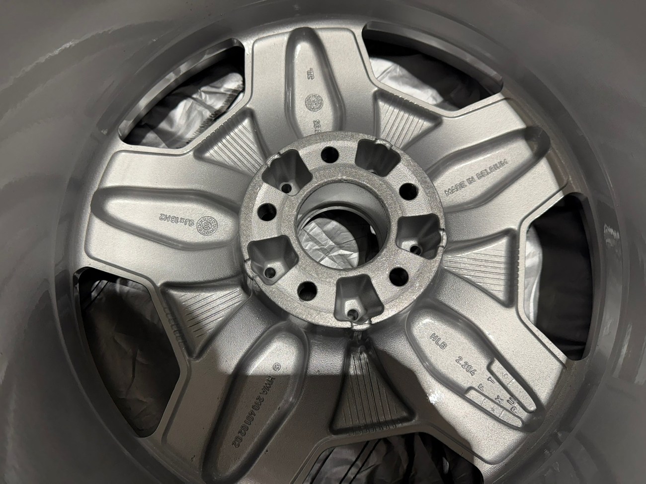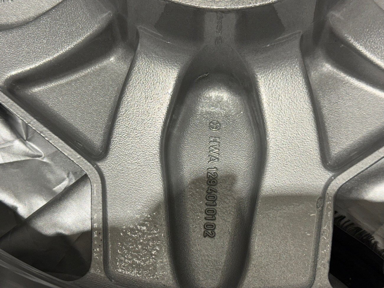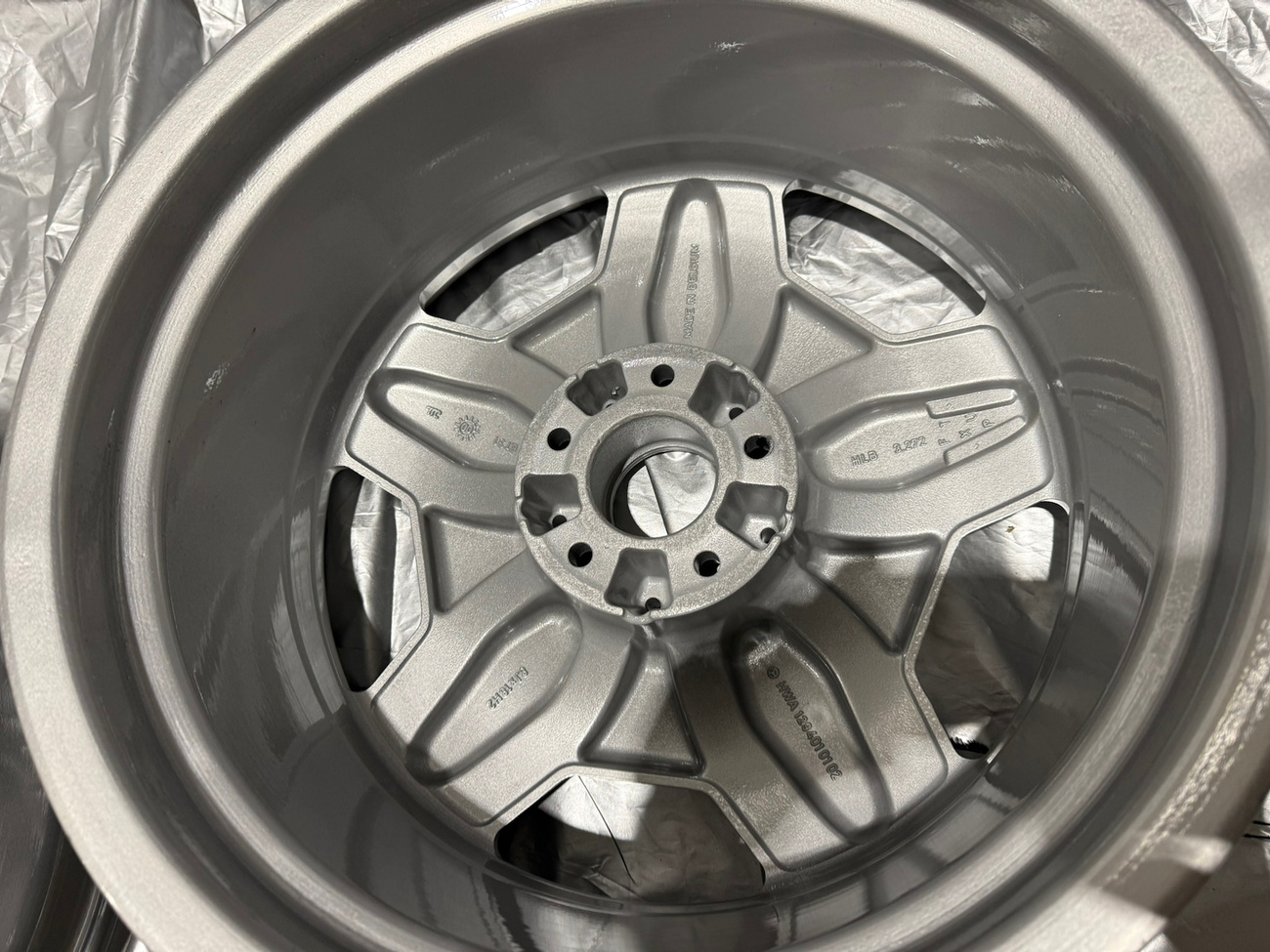 These staggered 18″ AMG Aero II Monoblock wheels measure 8″ wide in the front and 9" wide in the rear, and were manufactured by Mercedes-Benz for use on W210 and R129 Mercedes-Benz AMG vehicles. The faces are finished in silver with polished lips and show AMG HWA stamped part numbers on the back. Dimensions, offsets, and other manufacturer casting marks are present on each wheel. Each wheel has been professionally refinished in preparation for the sale. These AMG monoblock wheels are now offered by the seller at No Reserve in Santo Domingo, Dominican Republic with worldwide shipping options available.