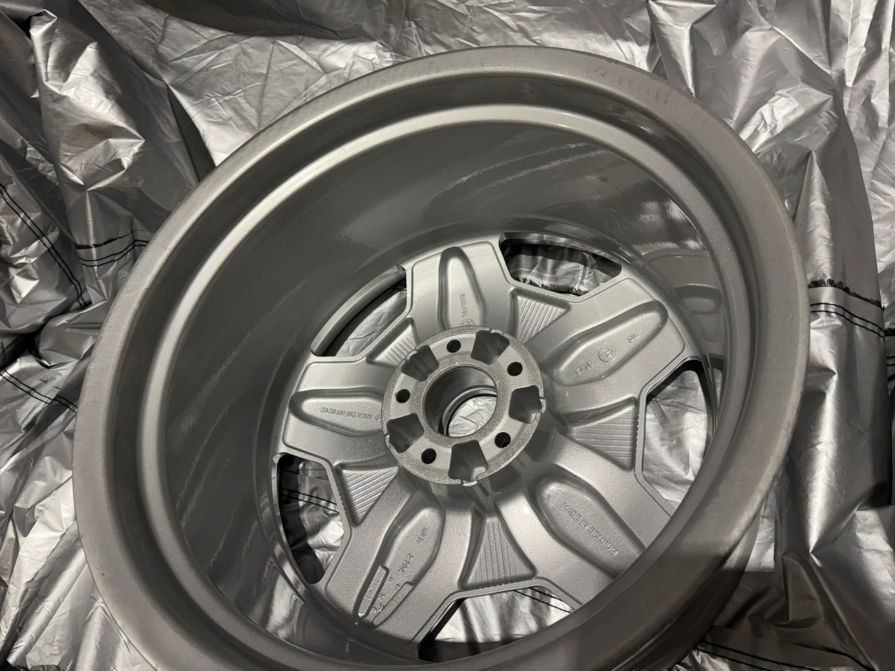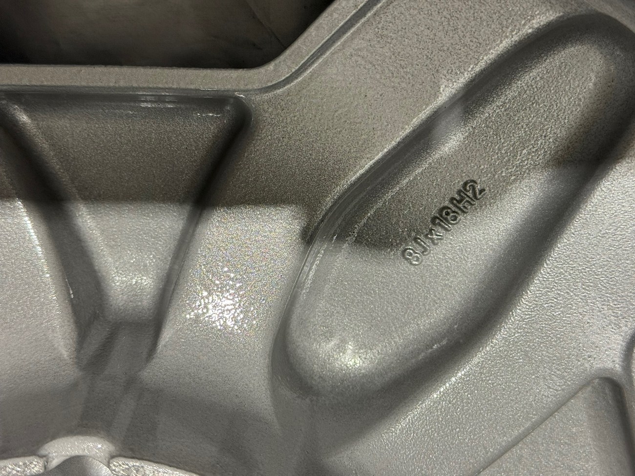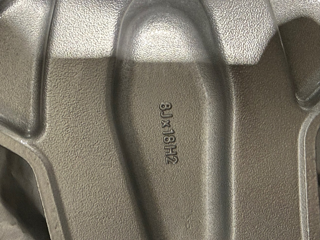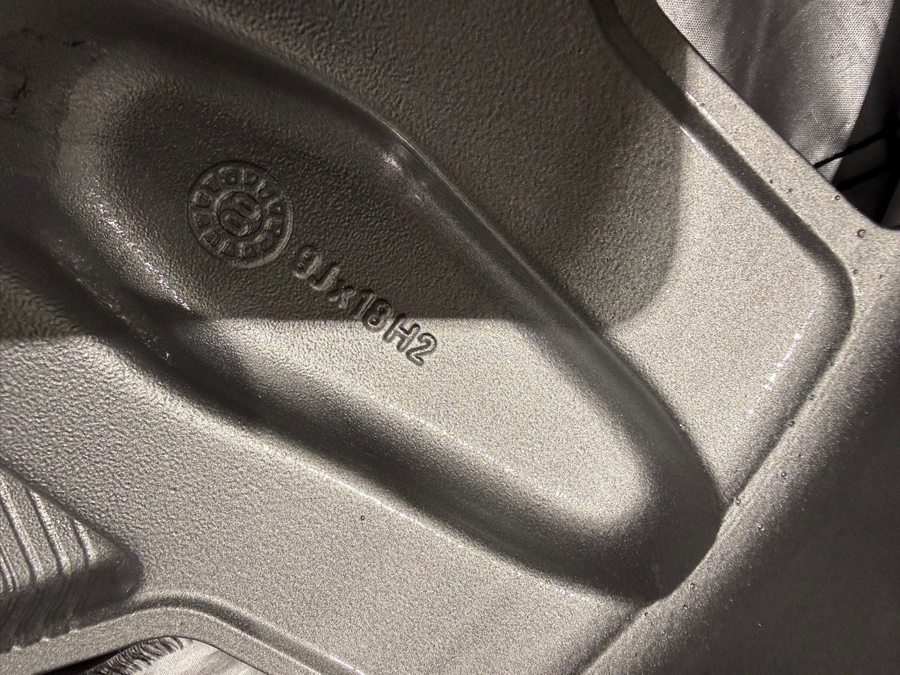 These staggered 18″ AMG Aero II Monoblock wheels measure 8″ wide in the front and 9" wide in the rear, and were manufactured by Mercedes-Benz for use on W210 and R129 Mercedes-Benz AMG vehicles. The faces are finished in silver with polished lips and show AMG HWA stamped part numbers on the back. Dimensions, offsets, and other manufacturer casting marks are present on each wheel. Each wheel has been professionally refinished in preparation for the sale. These AMG monoblock wheels are now offered by the seller at No Reserve in Santo Domingo, Dominican Republic with worldwide shipping options available.