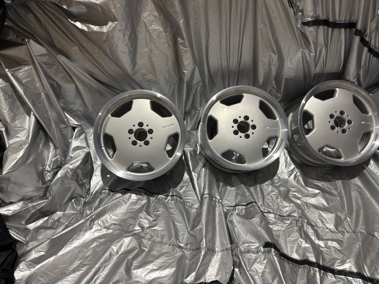 What's the quickest and easiest way to immediately transform the look of your Benz? That's right: install a set of ultra clean AMG Monoblocks. These wheels are stylistic kings for AMG Mercedes vehicles and, now becoming increasingly rare, finding a clean set of staggered 18" Aero IIs from someone who isn't a scammer is becoming more difficult everyday. While a few sets in need of refinishing can be found, these monoblocks have been professionally refinished with properly polished lips and are ready to be mounted. These are the exact matching HWA part number versions that were used on the W210 E55 AMG and R129 Sport models from the factory. We've also seen them regularly fitted to W202s and W208s although they fit other models as well. No matter what car these wheels end up on, they're increasing both the value and curb appeal of your Benz instantly.