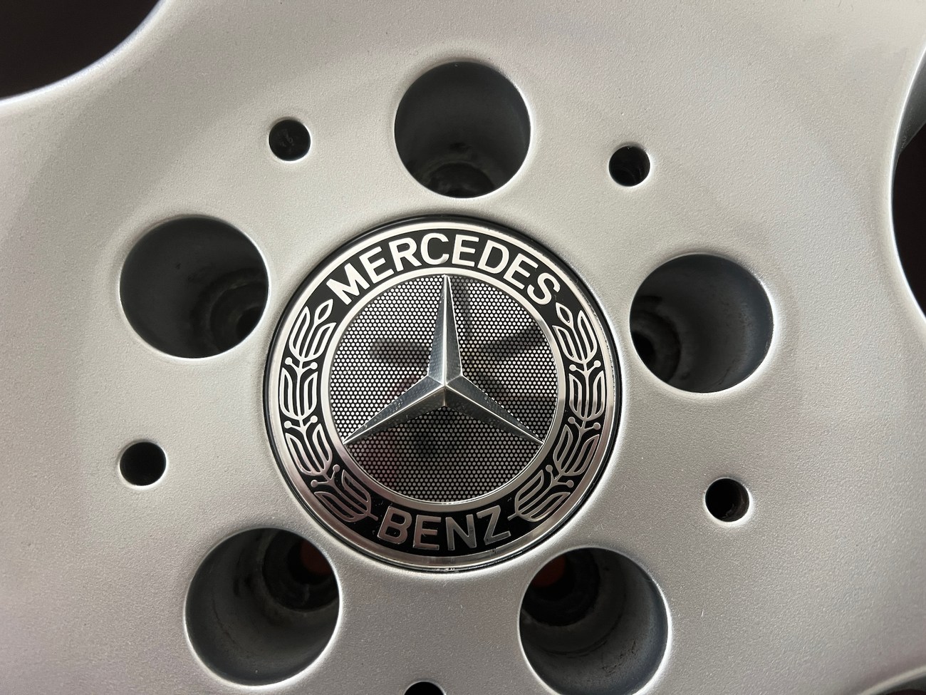 OEM Mercedes-Benz center caps are provided with the wheels and pictured in the gallery. These Mercedes-Benz wheels are now offered by the seller in Los Angeles, California with shipping offered at the buyer's expense.