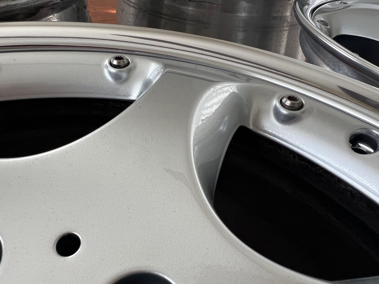 These 6-spoke alloy wheels were originally mounted on a R129 Silver Arrow by the factory and were fitted exclusively to Silver Arrow models. The wheels are comprised of two-pieces with exposed bolts around the faces. Each wheel features a Silver painted face with polished lips and were professionally refinished. Up close photos of each face are provided in the gallery and no imperfections are noted.