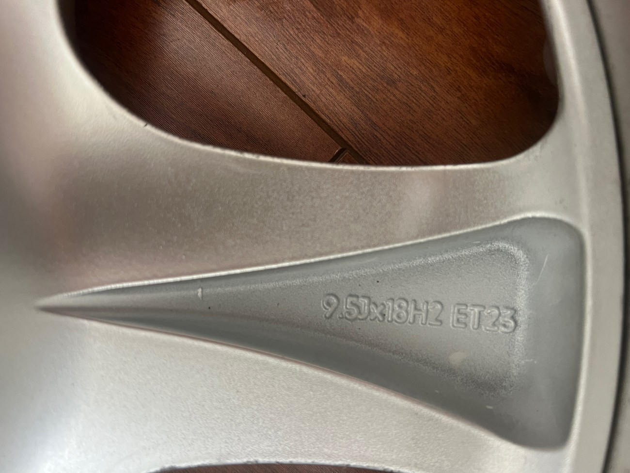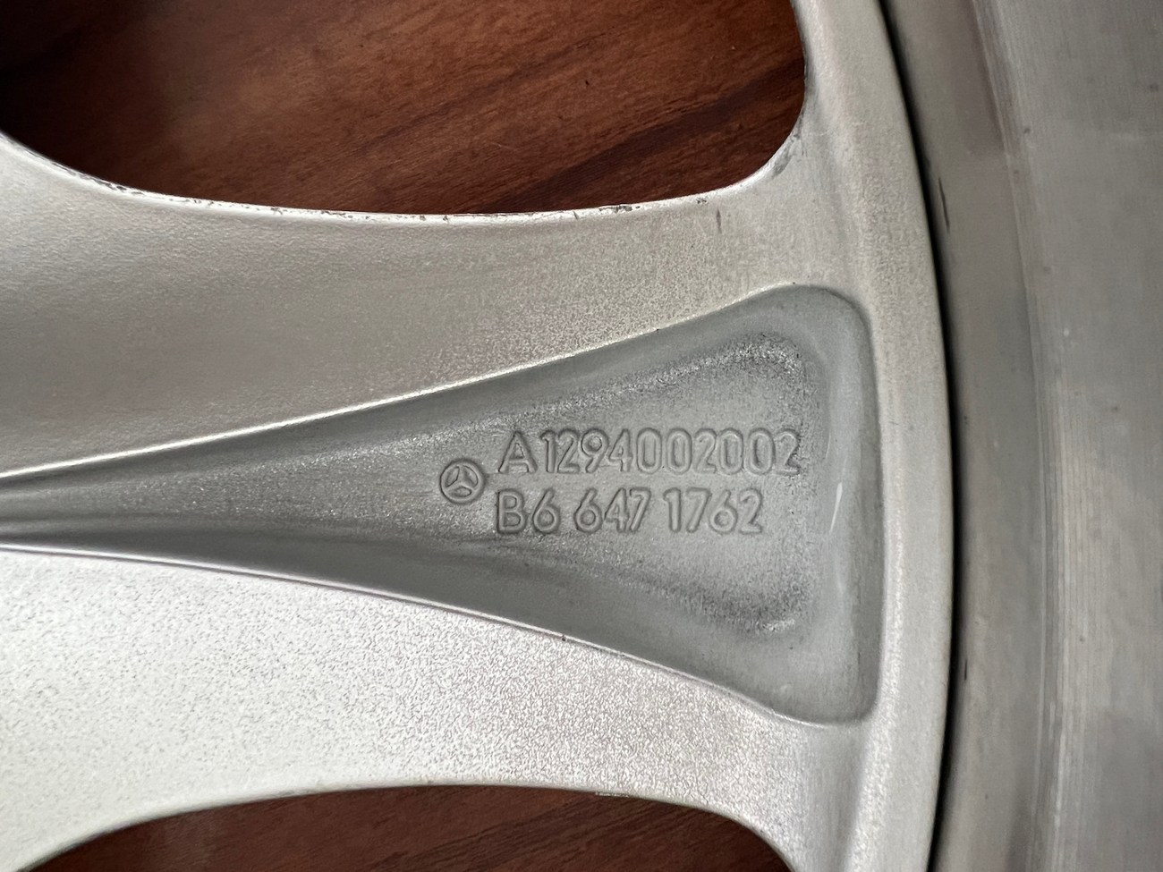 The wheels were made in Germany and were manufactured by BBS for Mercedes-Benz. The front wheels measure 8.5" wide with an offset of +25 showing part number A1294001902. The rear wheels are 9.5" wide with an offset of +23 and part number A1294002002. Close up photos of the back of the wheels are viewable in the gallery and all four wheels feature a 5x112mm bolt pattern.