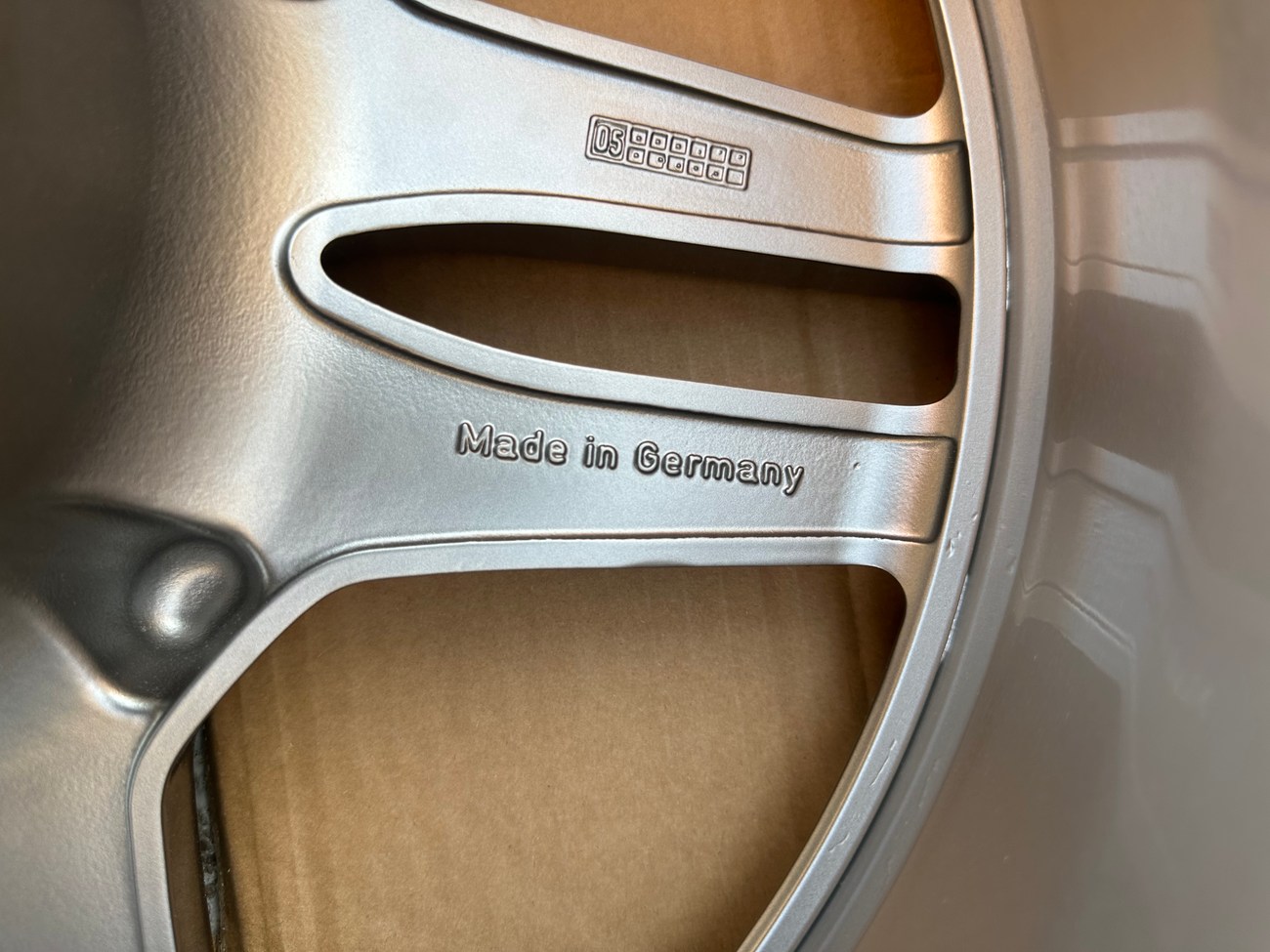 The wheels were made in Germany and feature a staggered set up. The front wheels measure 8.5" wide with an offset of +25 showing part number A230400 0102. The rear wheels are 10" wide with an offset of +28 and part number A230 400 0202. Close up photos of the back of the wheels are viewable in the gallery and all four wheels feature a 5x112mm bolt pattern.
