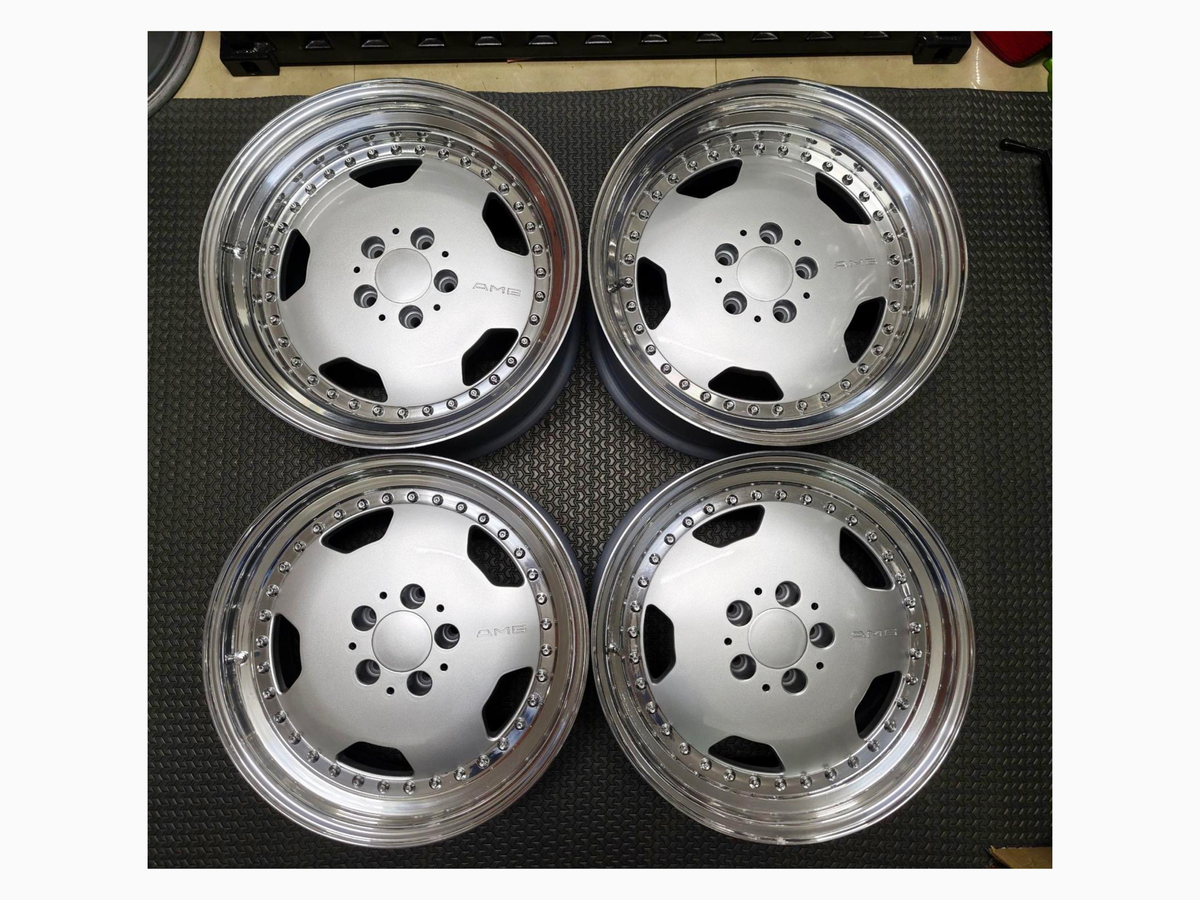 These staggered 3-piece 17" AMG Aero III wheels measure 8.5″ wide in the front and 10" wide in the rear, and were manufactured by O.Z. Racing for use on Mercedes-Benz AMG vehicles. The faces are finished in silver and accented with polished lips with OZ bolts, hardware, and barrels. Manufacturer casting marks are present on each wheel and four original premerger AMG flat center caps are included. Each wheel has been professionally refinished in preparation for the sale and show in excellent condition. These authentic AMG Aero III wheels are now offered by the seller in Thailand and worldwide shipping is available.