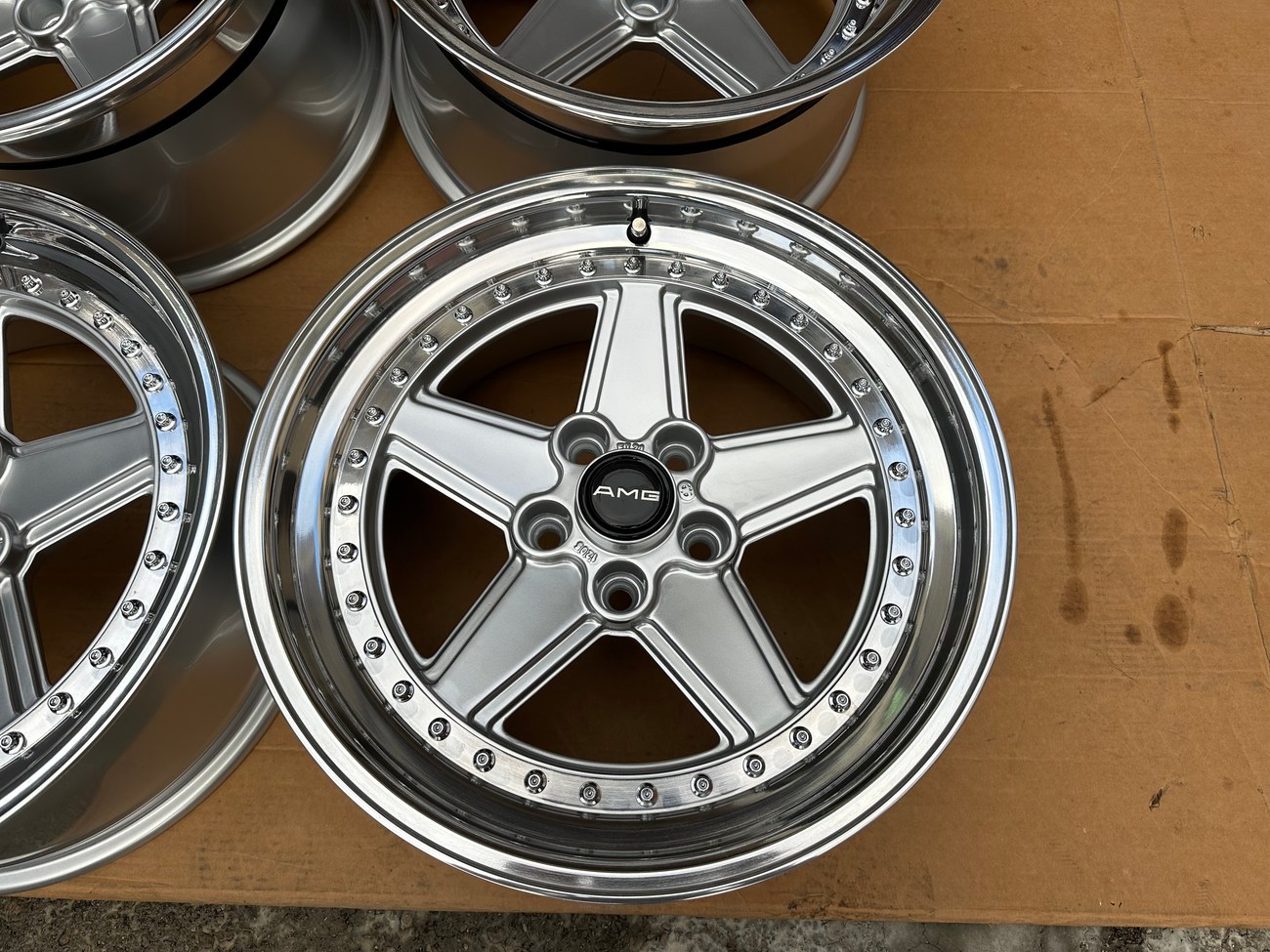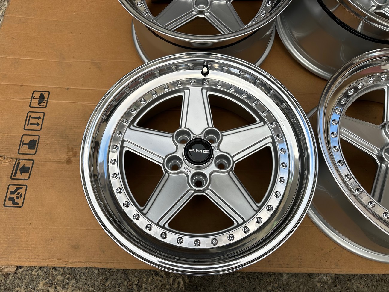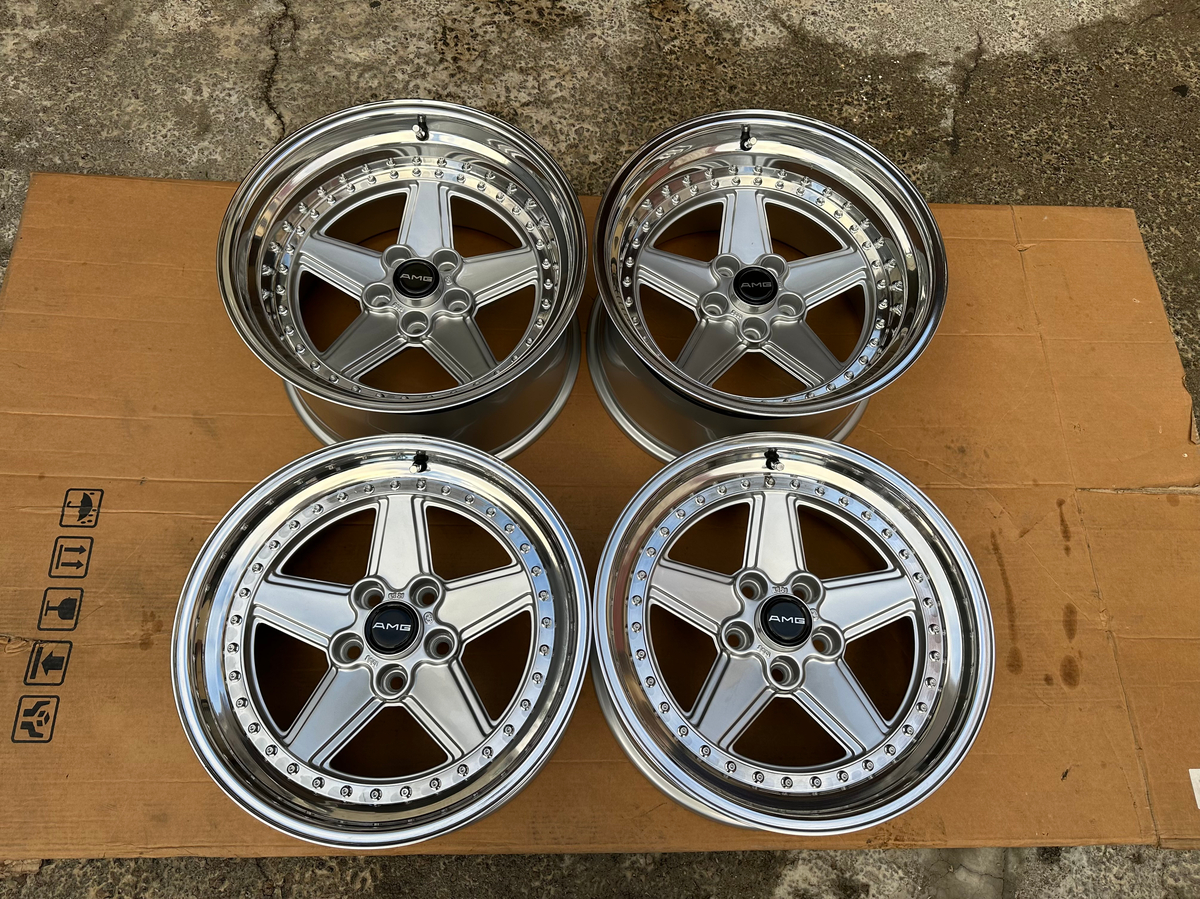 The popularity of premerger AMG cars and parts has become mainstream amongst car enthusiasts worldwide. The original AMG Penta wheel is now iconic and a favorite for any AMG fan. As these cars have gained in popularity, so has the desire for the parts as people are building incredible specs today. Many of these have a restomod flavor while still remaining true to the original design language and attitude of the OG's. These custom 3-piece Pentas do just that. AMG replaced the Penta wheels with their 3-piece OZ Aero III in the mid-to-late 80's. Think of this as the perfect blend of both. From a sizing standpoint, they're nearly identical to the Aero III's with a slighly less aggressive offset. These wheels can fit on a wide range of models as is, and with some suspension mods, could fit a lot more. If you win this auction, we're asking ahead of time for pictures of the finished product on your car. Nothing like a good old fashion glow up.