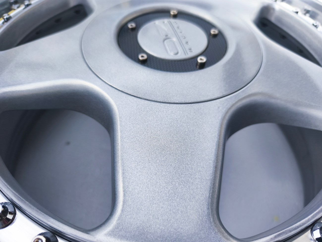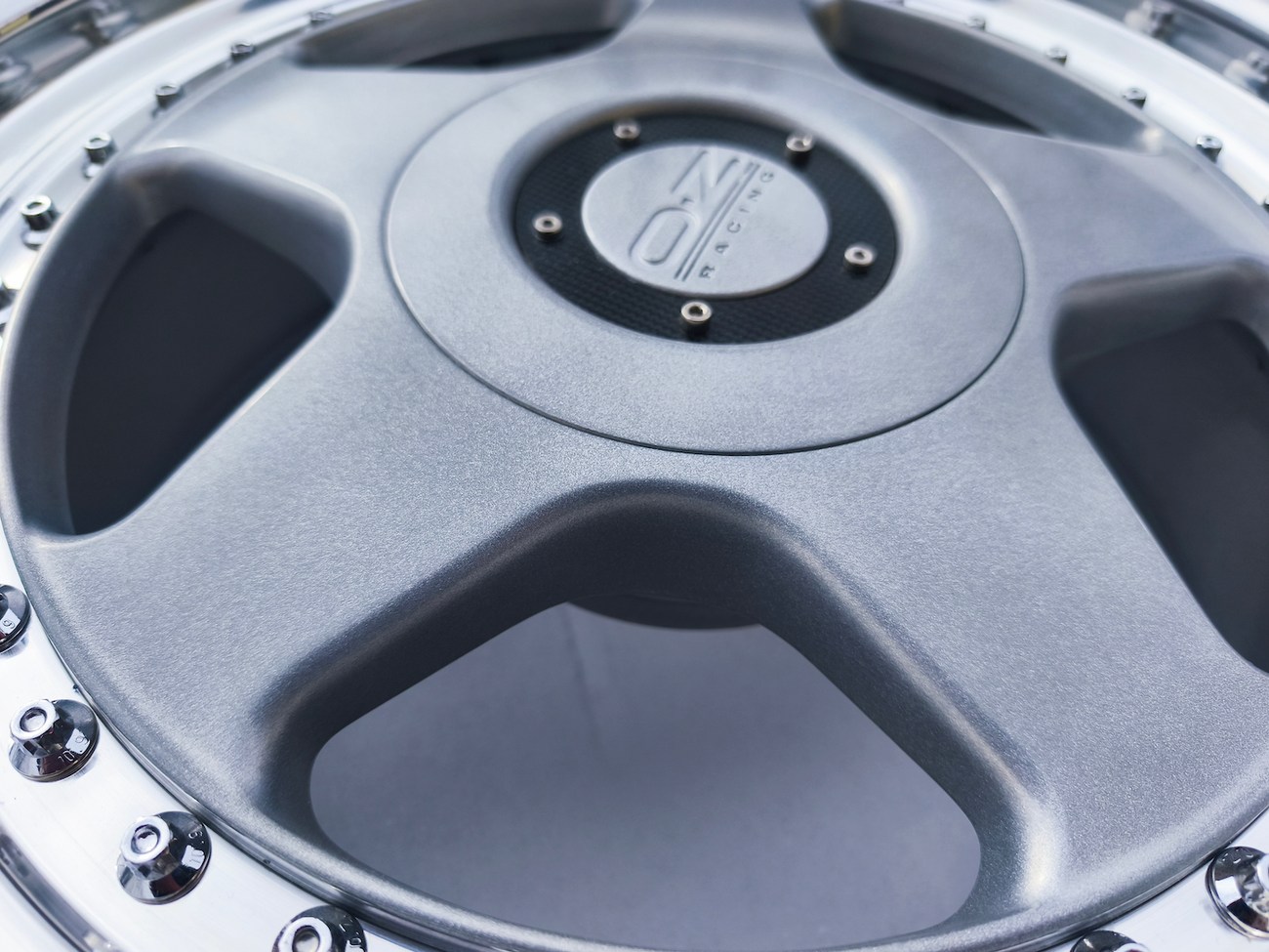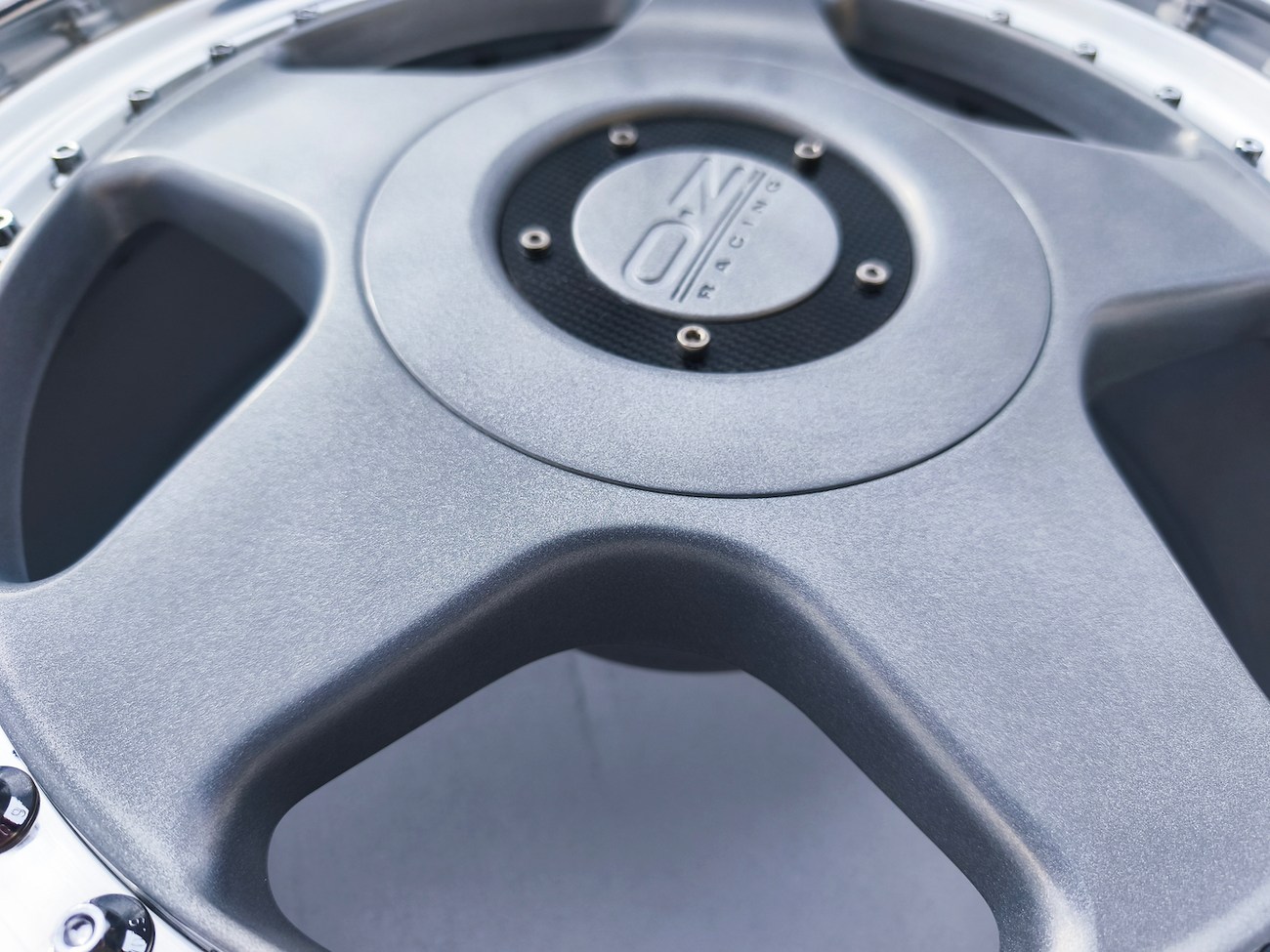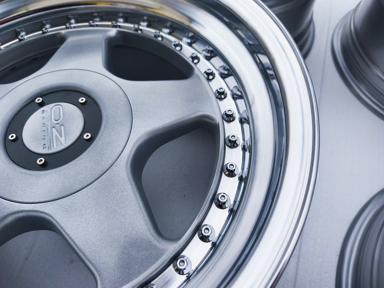 These 5-spoke OZ wheels feature a 3-piece design with exposed OZ Racing bolts around the lip. The faces are powder-coated in silver while the lips are polished and benefit from a recent professional refinish. Up close photos of each face are provided in the gallery showing stamped OZ Racing bolts and no imperfections are noted.