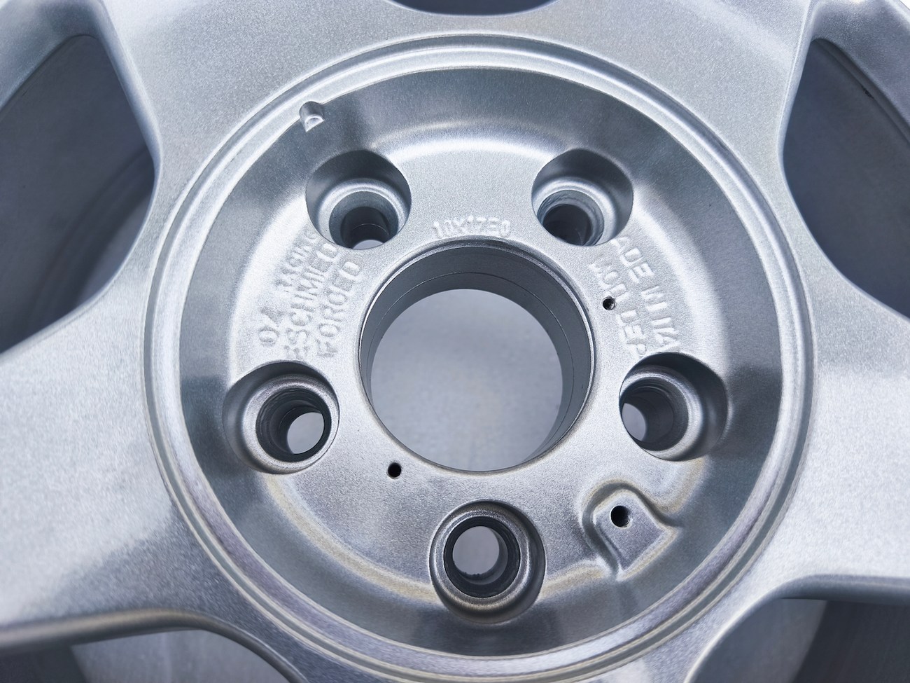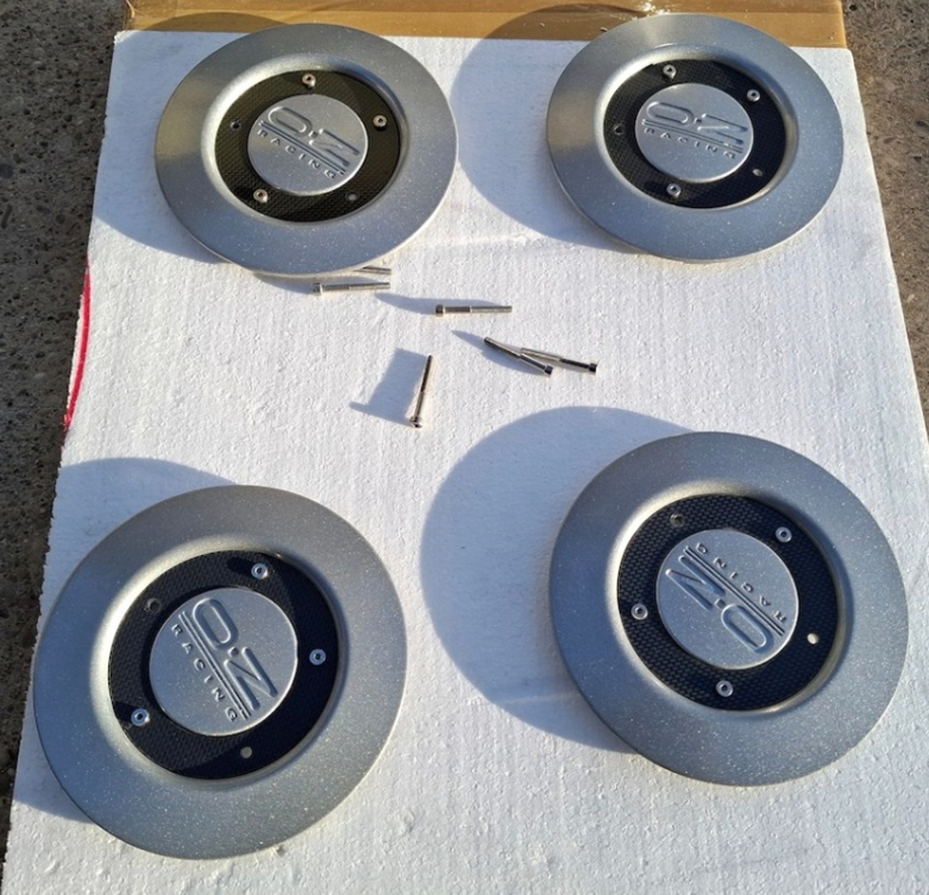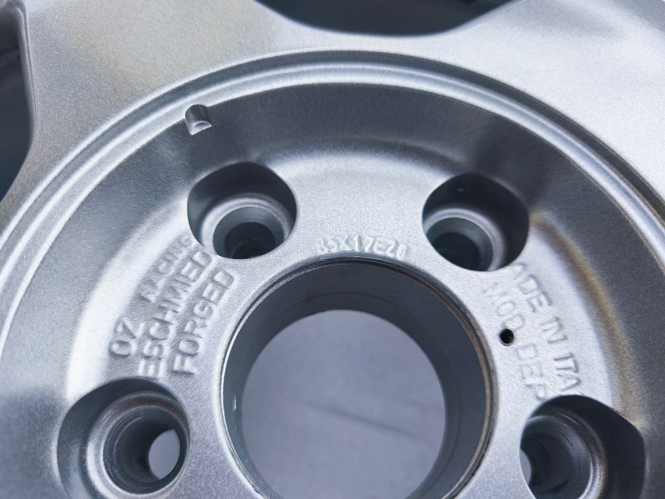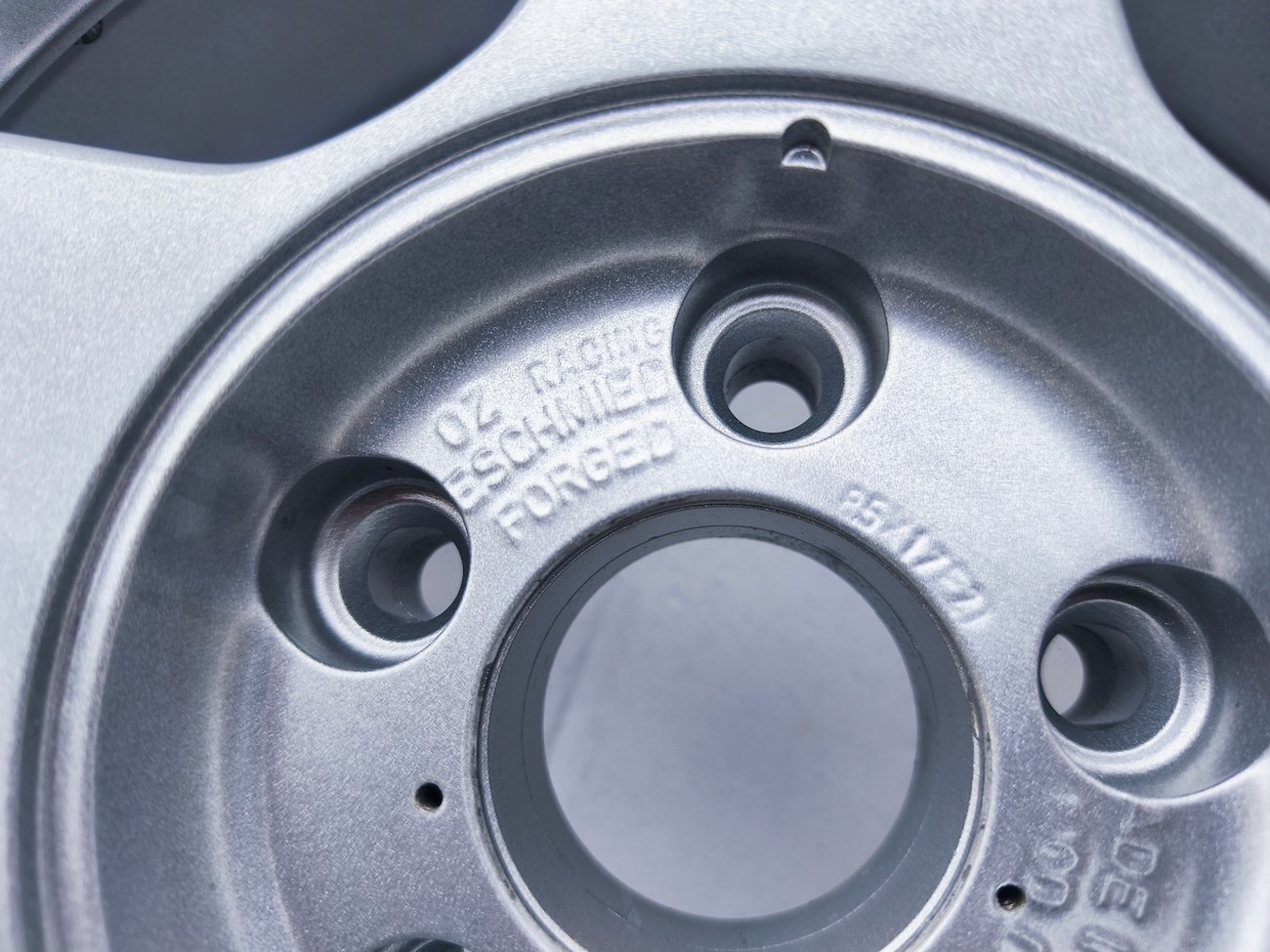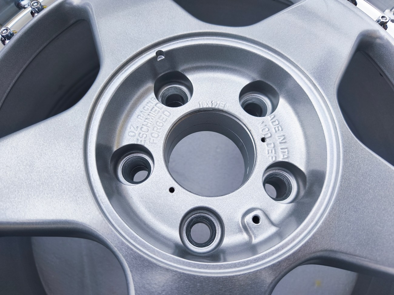 The OZ Racing center caps are removable to expose the lug holes and are also stamped on the backs with pictures in the gallery. Each wheel is forged and shows Italy as the place of manufacture.
