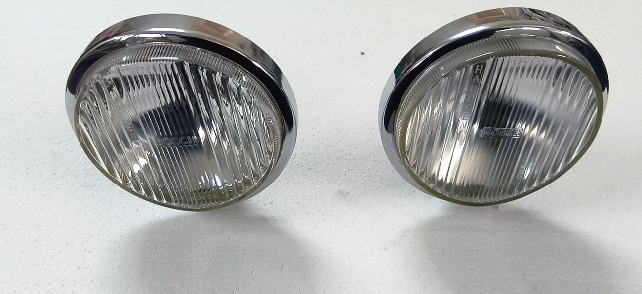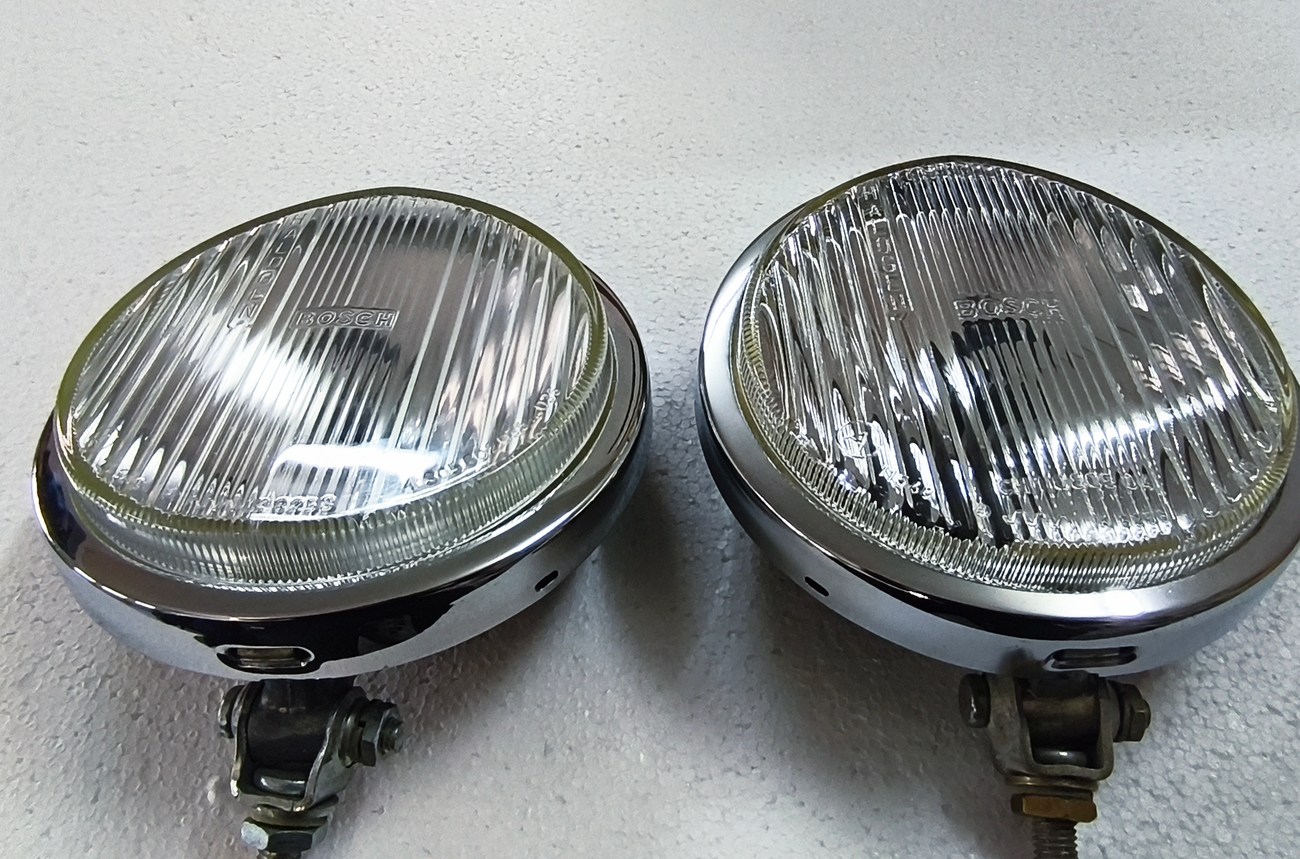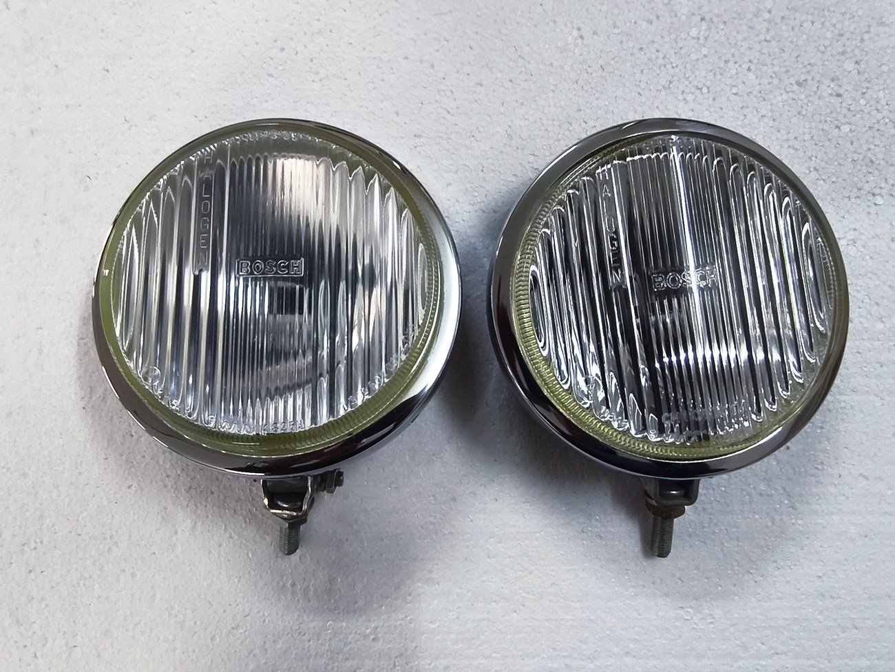The fog lights are authentic Bosch parts and were used on many various classic Mercedes-Benz models. The Bosch logo is seen on both lenses. They're ideal for the W108, W109, W110, W111, W112, W113, W114, and W115 chassis vehicles.