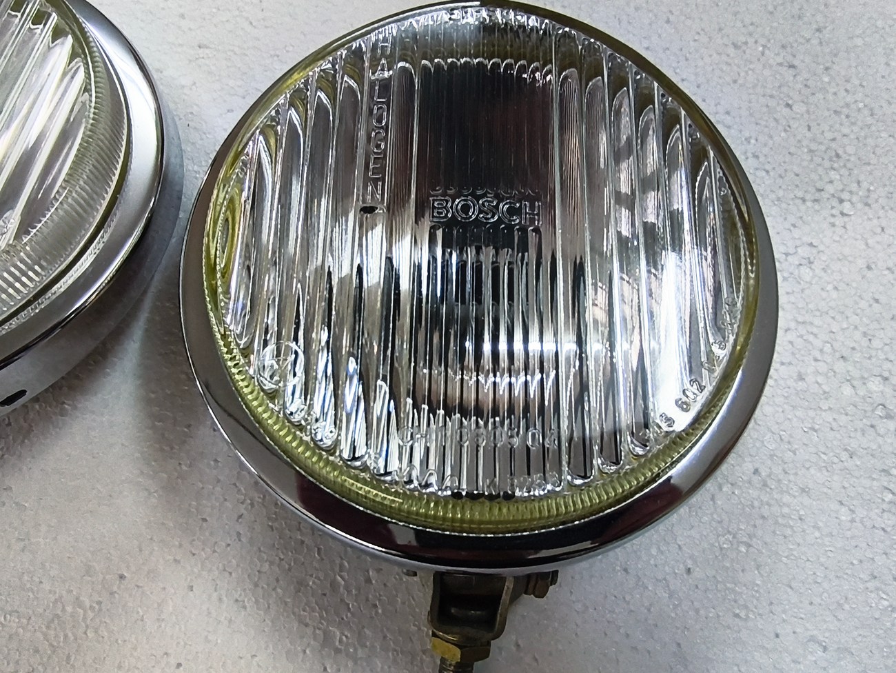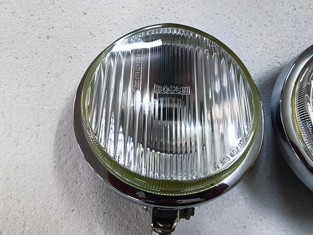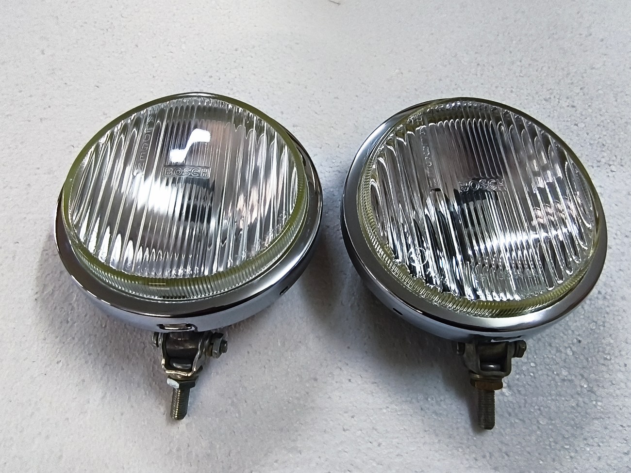 This pair of vintage Bosch fog lights have never been previously used or mounted and remain new old stock. A photo for reference shows the same model lights installed on a Pagoda. The seller is able to accomodate international shipping needs for the buyer with quotes available upon request.